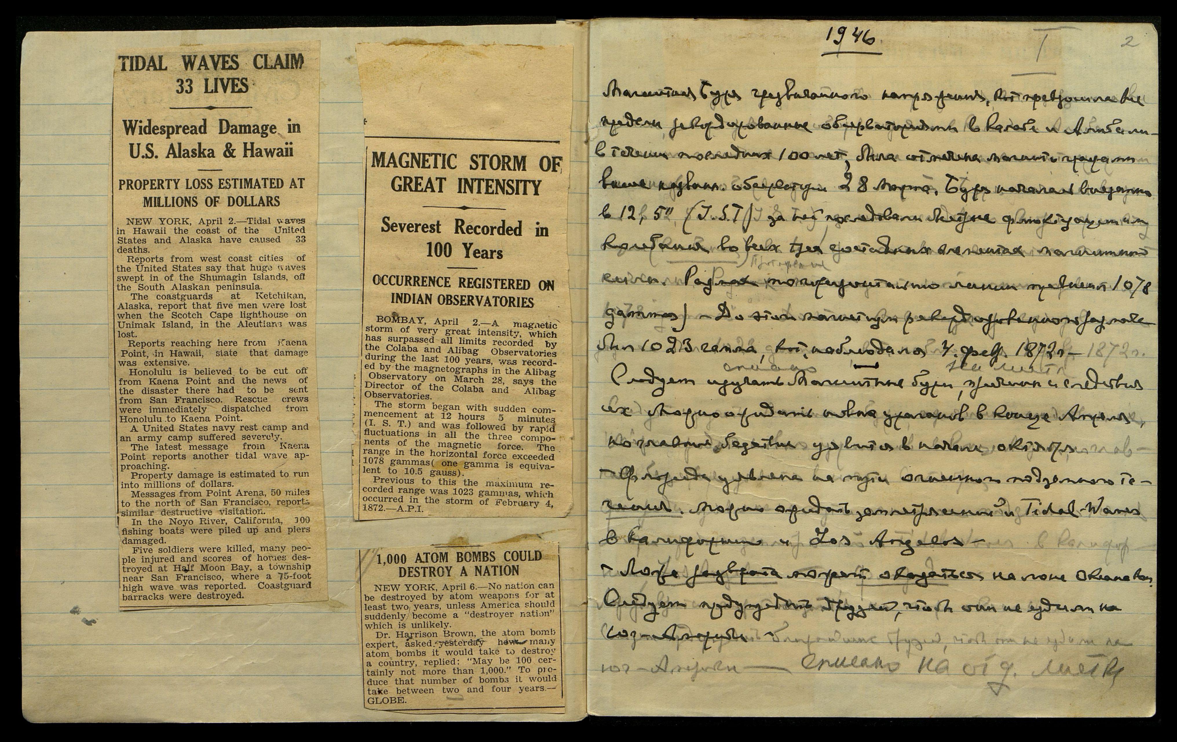 Название, датировка и формат оригинала на сайте ГМР: Записи бесед с Учителем. тетрадь (приложены газетные вырезки) 1946.04.02