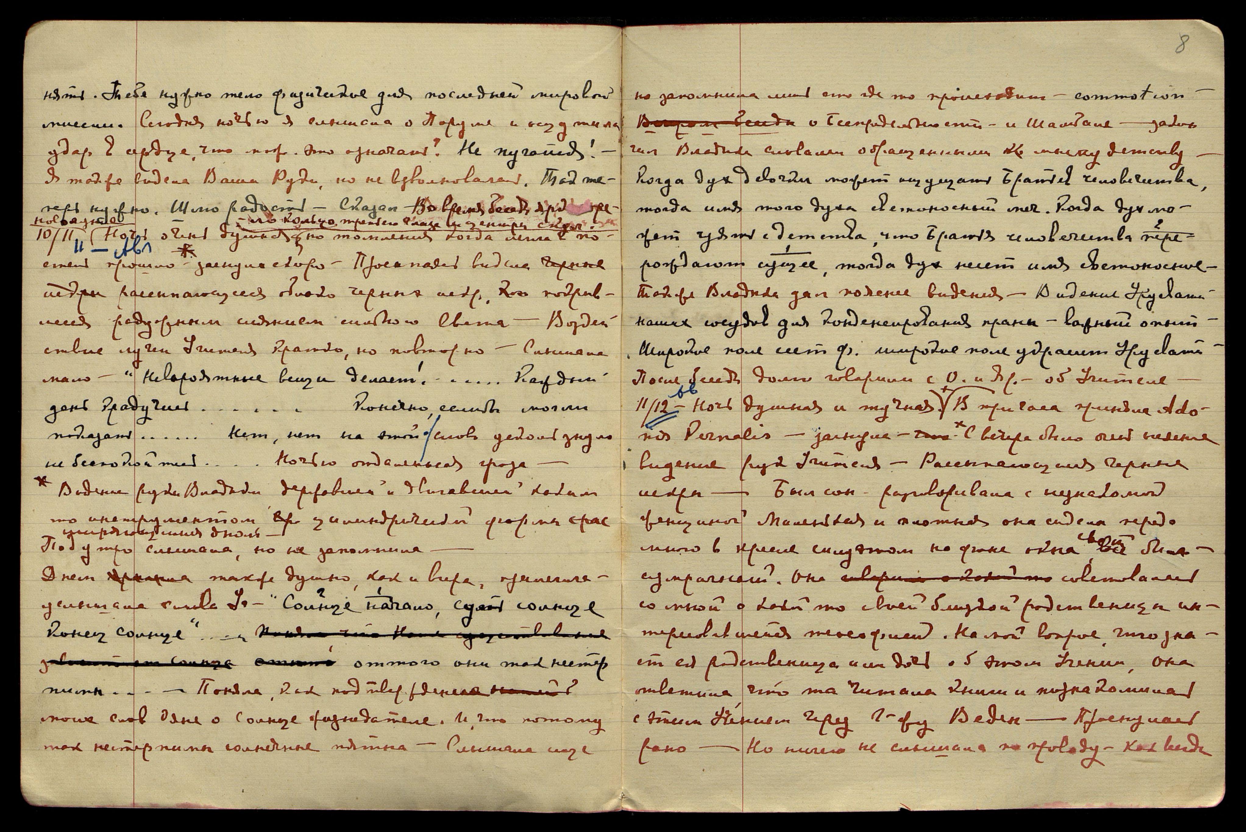 3/4 августа. Ночь довольно свежая, лёгкое томление в руках и коленях. Приняла Adonis Vernalis. Слышала, но плохо ухватывала, большая усталость от присутствия семьи Bod., − степень их невежества при самомнении удручающа. Под утро: "Явление человечества всегда... пойми... выводится из цепи..."