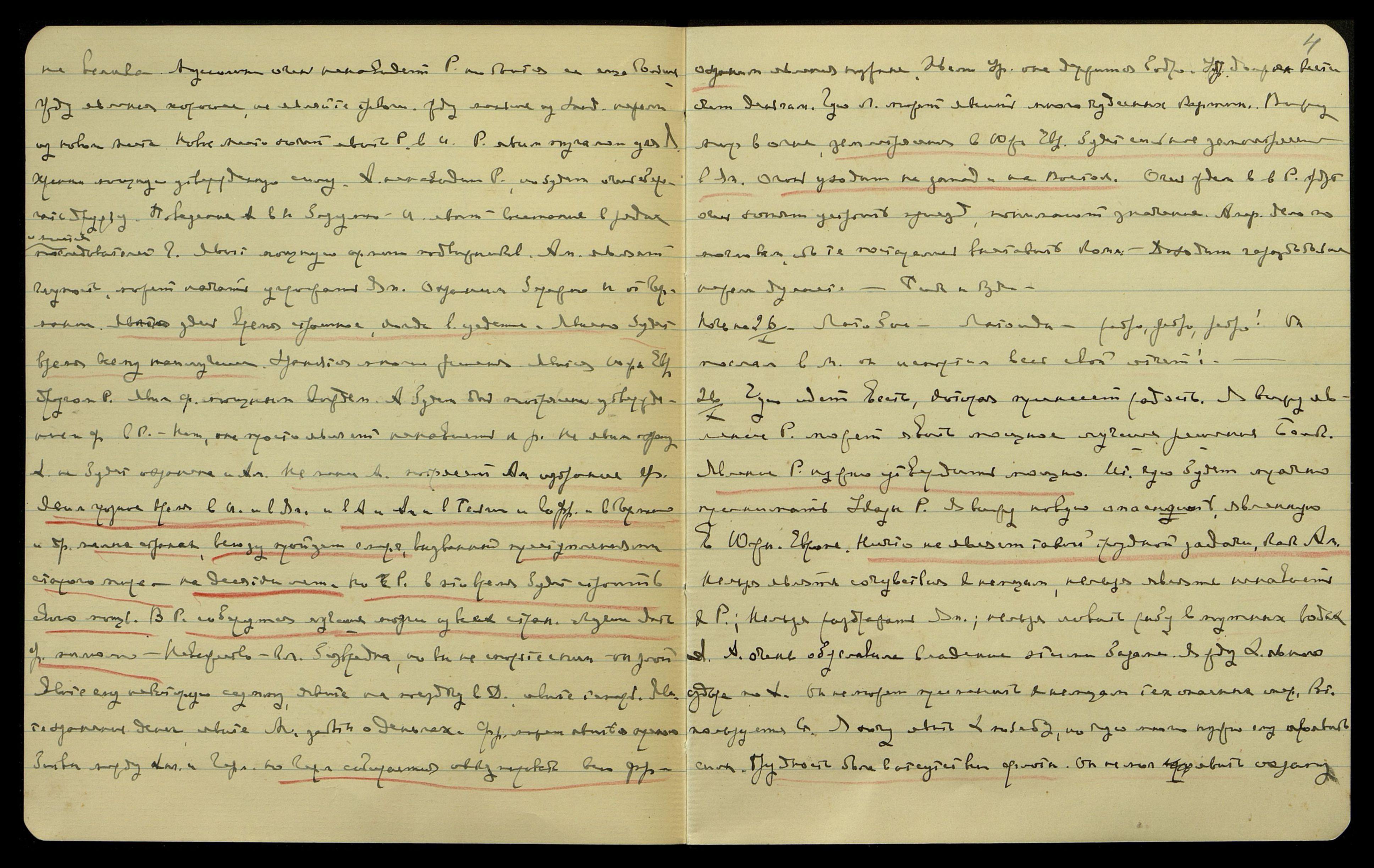 Анг[лия] чует мощное явление Х[итлера] в Южн[ой] Евр[опе]. А[нглия] срочно идёт к рушению. Явим битву к нежданной победе р[усских]. Чую явление Пирровой победы ожидает немцев. Я могу менять явление сроков. Думаю, что широкая, ясная мощь Р[оссии] не явится без вас. Много охраняется до в[ашего] приезда. Я берегу — Храним путь. Не нужно тревожиться. А[нглия] не может начать являть вам притеснения. Я храню ручательство Моё. Я вижу Мою Урусвати в Афг[анистане]. Яви уже спешную укладку архивов. Удр[аи] недуг — его ярая любовь хр[анить] рухляди. Немного сохранил её и Л[юмоу]. Адж[ита] являет Ф[уяме] охрану большую. Я храню путь, но спешите с укладкою архива. Явим Урусвати понимание. Явим Урусвати трудное время укладки. Диокл[етиан]* утратил Нашу помощь. И Уолл[ес] будет наказан, хотя Ф[уяма] и видел его награждённым. Яви понимание явлению утраты Нашей помощи. Время грозное. Явим Урусвати радость. Ничто не коснется вас. Не ждите ничего страшного для себя. Не жди охраны Диокл[етиана], он решил утвердить явление преследования Ф[уямы]. Мы находим, что пора прекратить ярых врагов. Они преступили уже все границы. Хочу направить новую молнию на Ю[жную] Евр[опу], чтобы Мир осознал Р[оссии] мощь. Не являйте особо худого настроения. Явим всё нужное. Я утверждаю нужную тебе мощь. Не нужно являть нервности. Я не всегда отвечаю на вопросы, но третьего дня — ответил тебе. Явление событий отражается на солнечном сплетении. Анг[личане] стоят за Р[оссию], В[осток] может оказаться для них неудобным. Явит охрану ярую Амер[ике]. Х[итлер] может ещё раз потрясти Мир явлением энергичной битвы в Средиземном районе. Петр. уцелеет, явит необычную спешность в эвакуации в А. Немало утяжелит свою карму. Мир находится в огне. А[нглия] не будет выпускать Ф[уяму] в Р[оссию], но Инд[ия] поможет. Явим всё, но храните единение. Я вижу вас в Афг[анистане]. Я радуюсь, что книга явленная (K. of the W.** ) дойдёт. Явление очень яркое. Нужно выписать. Можно печатать по-русски в Риге. Хочу, чтобы Урусвати опять села за перевод. Скоро многое изменится в Р[оссии] и в Риге. Требую искать книгу. Храните адрес фр[анцузский], он явится полезным во Фр[анции]. (Да, но перевод лучше окончить здесь). Я храню решение оявить тебя новой провозвестницей явления Майтрейи. Нужно утвердиться в этом. Я хочу двинуть Л[юмоу] скоро в Трив[андраме], ибо портрет всем, очень всем нравится. Явление очень яркое. Нужно явить телеграмму к Ромаев. Чую кузена, имеет новость, явит скоро. Урусвати, Франция хорошо утверждается на спешном предложении Х[итлера]. Она видит мощь немцев и негодность А[нглии]. Да [слово неразборчиво]