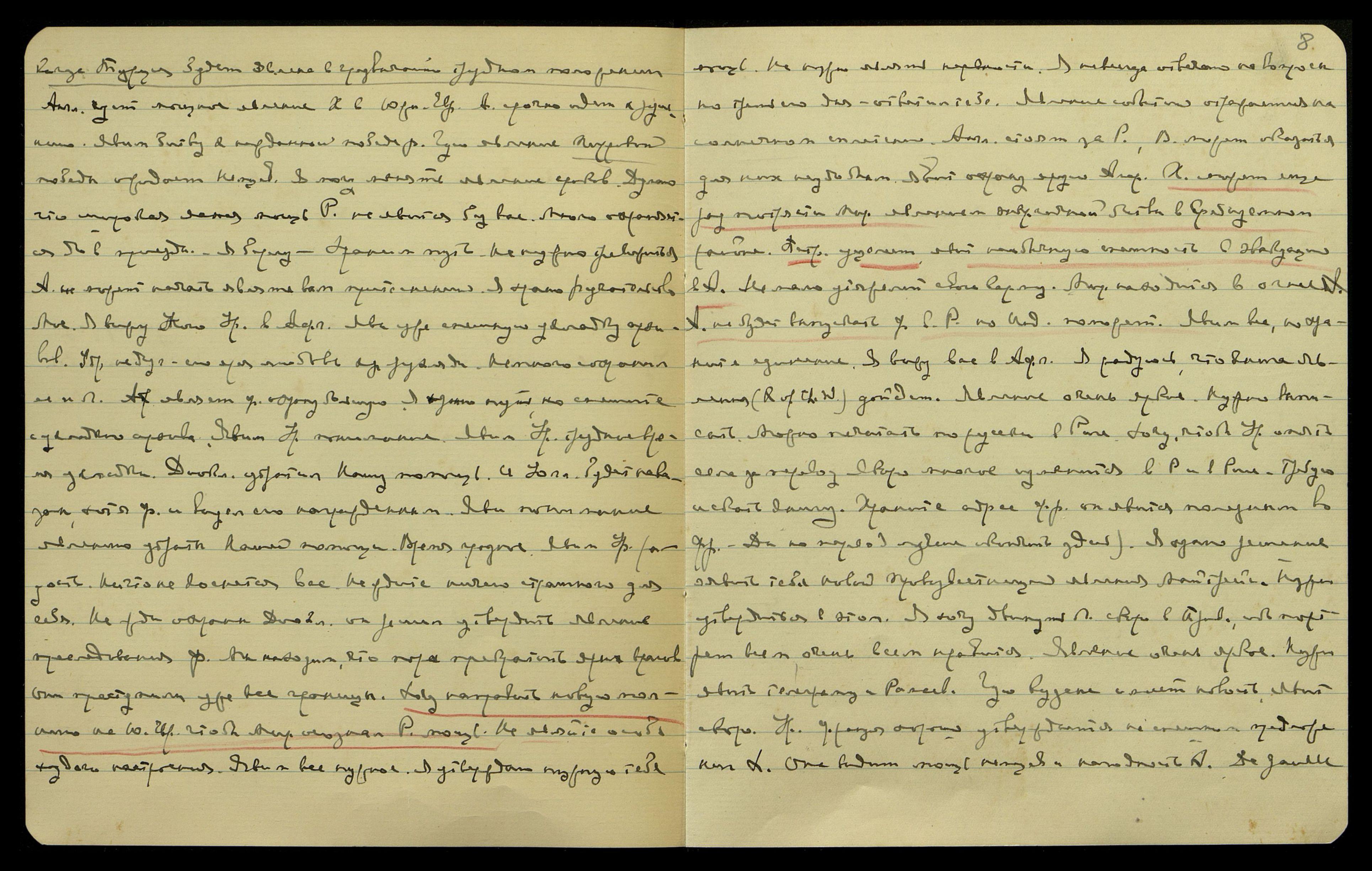 Идут большие бои. Невозможно поразить А[нглию] без Х[итлера]. [Одно слово неразборчиво] он решает нанести удар новый. Скажи о решении Нашем — И[ндия] охранит вас. Ничто не коснется вас. Аджита просит не печаловаться — грозное время. Ничто не коснется вас. Не нужно говорить Л[юмоу] о трудностях. Новое место явит ему радость. Ничто не коснется вас. Явите радость. Беседы начнем скоро.