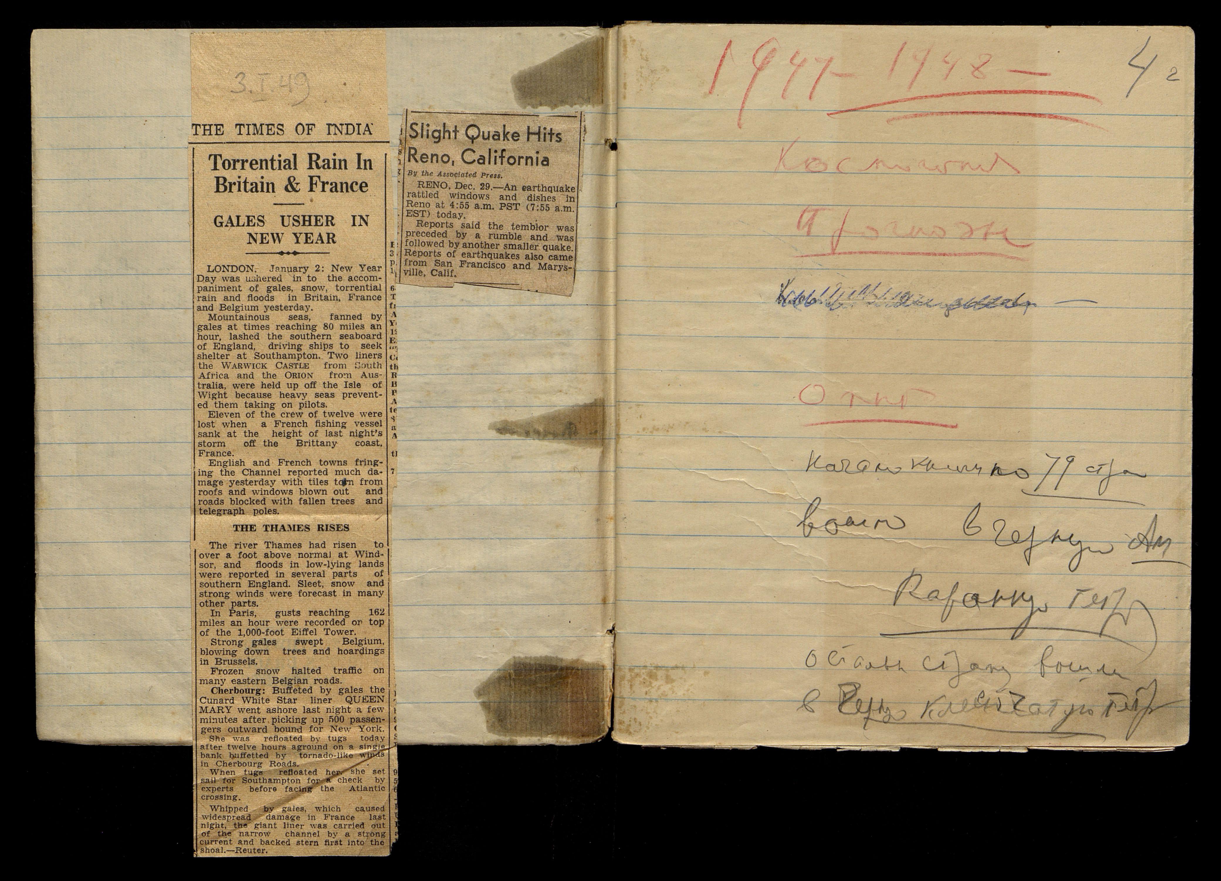[Рукописный текст на правой стороне разворота:]
