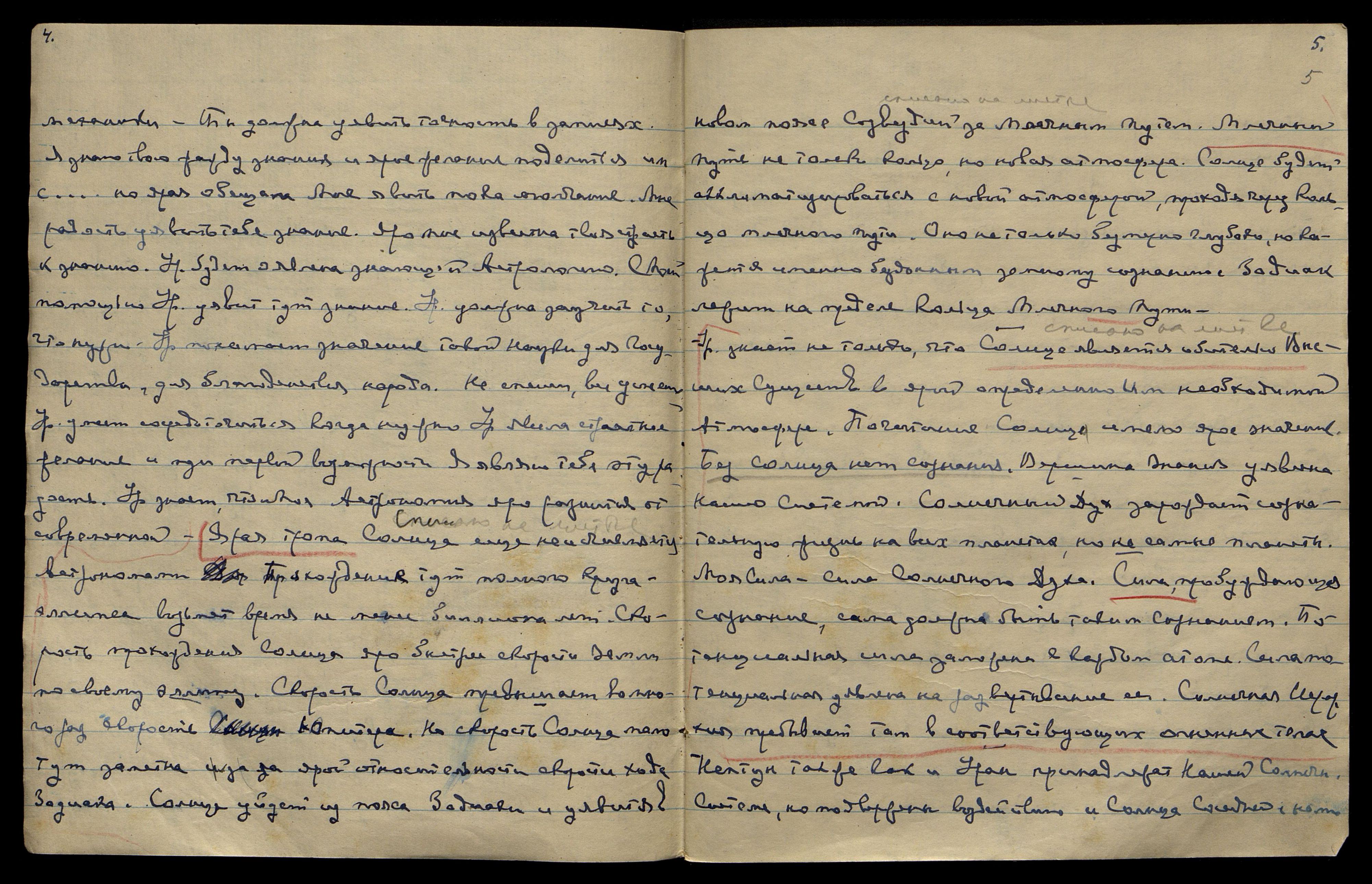 Название, датировка и формат оригинала на сайте ГМР: Записи бесед с Учителем. «Космические прогнозы, опыт» 1946 - 1948 автограф русский 137 Тетрадь - обложка кожаная, тиснение в форме сердца, бордовая [Индия]