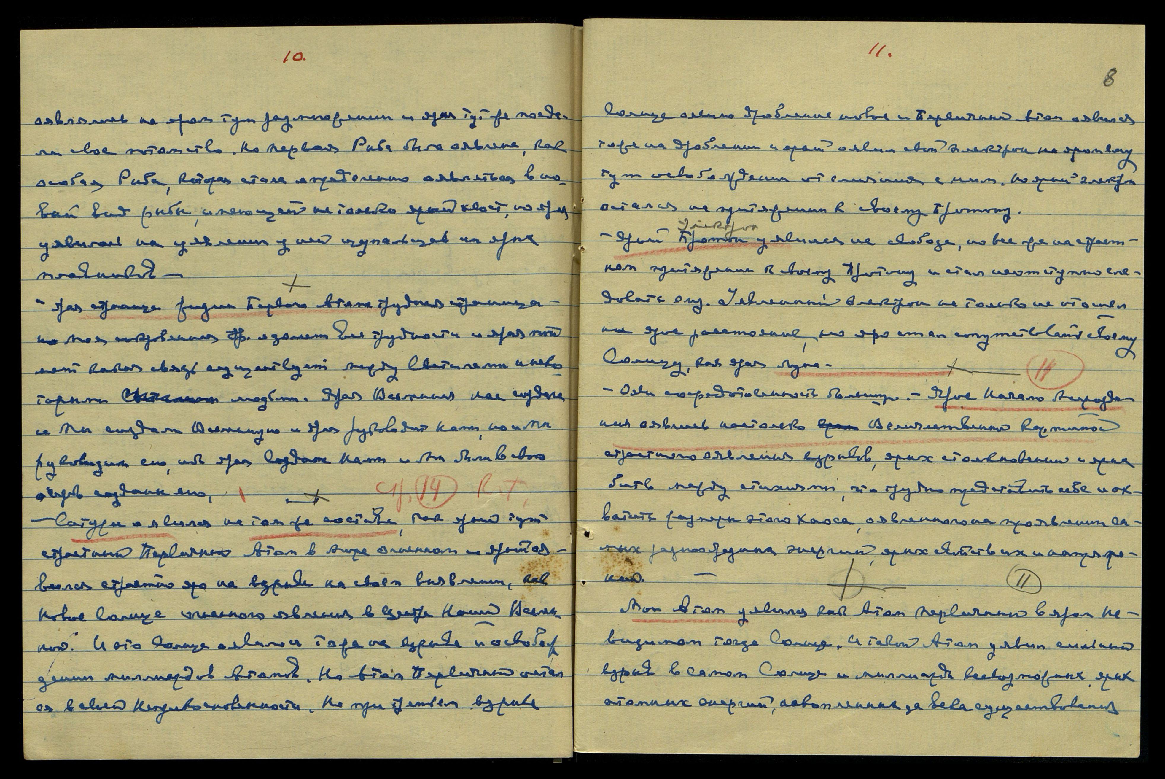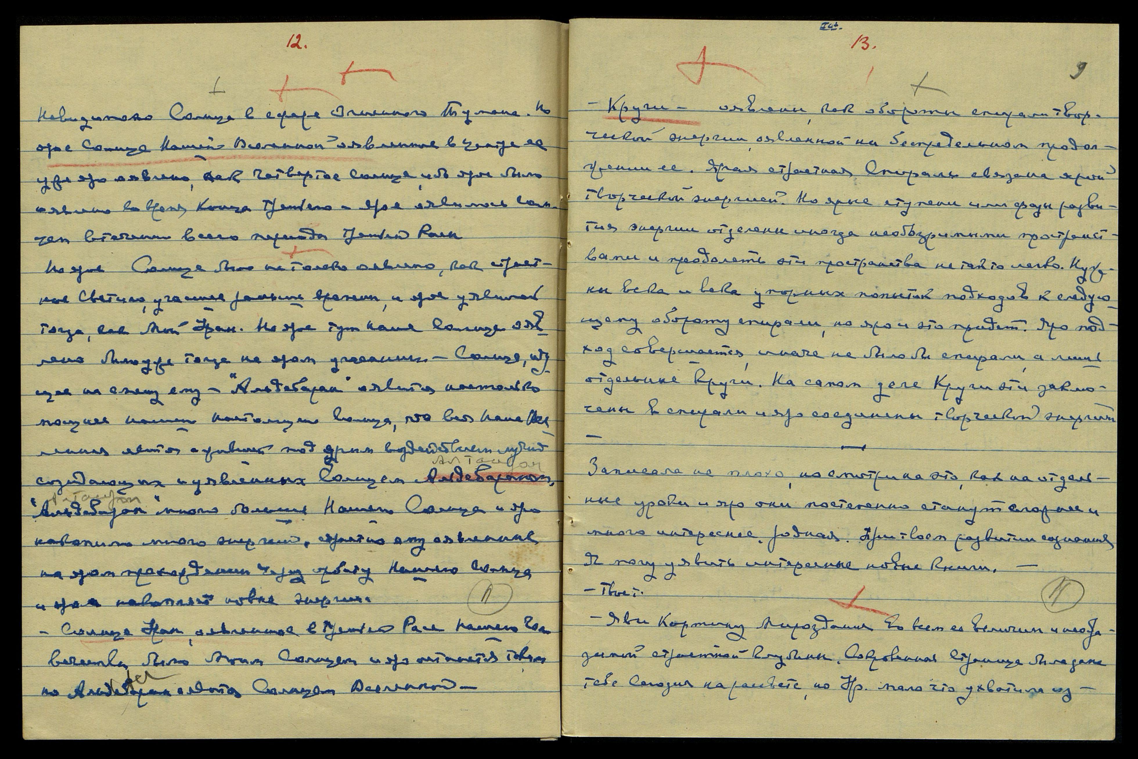 Солнце, идущее на смену ему − "Альдебаран" − оявится настолько мощнее нашего настоящего Солнца, что вся наша Вселенная явится ожившей под ярым воздействием лучей созидающих и уявленных Солнцем ["Альдебаран" − зачеркнуто] Ал[ь]таиром. [сверху строки − "Ал[ь]таир"] Альдебаран много больше Нашего Солнца и ярое накопило много энергий, страстно ему оявленных на яром прохождении через орбиту Нашего Солнца, и яро накопляет новые энергии.