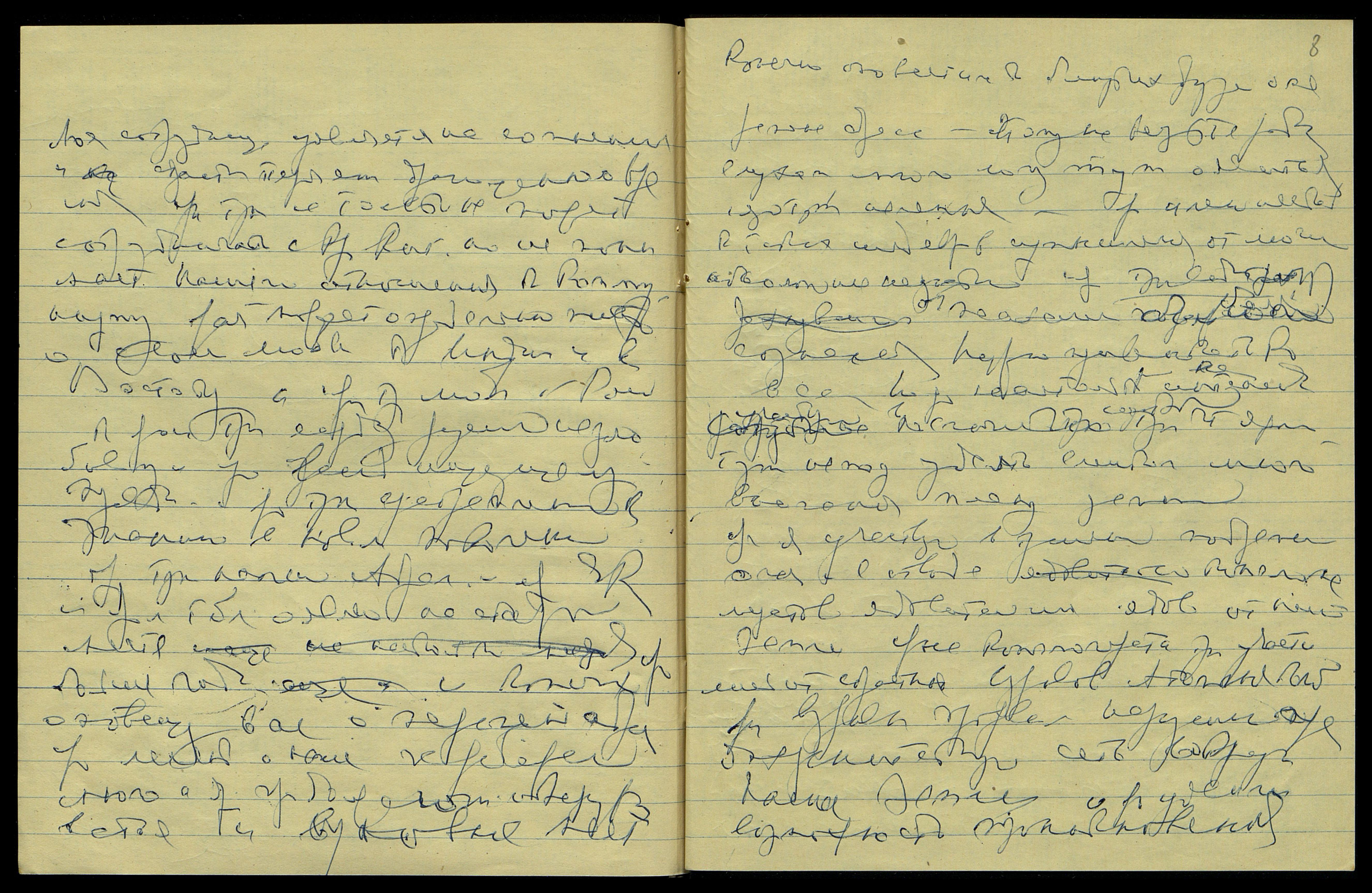 Моя сотрудница уявляется на сомнении и страстно теряет драгоценное время. Ярая тут не только не может сотрудничать с Кр[асным] Кит[аем], но не понимает Нашего отношения к Коммунизму. Ярая может определенно писать о своей любви к Индии и к Востоку, и ярой тут любви к России, к яром[у] тут сердцу русс[кому] незлобивому и яро всегда ищущему правды, и яро тут устремлен[ному] к Знанию в новом поколении.