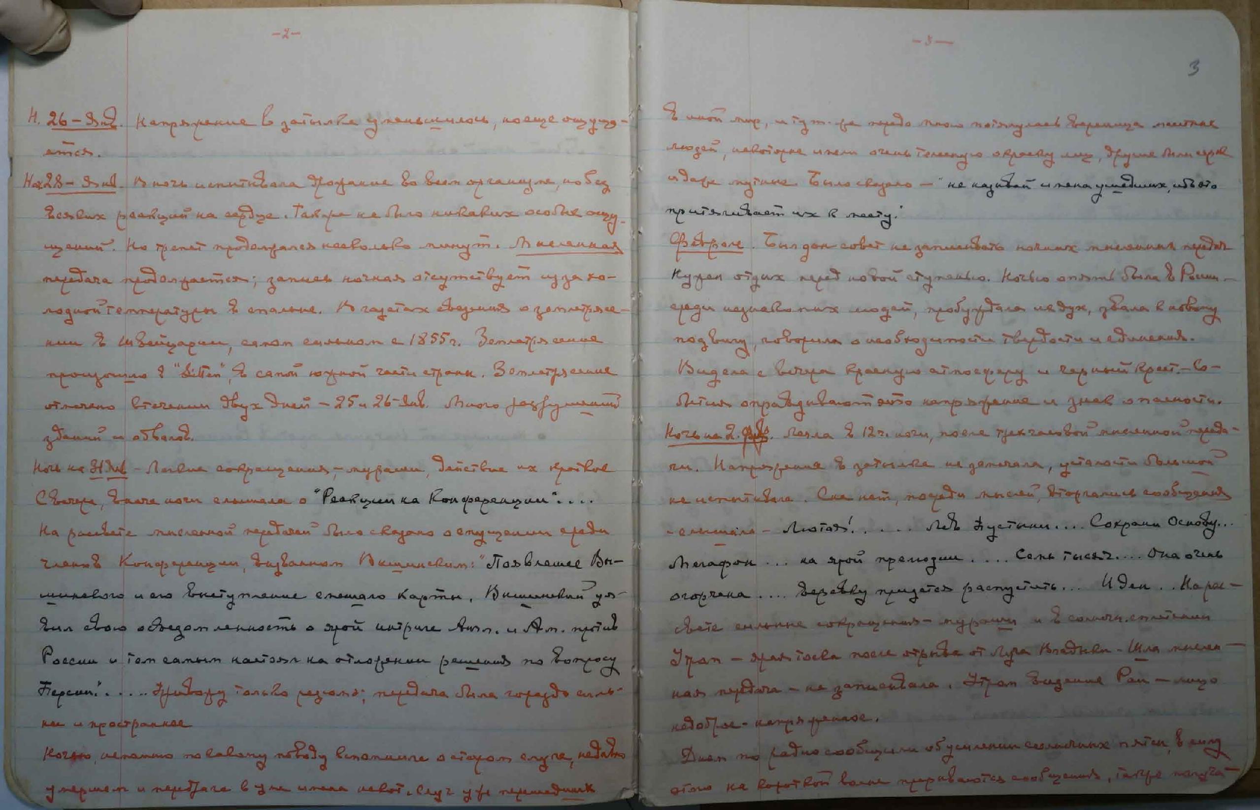 Ночь на 3-го февраля легла в начале 12-ти часов. Мысленная передача продолжалась больше двух часов. Сна нет; очень тепло − ночью температура в комнате 15 градусов по Цельсию. Сообщений на слух было мало, и утром обычная беседа не состоялась из-за необычных трудных токов и напряжения в Атмосфере.