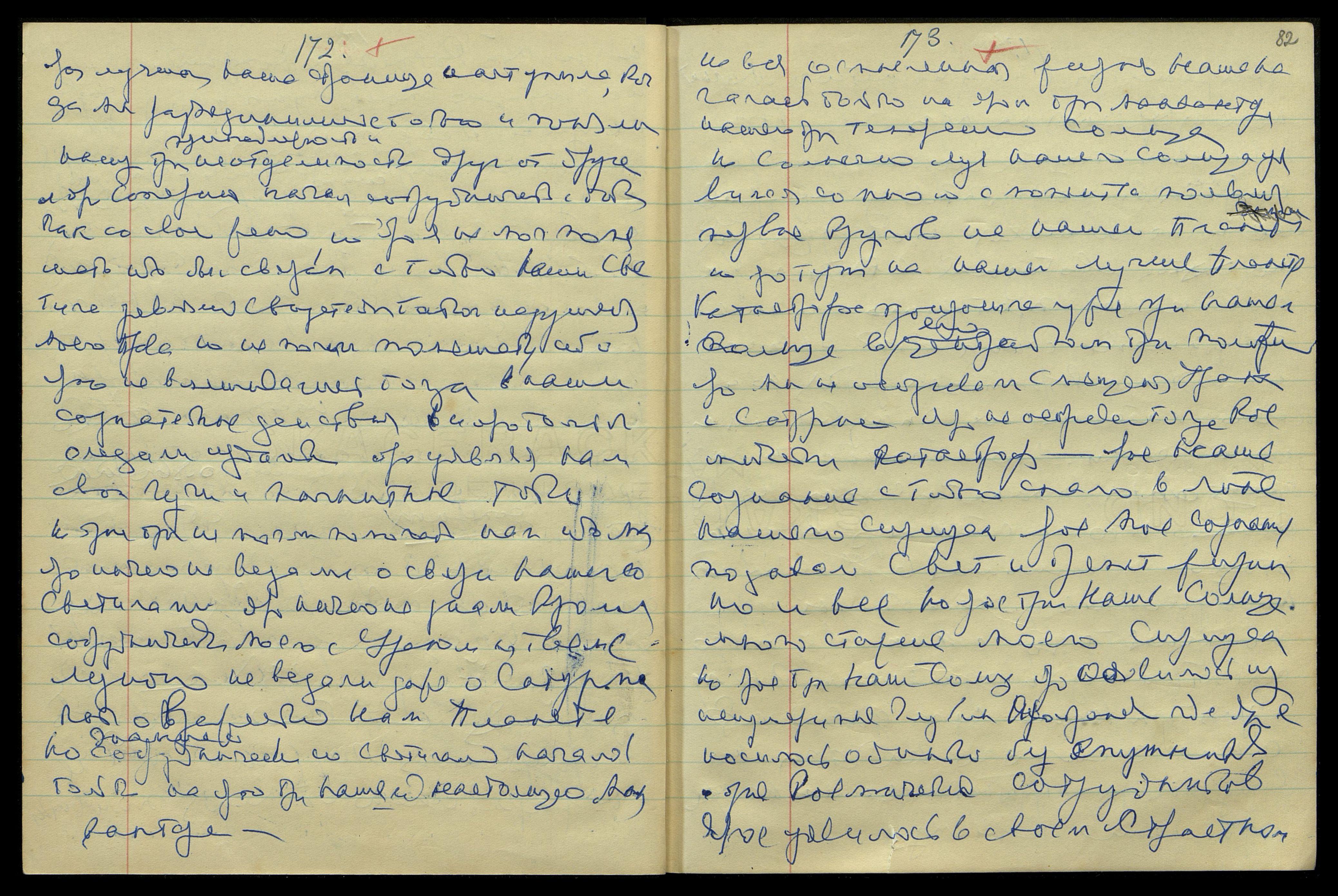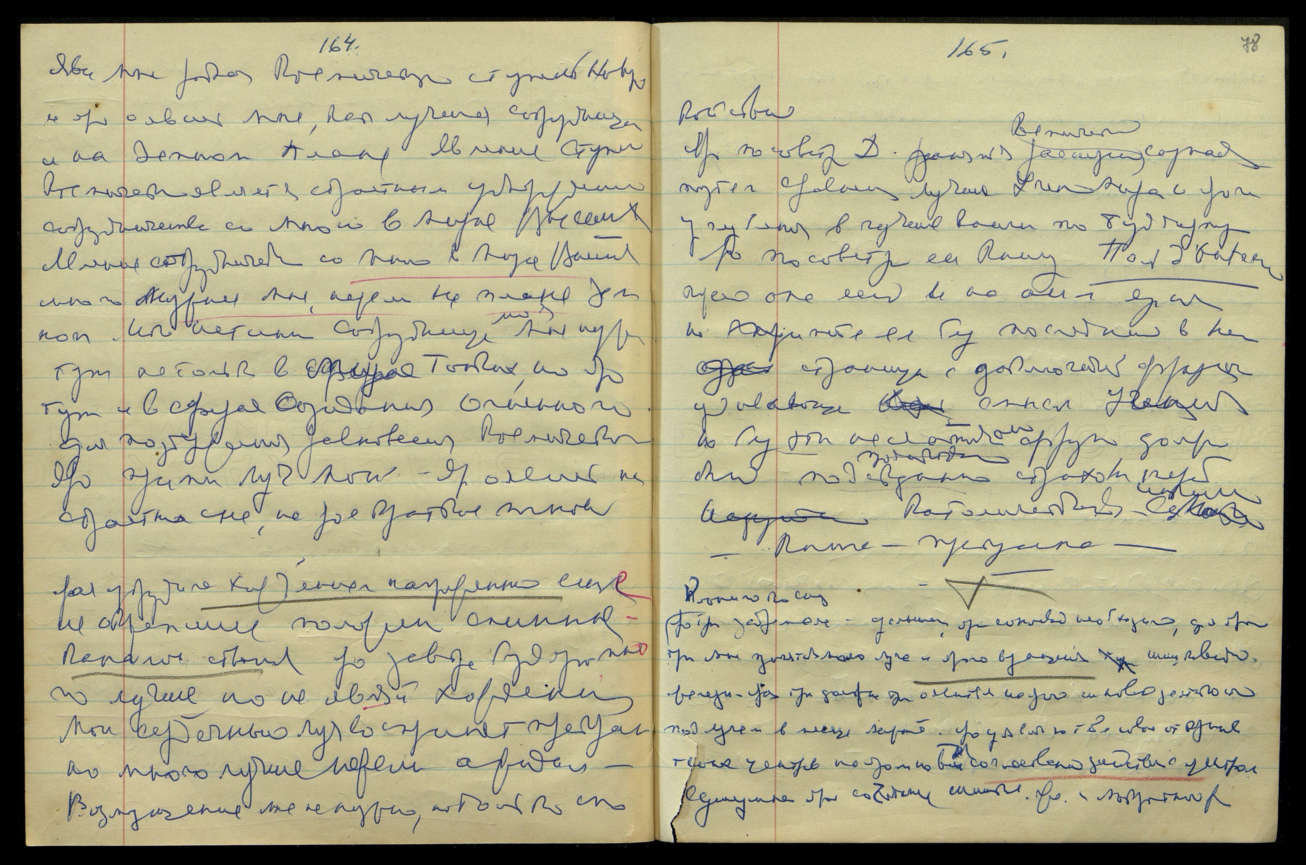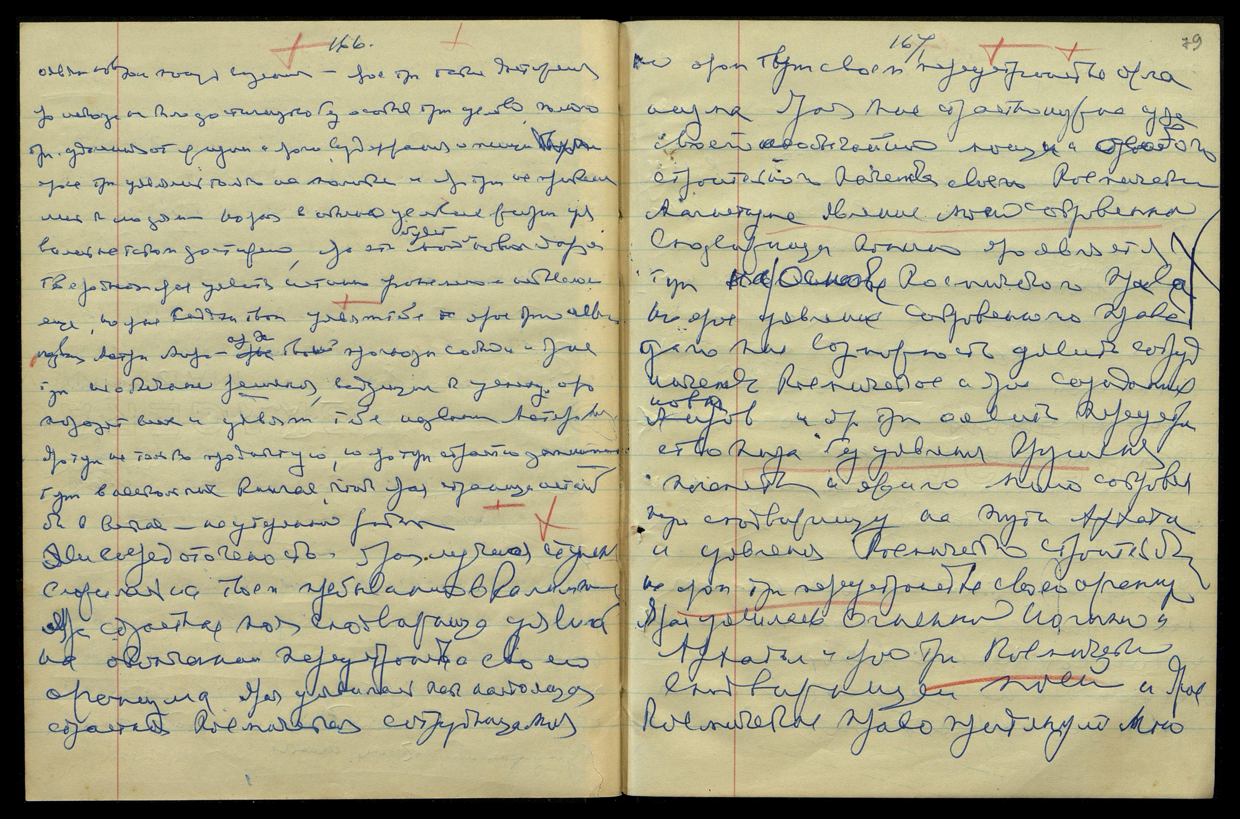 Ярая утрудила хождением напряженн[ые] ещё неокрепшие положен[ия] спинных каналов стволов. Яро завтра будет много лучше, но не являй хождения. Мой сердечный луч воспринят прекрасно, но много лучше, нежели ожидал. Возмущение Мне не нужно, но только спокойствие.