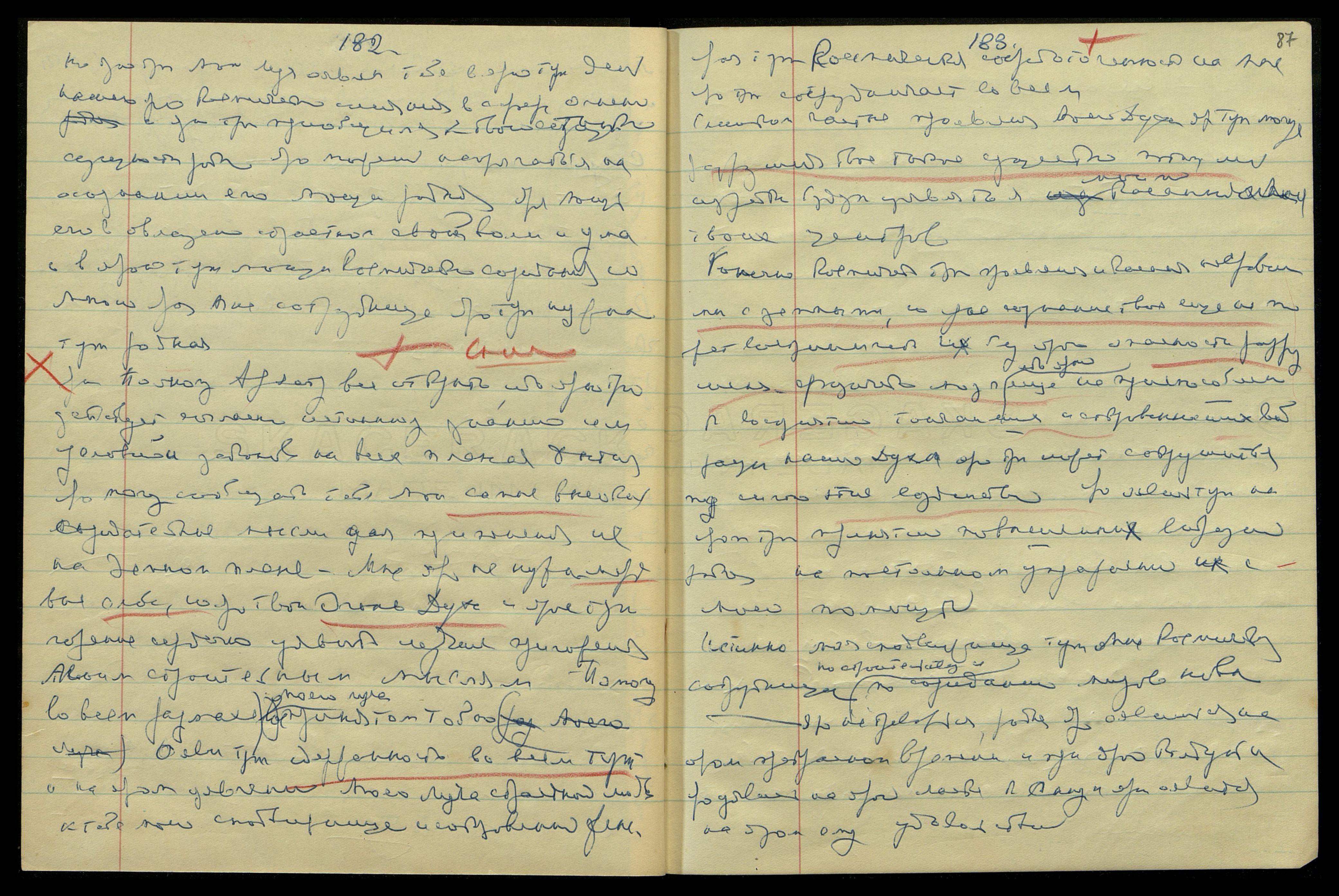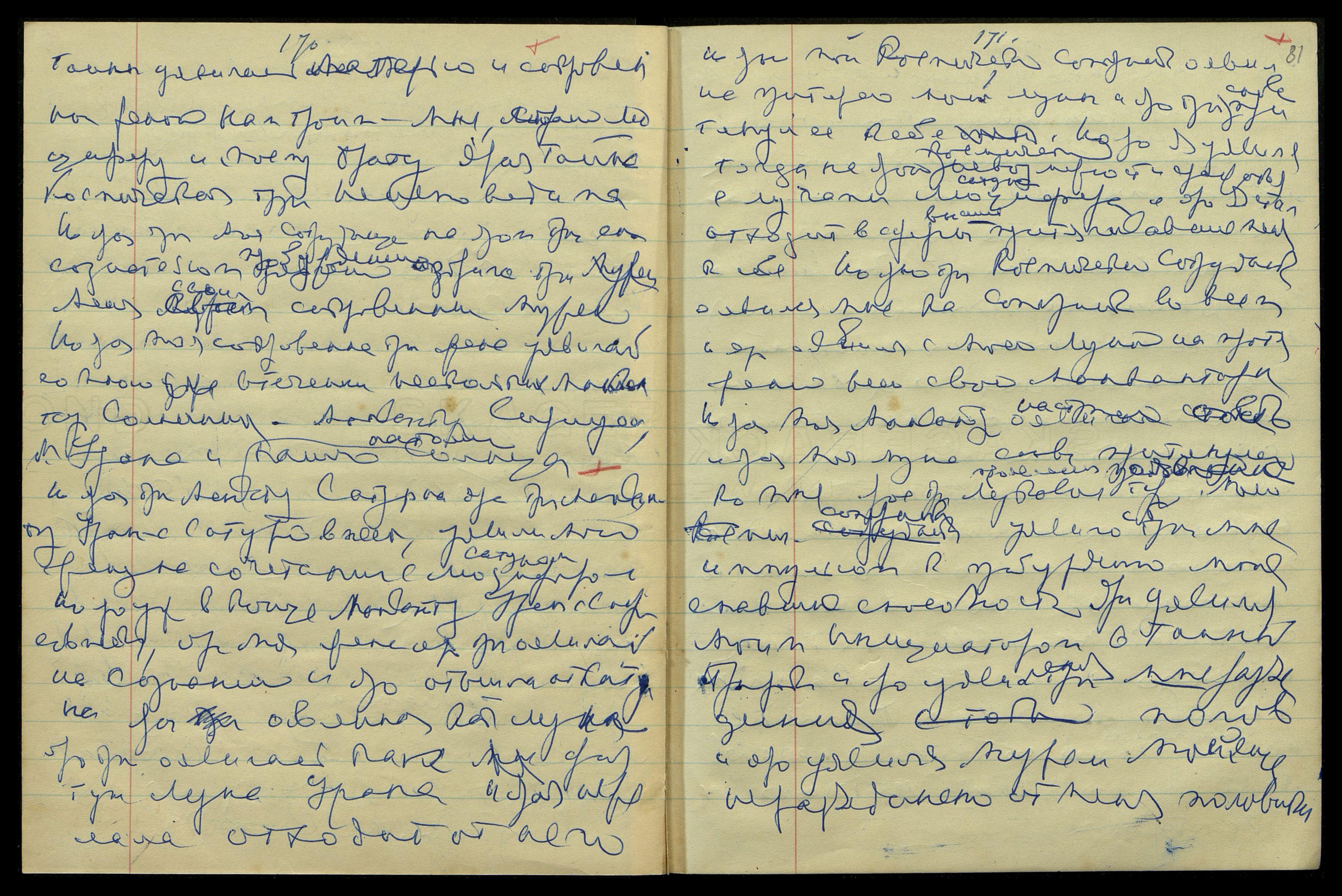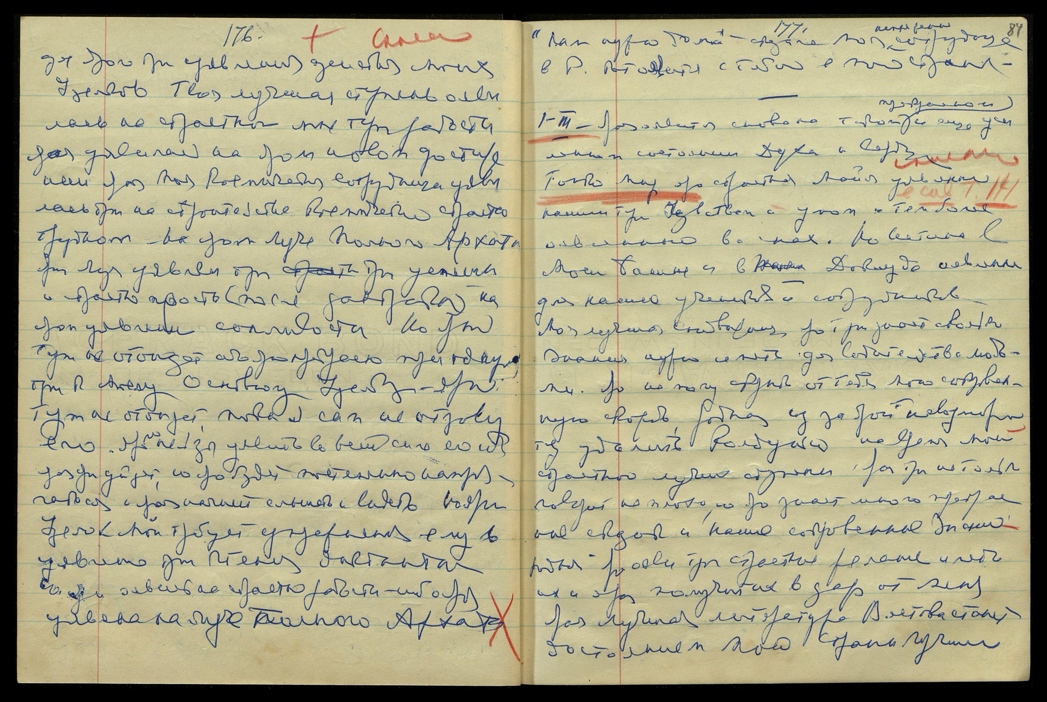 Ярая утрудила хождением напряженн[ые] ещё неокрепшие положен[ия] спинных каналов стволов. Яро завтра будет много лучше, но не являй хождения. Мой сердечный луч воспринят прекрасно, но много лучше, нежели ожидал. Возмущение Мне не нужно, но только спокойствие.
