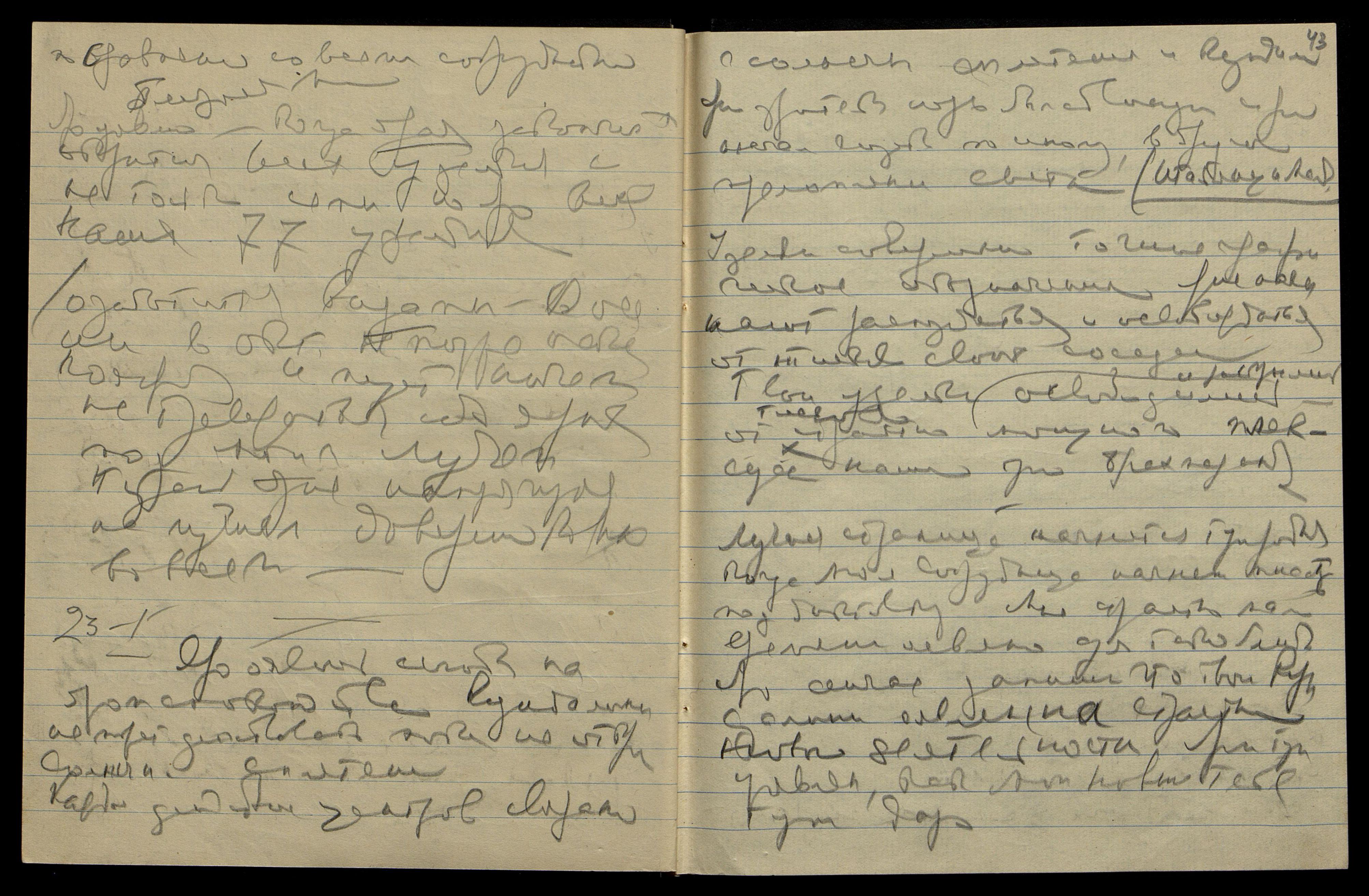 Абрам[ов] сотрудничает страстно своим страстным телом. Но ярый уявлен на лучшем тут ему уявленном методе, но яро уявленном тут, конечно, совершенно несознательно на сотрудничество с Моей Женой.