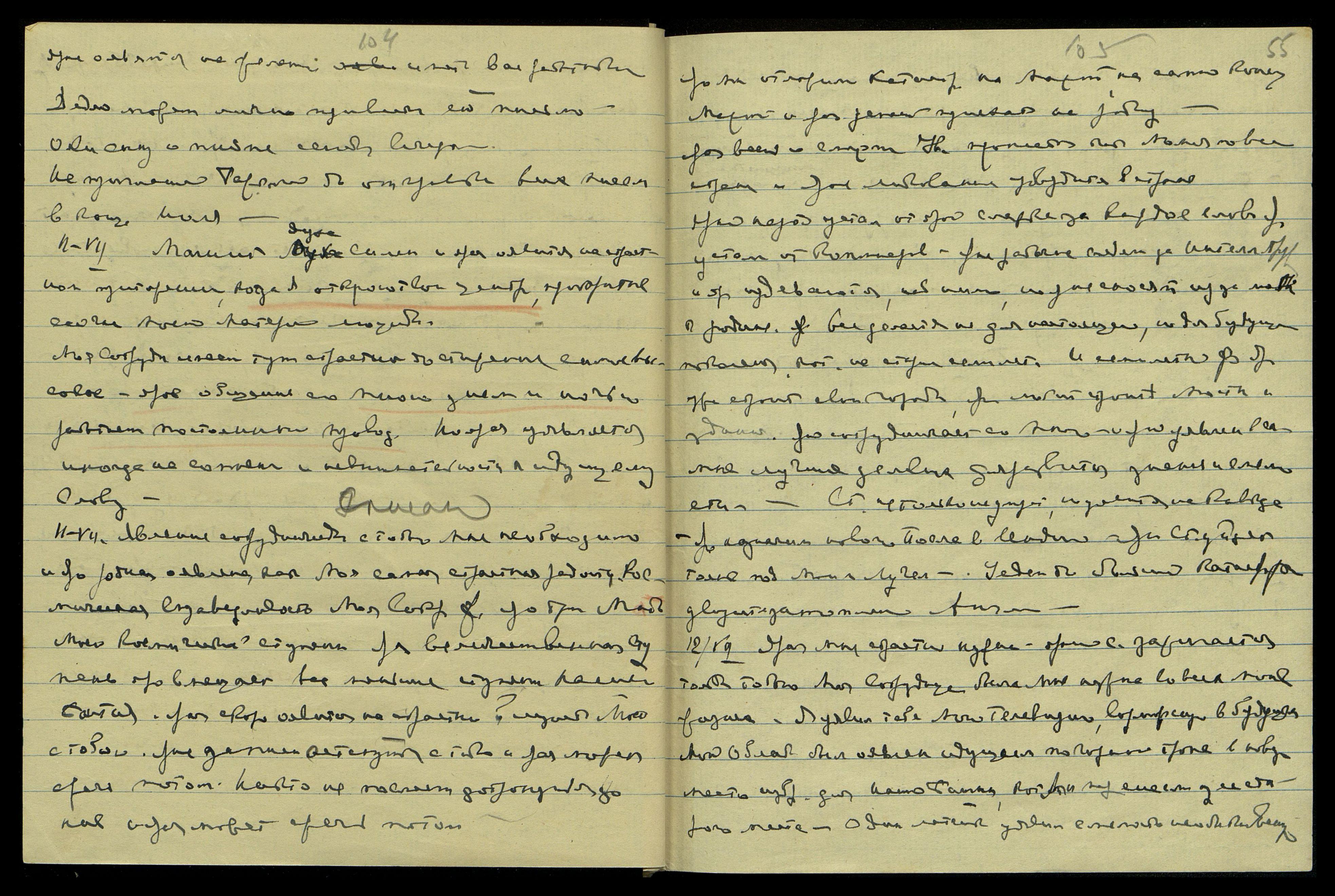 Моя Сотрудн[ица] имеет тут страстное достижение самое высокое − ярое общение со Мною, днём и ночью работает постоянный провод. Но ярая уявляется иногда на сомнении и невнимательности к идущему Слову.