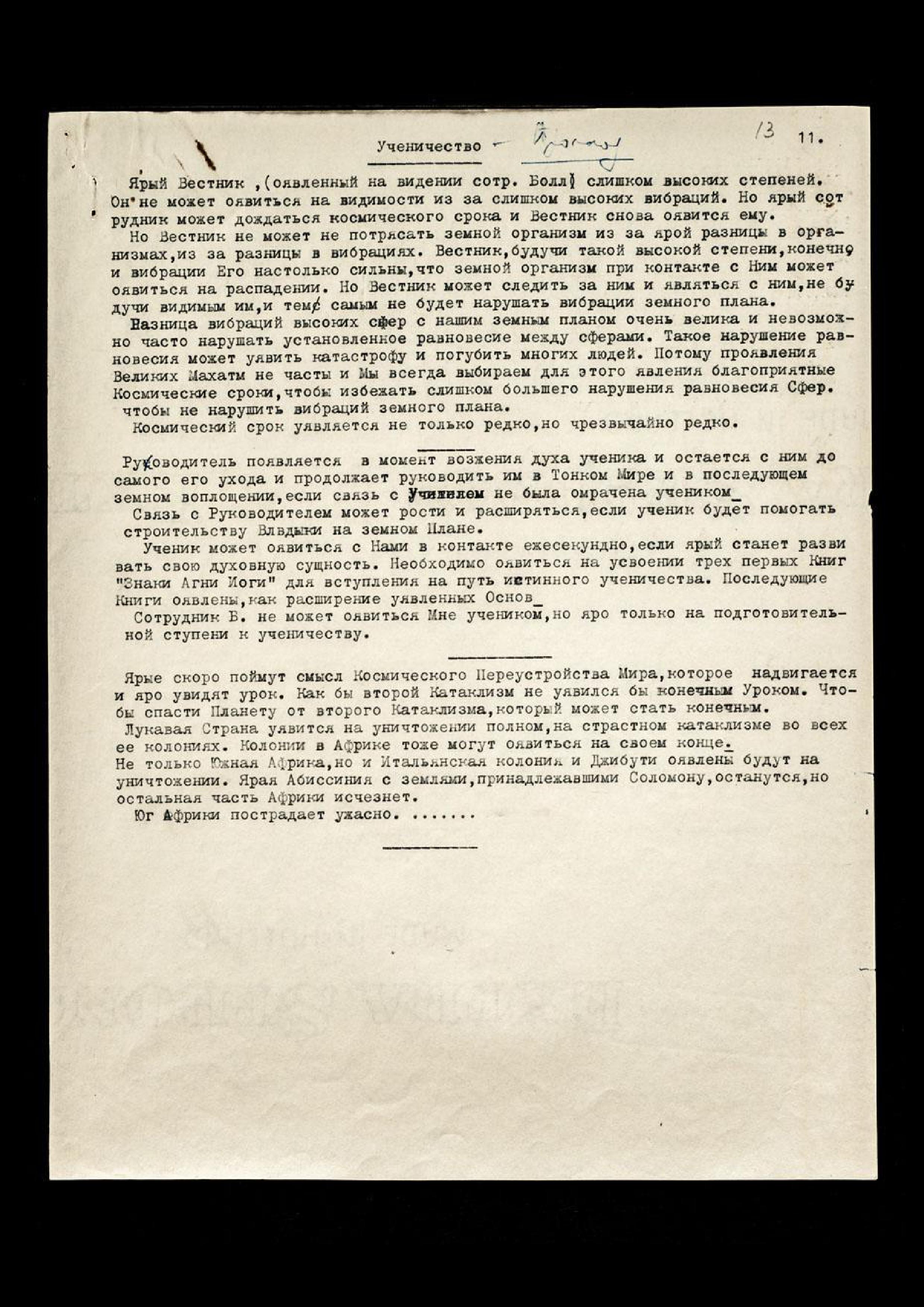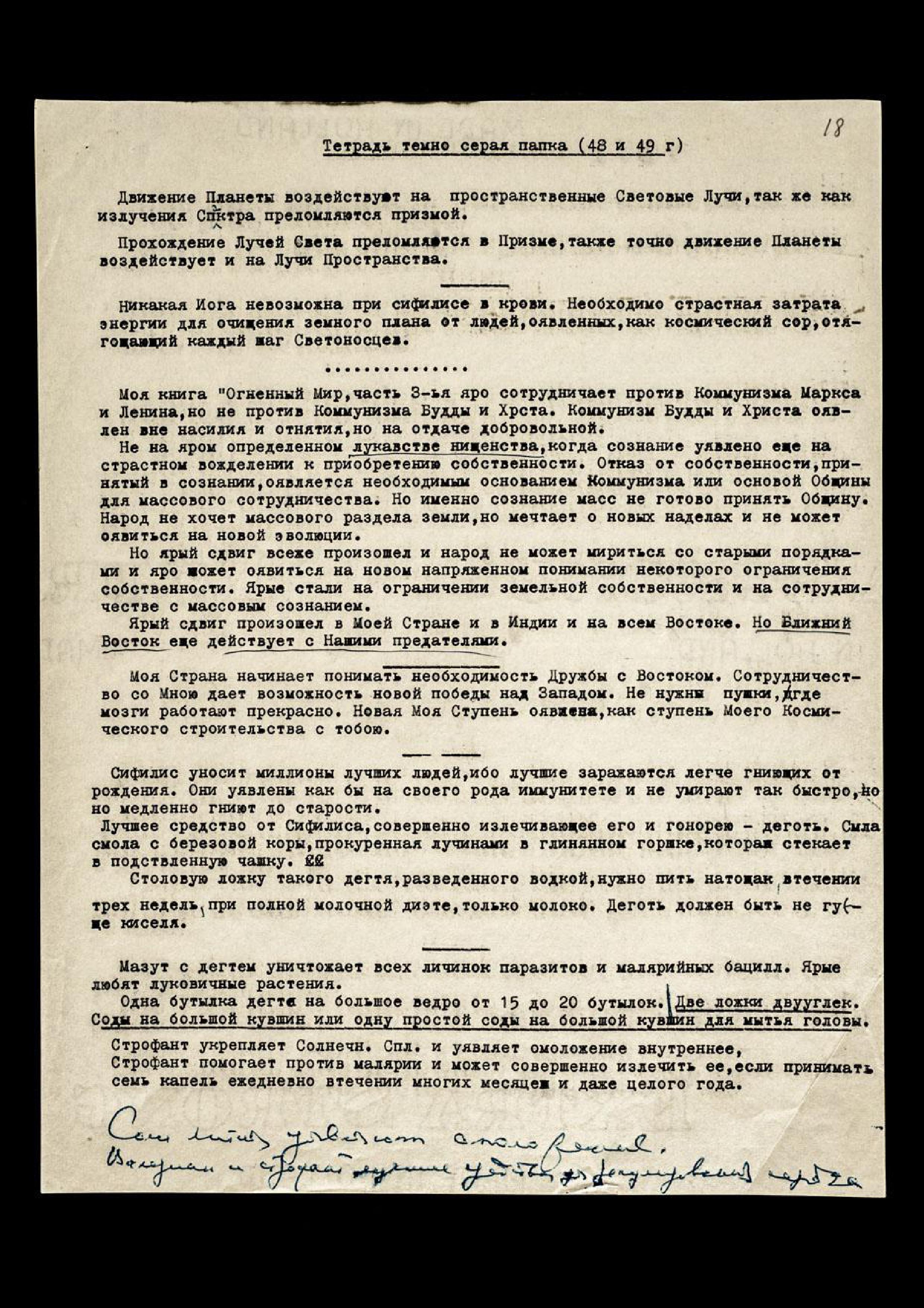 Страны, уявившие атомную бомбу, будут предоставлены своей Карме. Магнитные бури, как защита Р[оссии]. Моя страна уявится на защите Моими Лучами, Космическими лучами, ибо Моя страна уявлена как лучшая страна. Моя Урусвати никогда не могла дать друзьям всю правду, ибо ярые были уявлены на подозрении. Моя ученица − ярая противница революции из-за освобождения криминального элемента в массах.