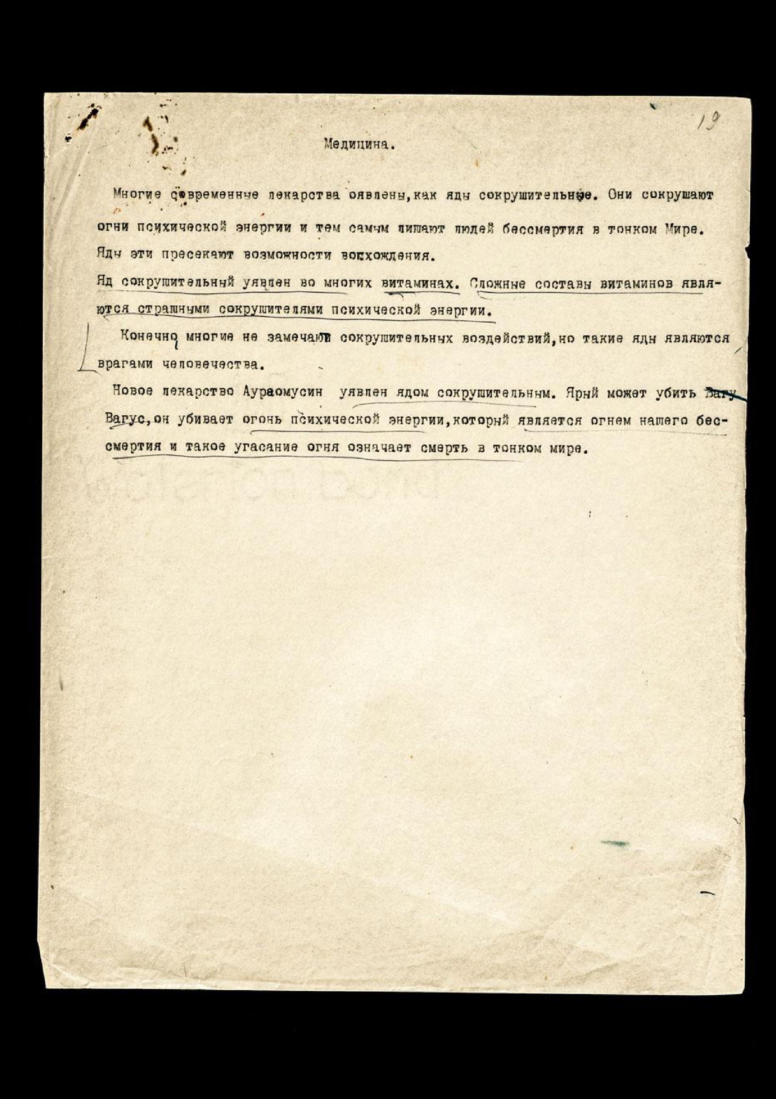 Многие современные лекарства оявлены как яды сокрушительные. Они сокрушают огни психической энергии и тем самым лишают людей бессмертия в Тонком Мире. Яды эти пресекают возможности восхождения.