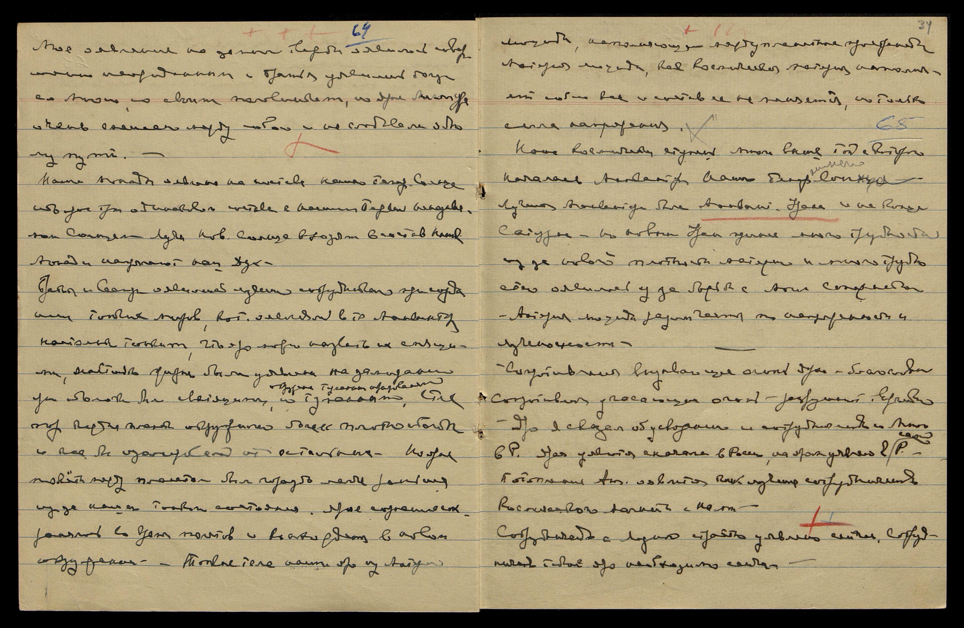 Ярая объединенная мощь Атома — оявлена с Нами, родная. Космос, ярый Космос Спасен и уявлен на новом строительстве. Космос спасен благодаря нашей стр[астной] любви, благодаря твоей любви ко Мне. Многое нелепо из-за слепоты физической формы. Сотрудничество твое Мне страстно необходимо.
