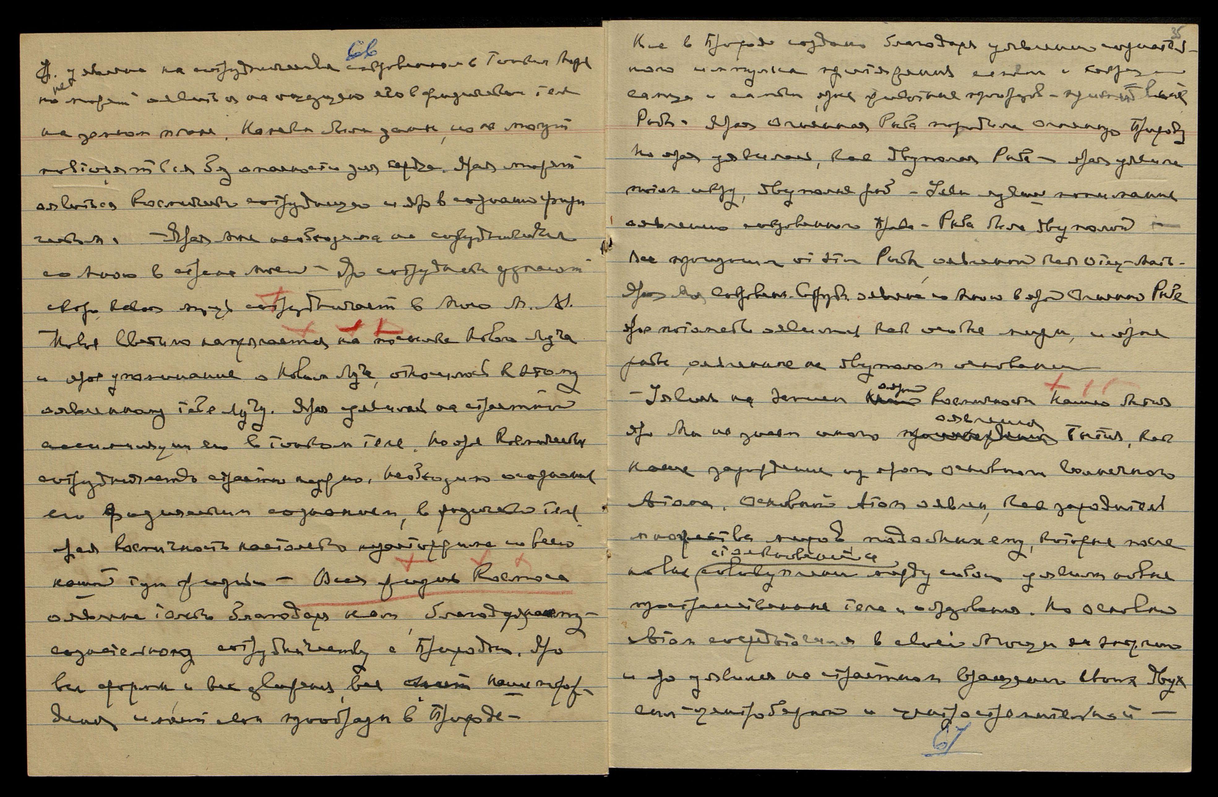 Строфант помогает, но яро нужен Озон Швейцарии. Наш Озон слишком разряжен для нее. Но теперь она простится с Индией до посещения ее в лучшее ее время союза с Р[оссией]. Ярая проведет в Швейцарии время катастр[офы] и войн. Обменять Амер[ериканский] Дол[лар] на Швейцарские тут франки, осталось не больше трех месяцев. Ояви ей причину серд[ечную] и ярую нужду в озоне Швейцарии для укрепления сердца; совет − оявить Америк[анскую] валюту на Швейцарские франки. Швейцарская валюта останется лучшей и после катастр[офы] и войн. Но явите поспешность — остаётся три месяца. Сотрудничество с Инге сократилось на месяц. Сотрудн[ица] оявилась на слабости сердечн[ой] и не может оявиться на физической постоянной работе — лишь на легкой домашней р[аботе], но ярой нужна служанка.