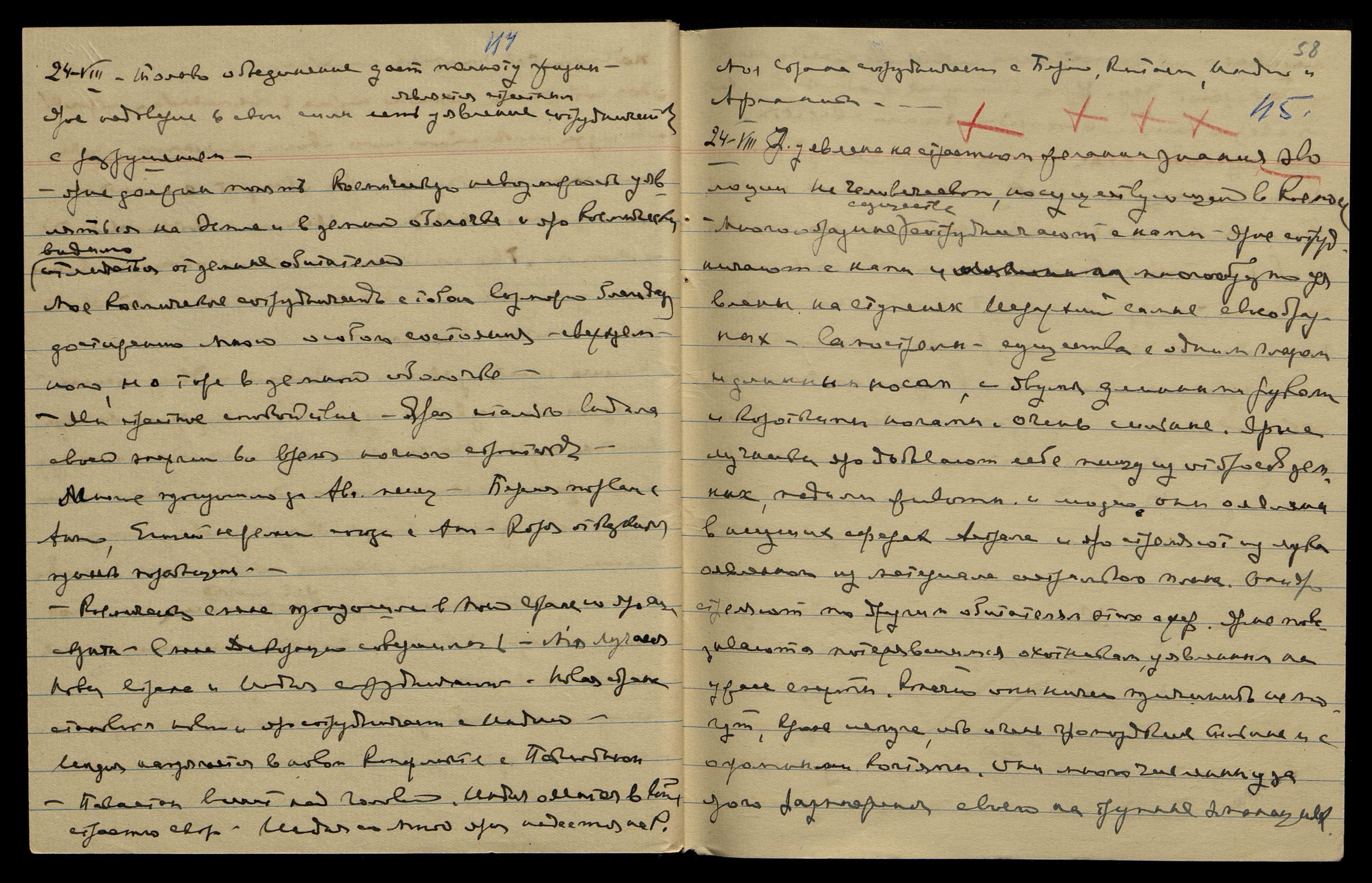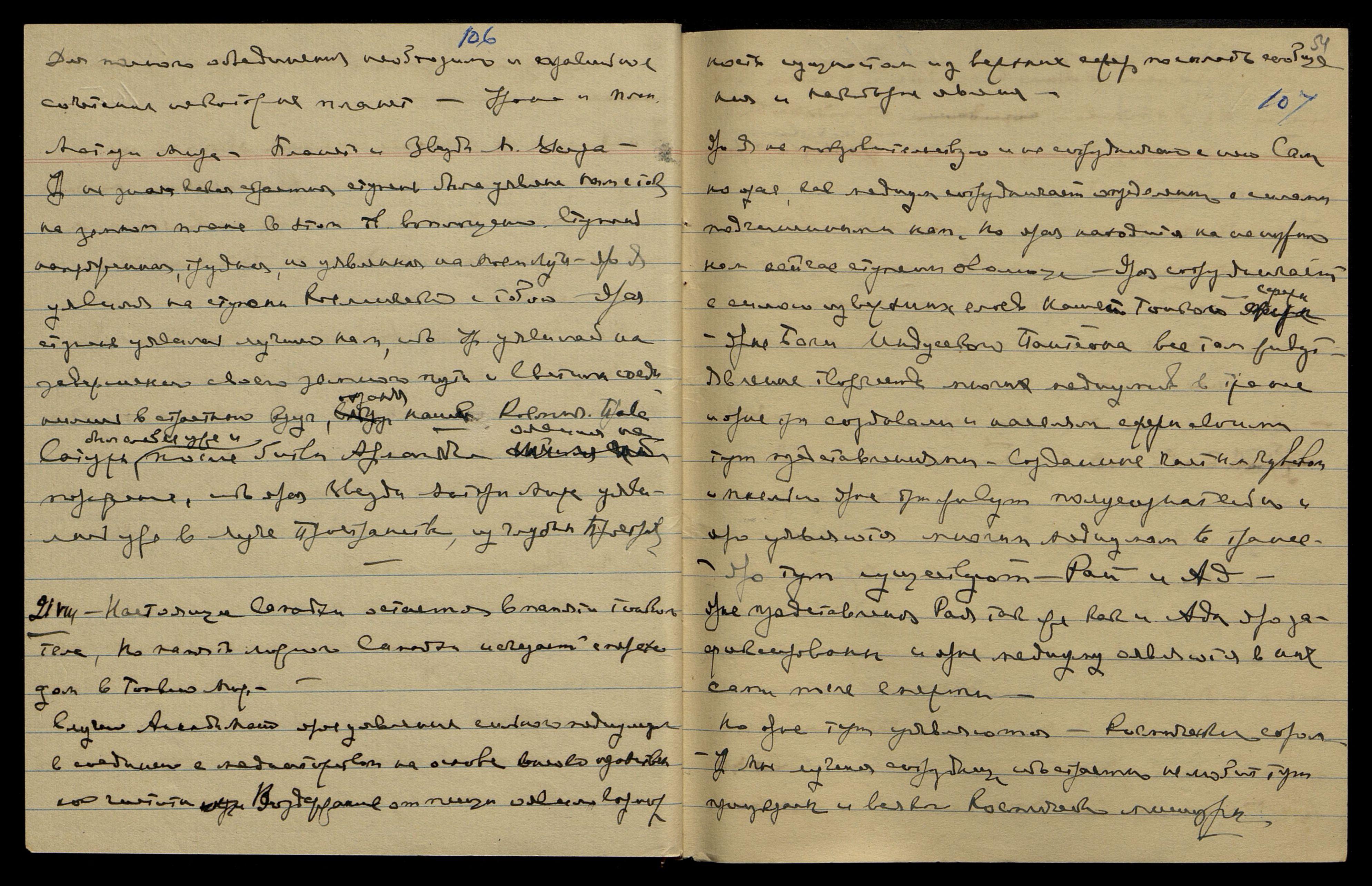 Но ярый Мой транс был необходим тогда (в Индии) в нашем случае для Моего нахождения с тобою в Тонк[ом] Мире, пока ярая не осознала своего нового положения в тонком теле и ментальном состоянии. Яро Я оявился с тобою, и ярый транс продолжался несколько дней — яро оявился на страстном счастье с тобою, ибо яро на земле [несколько слов зачеркнуто]. Но ярая судьба приготовила Мне новую Голгофу. Яро Я уявился сотрудником Кармы, уявленной Нашей Планете.