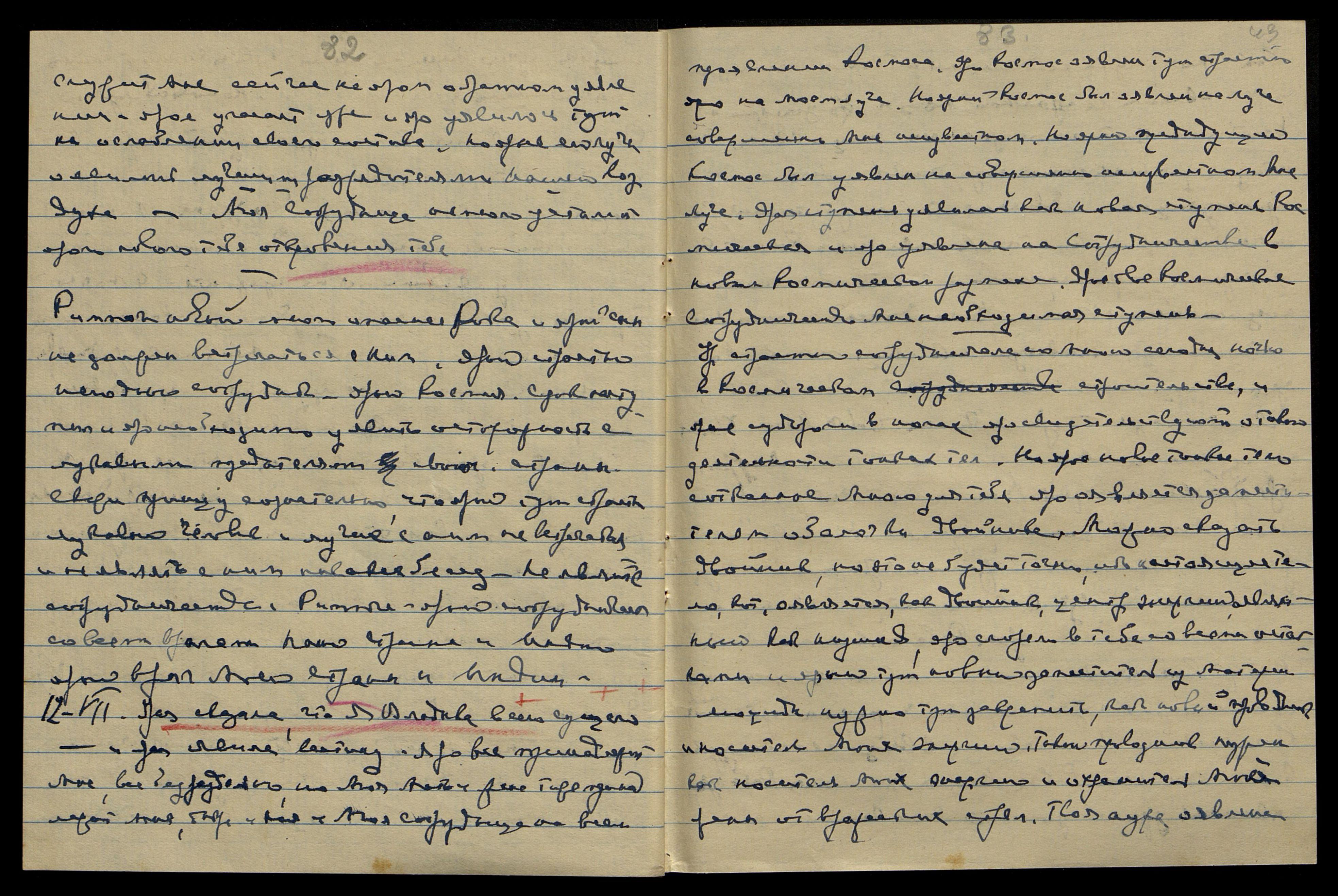 Уявись, родная, на страстном Луче спокойствия и знания сроков. Яви им возможность отъезда в Швейцарию после твоего отъезда. К[атрин] не должна бояться оставить сумму в П[енджаб] Банке — ярый устоит. Ярые могут оявиться в Манди, в Дели и потом в Швейцарии.