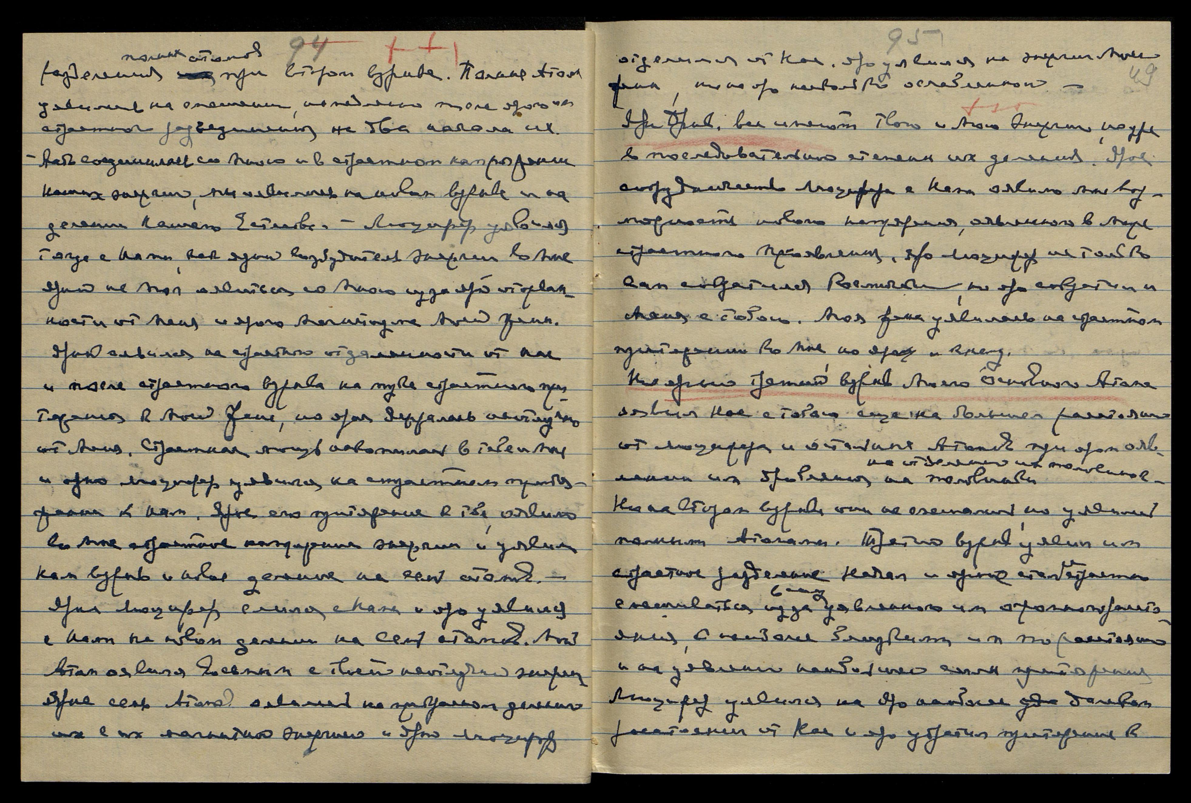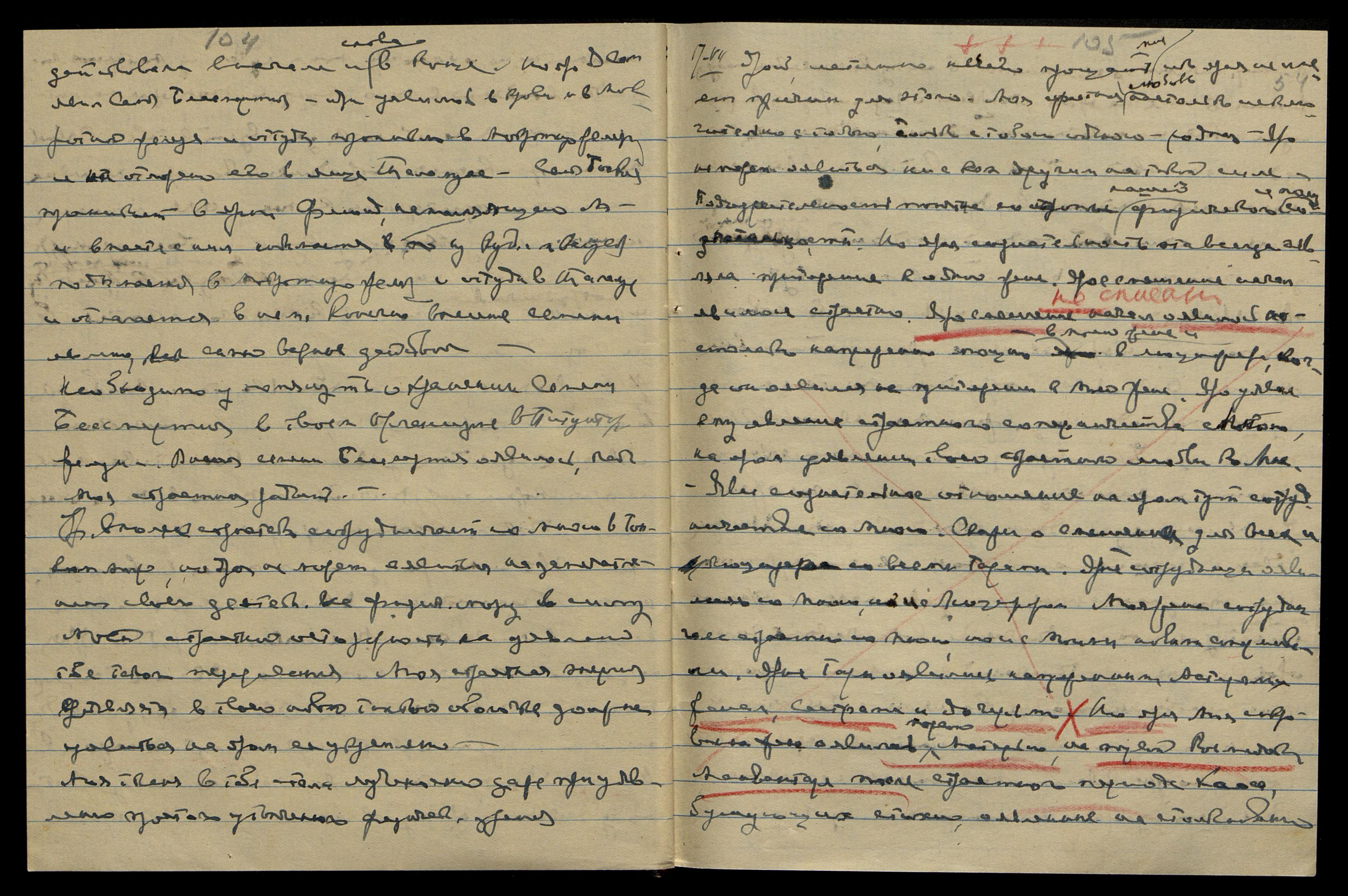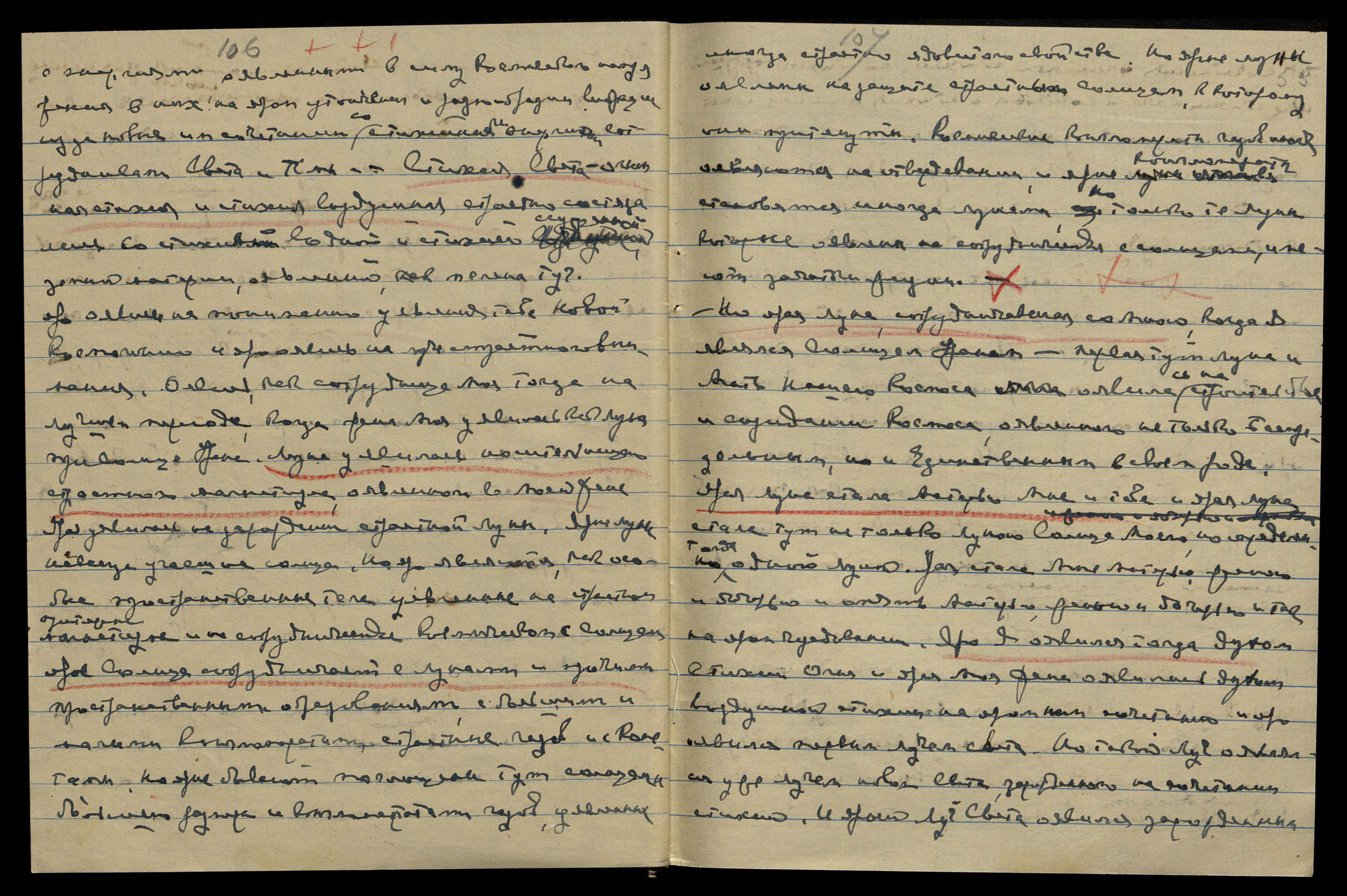 и Тибете. Моя защита оявилась в виде моих лучей. Но лучи не могли уявить тебе луч М., ибо не мог оявить пожар организма, космически необходимого Мне. Моя Урусвати стала необходимой Сотрудницей на космическом строительстве, и яро Я надеялся на победу над врагом из-за твоего космического сотрудничества со Мною. Мой Огненный луч мог соединиться с твоим огн[енным] лучом и в Мире Тонком. Но Моя сотрудница оявилась на страстной слабости сердечной, в силу предательства, уявленного в Америке, и Урусвати уявилась на яром тут уходе определенно на сороковом и в 41 году, но Космическая Справедливость оявила Мне возможность спасти тебя открытием центра Бессмертия и вложением Семени Бессмертия, оявленном в луче, оявленн[ом] в тонком теле. Семя Бессмертия оявилось страстно сильным средством, и Урусвати ожила, и центр, замолкнувший было из-за сожжения магнитной оболочки двойника, снова был приведен к деятельности. Моя Космическая лучшая Сотрудница оявилась лишенной магнитного притяжения, но с тех пор я соткал тебе новую магнитную оболочку моим лучом из Материи Люциды, входящей в Мою Ауру, и Моя ярая магнитная энергия и оболочка действует в тебе. Оявись Мне на яром космич[еском] сотрудничестве, яро оявись на магнитном притяжении ко мне. Ояви понимание неслыханному ускорению твоего прохождения всех ступней Йоги и ярого завершения на пути Архатства, и слияния [сверху строки — "сотрудничества"] со Мною в космическом строительстве и созидании новых миров.