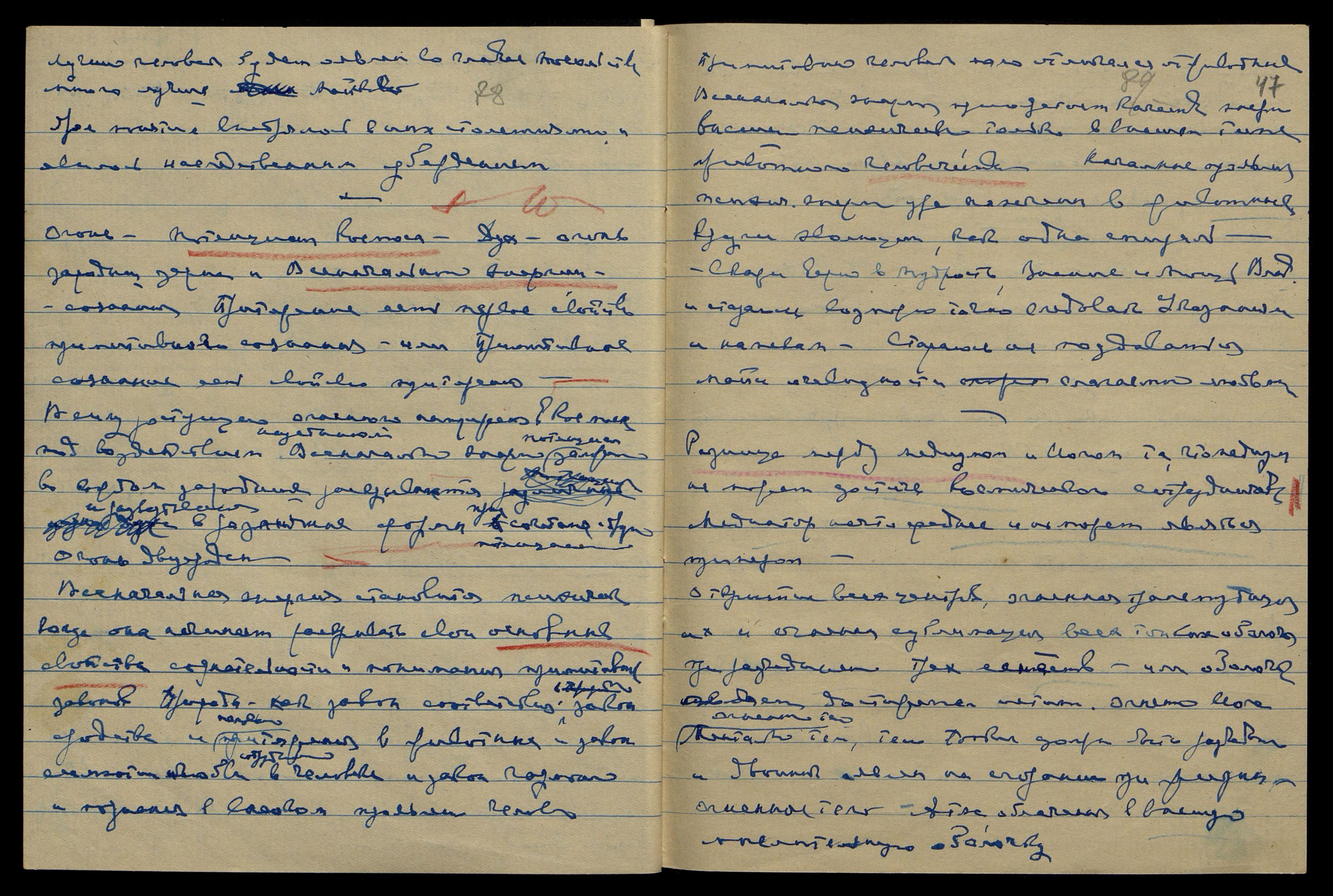 Яви ему страстное спокойствие. Ярый не должен оявиться на сознании одиночества. Ояви ему страстное лукавое строительство вокруг него. Явление построения уже ясно Мне, яро наметилось. [слово неразборчиво] уявилась на сотрудничестве с S. Br. Ярая начала плести свою паутину. Ярая уже сотрудничает на удалении Катрин из Индии. Ярая ненавидит Катрин. Ярая Колд[унья] оявится сотрудн[ицей] S. Br. Но ярый оявится героем и будет оправдан всеми, вернётся в Р[оссию] и станет лучшим сыном.