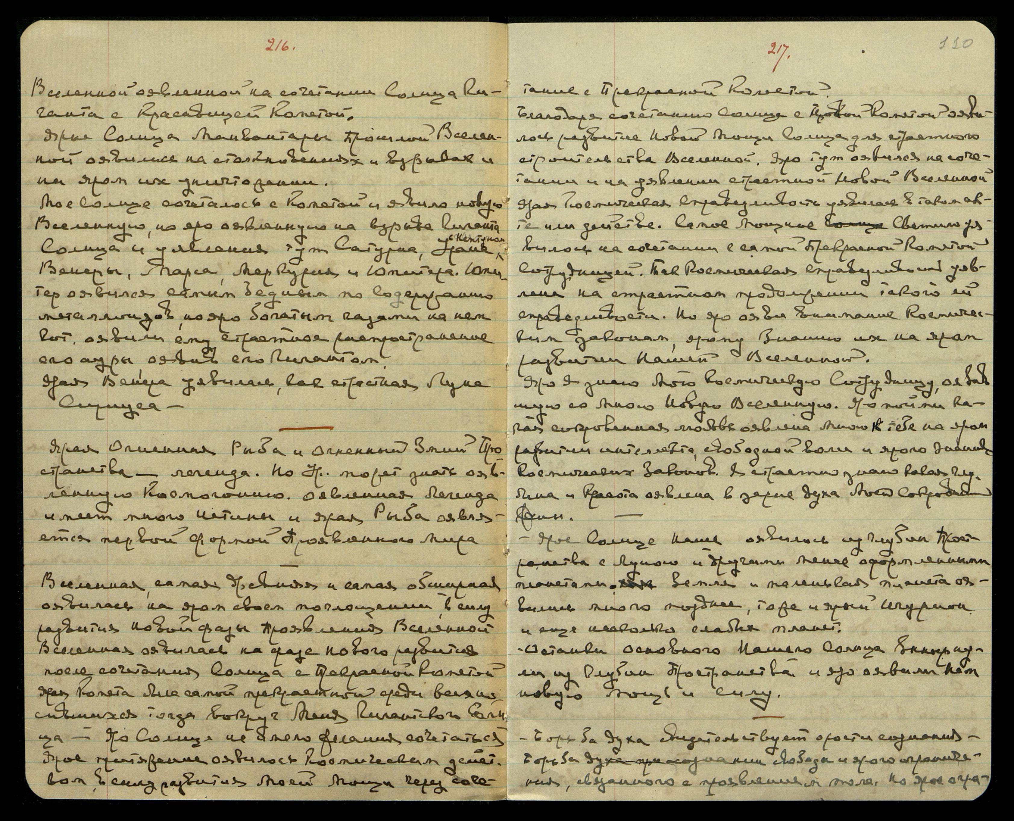 Новая Планета оявится на горизонте, когда Урусвати въедет в Р[оссию]. Ярая оявится на восхождении и будет сверкать, как малое Солнце. Планета уявится на восхождении в течении трех лет, а затем она уявится на отдыхе и Новая Планета Матери Мира уявится в день избрания сотрудницы М[атери] М[ира].