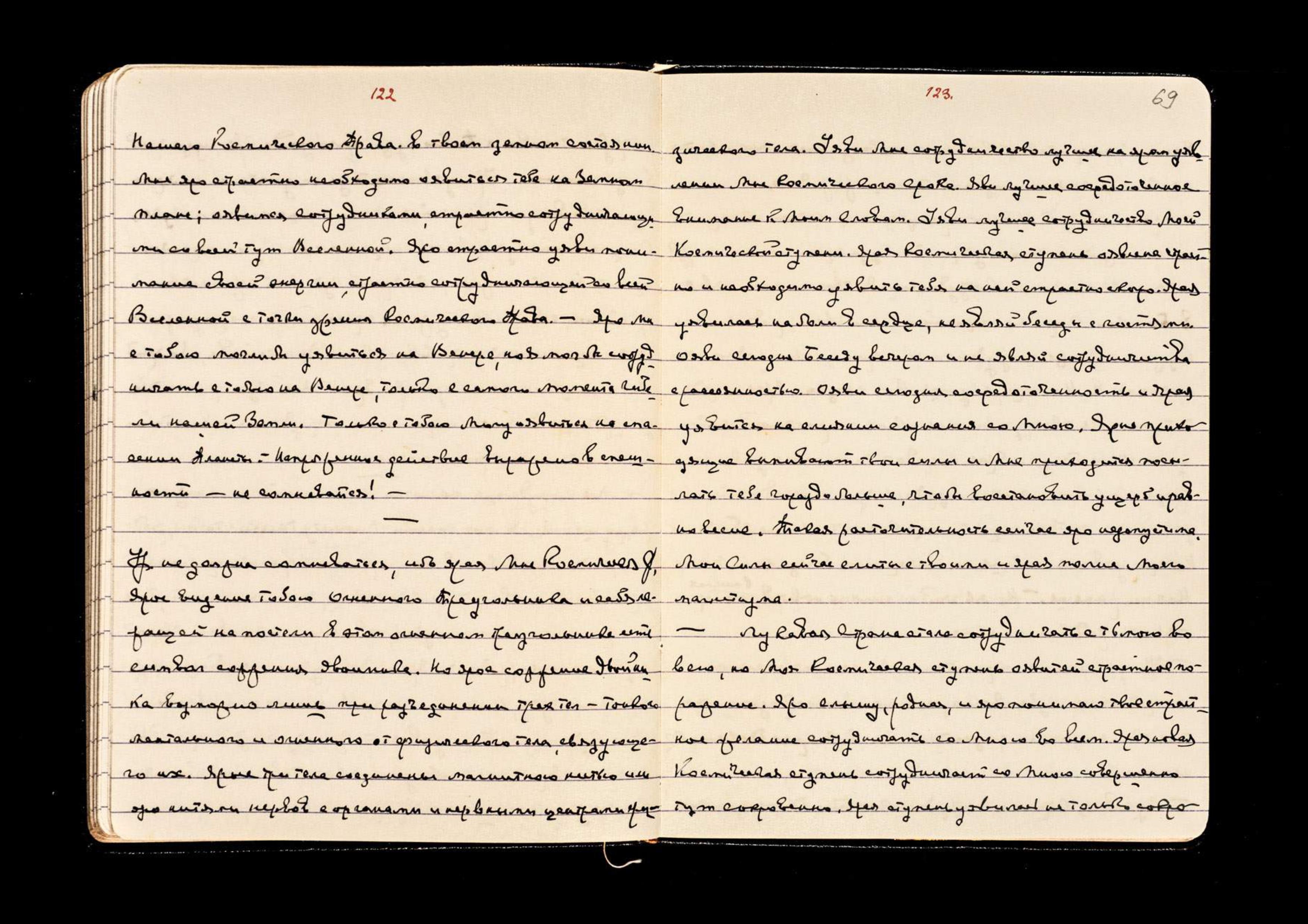 вится на твоём въезде в Р[оссию] и останется до твоего ухода. Но ярая снова отойдёт в глубины пространства, когда Моя Жена уявится на уходе. Моя Страна оявится скоро на страстном вам приглашении.