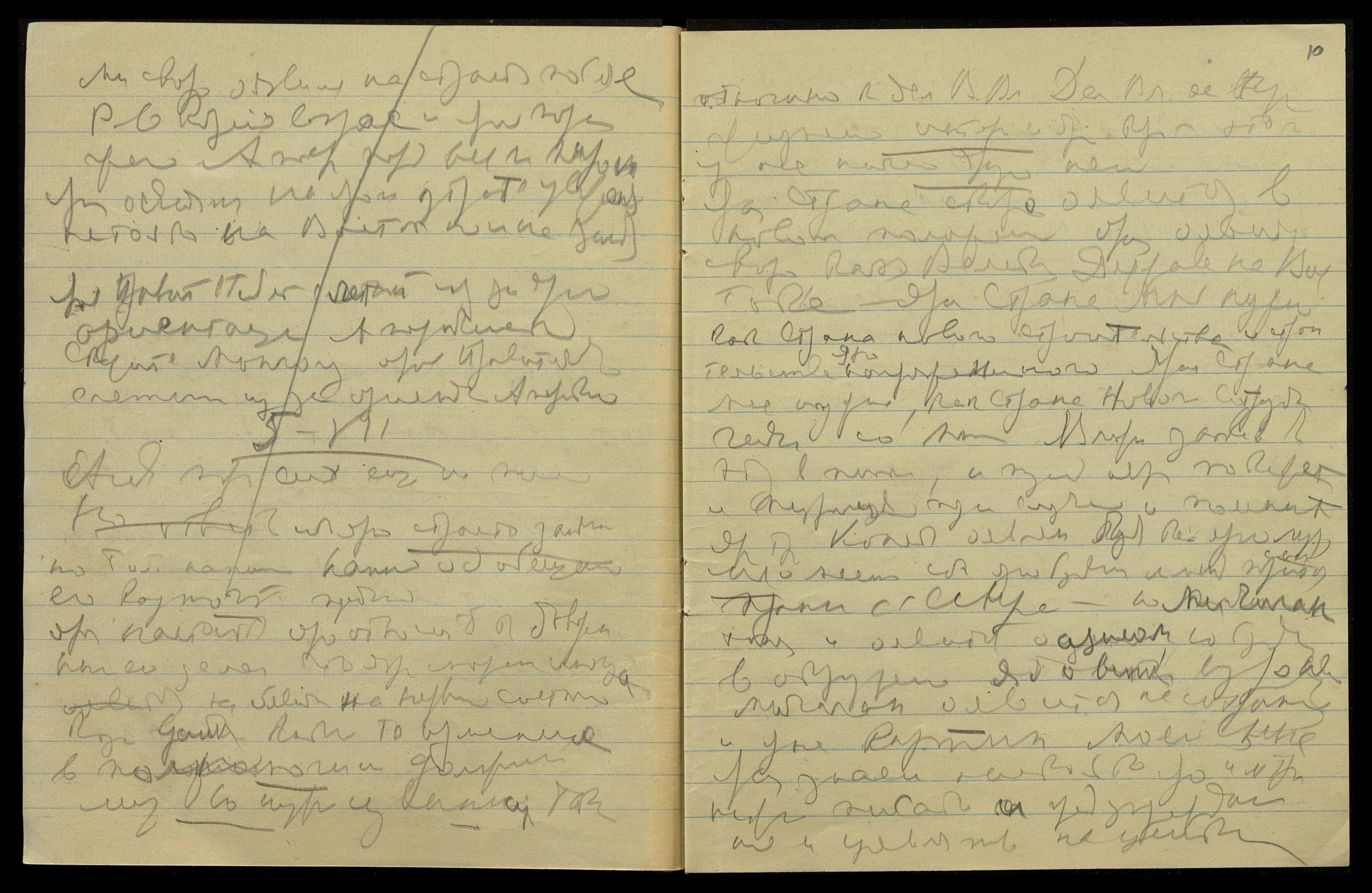 Моя любовь к н[овой] Стране растет и яро поеду туда со всем записями и книгами, из этого можешь вывести многое и яр[о], родн[ой], надеюсь, что яр[ый] оявится с нами, когда время подойдет.