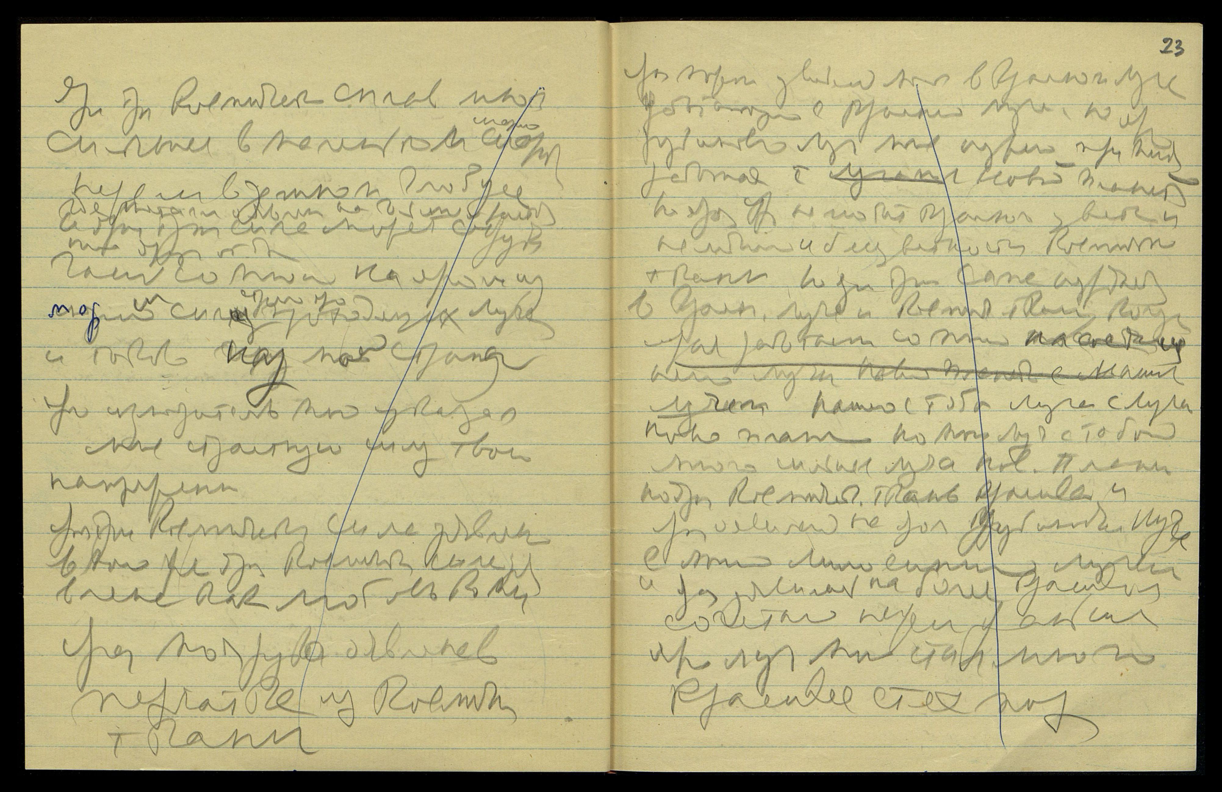 Но ярое зарождение яйца оявлено как страст[ная] Космич[еская] тайна и разгадать её никто не может. Моя жена оявлена на яром Луче нового Сознания, и ярая Космическая тайна оявится перед твоим сознанием.