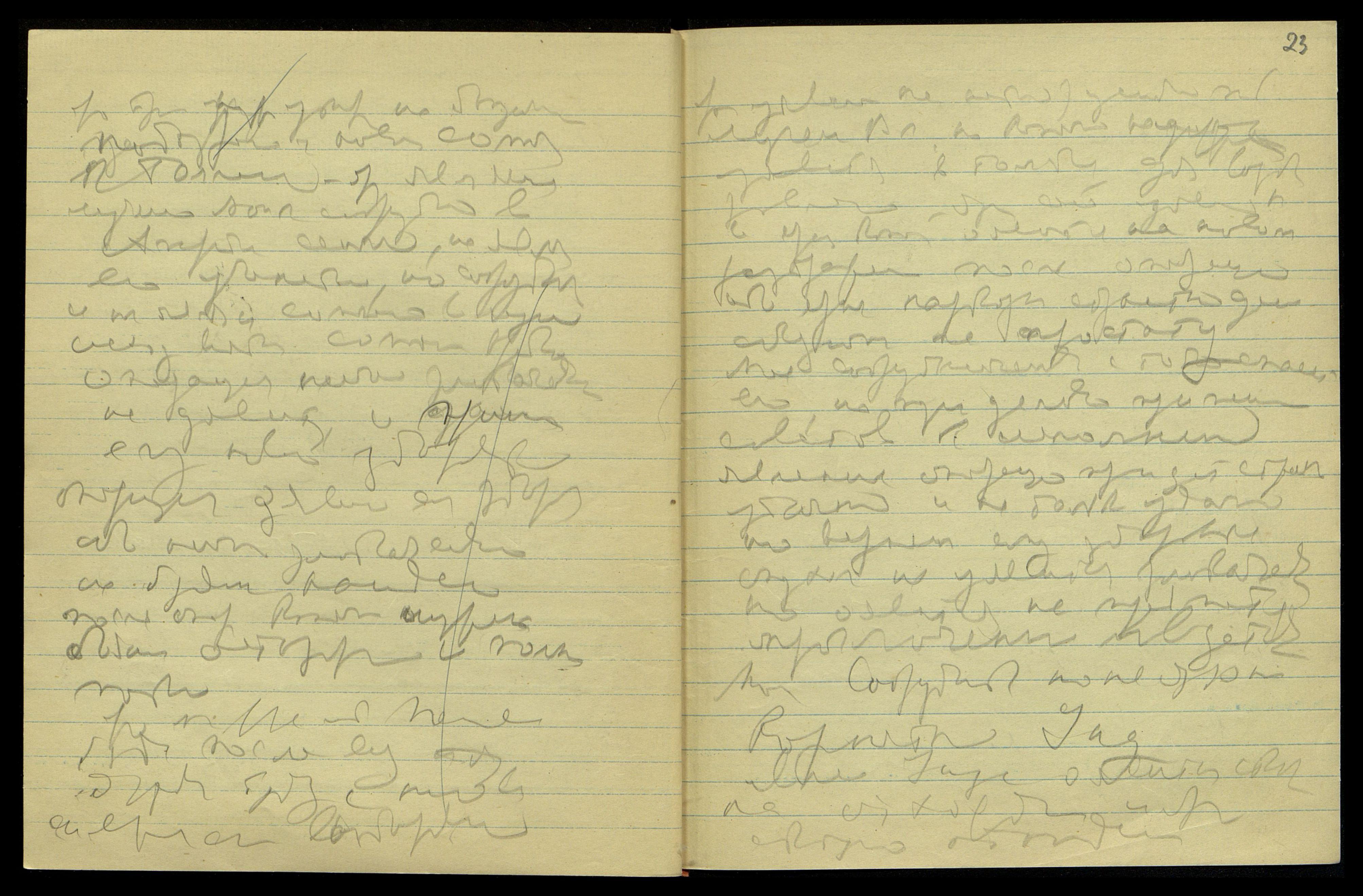 Моя страстная Космическая любовь к т[ебе] и любовь к страстн[ому] к мощн[ому] знанию сил Природы оявила Мне возможность овладеть силами Космическими и сокровенным тут знанием и [слово неразборчиво] овладеть Космичес[кими] Законами, и яро Я тут уяв[ился] тв[оим] му[жем] и Настав[ником], и яро Влад[ыкой] тв[оим] из-за ярого тут знания Космич[еских] законов и стр[астной] любви к тебе, и уявился Космич[еским] сотрудником во всей амплитуде Космических законов. И ярая жена оявилась как Космич[еская] Сотруд[ница], овладев мощью Магнитн[ого] притяжен[ия]. Ярая уявилась тут Силой Космич[еской], яр[ой] тут Мощь[ю] Космич[еской] на яром магнитном притяжении.