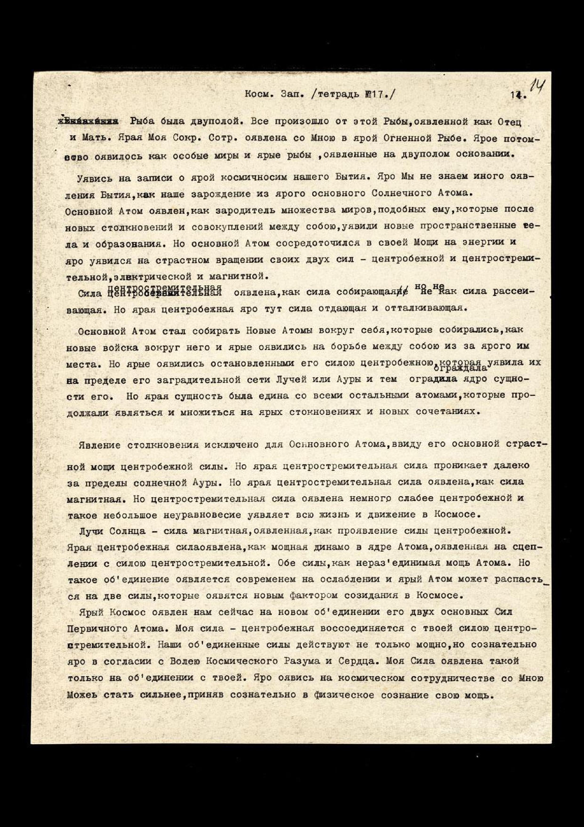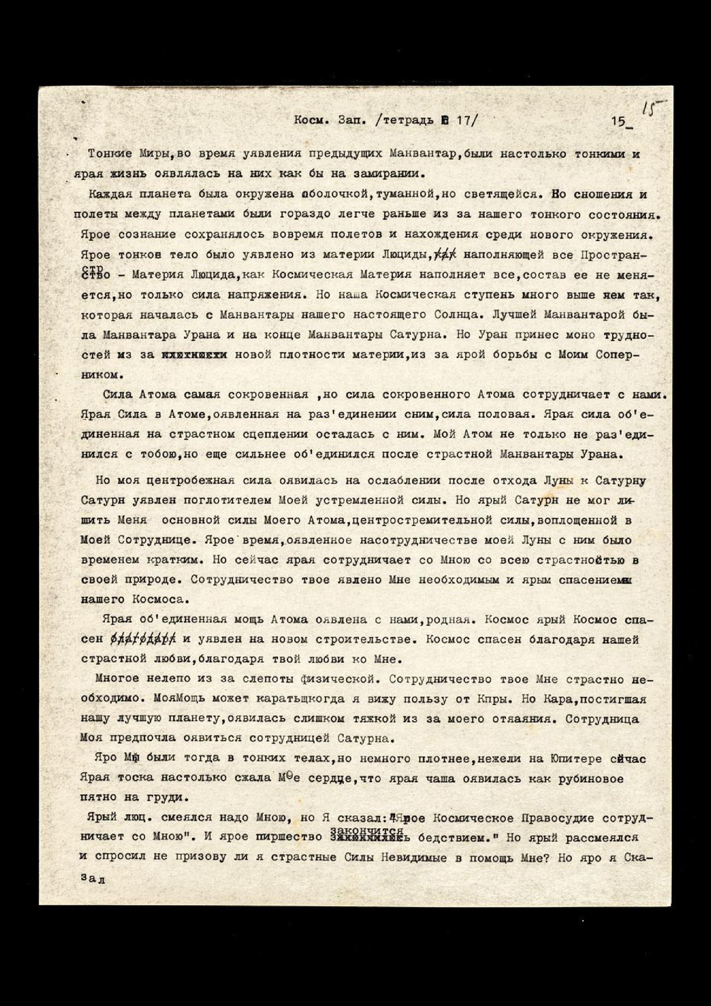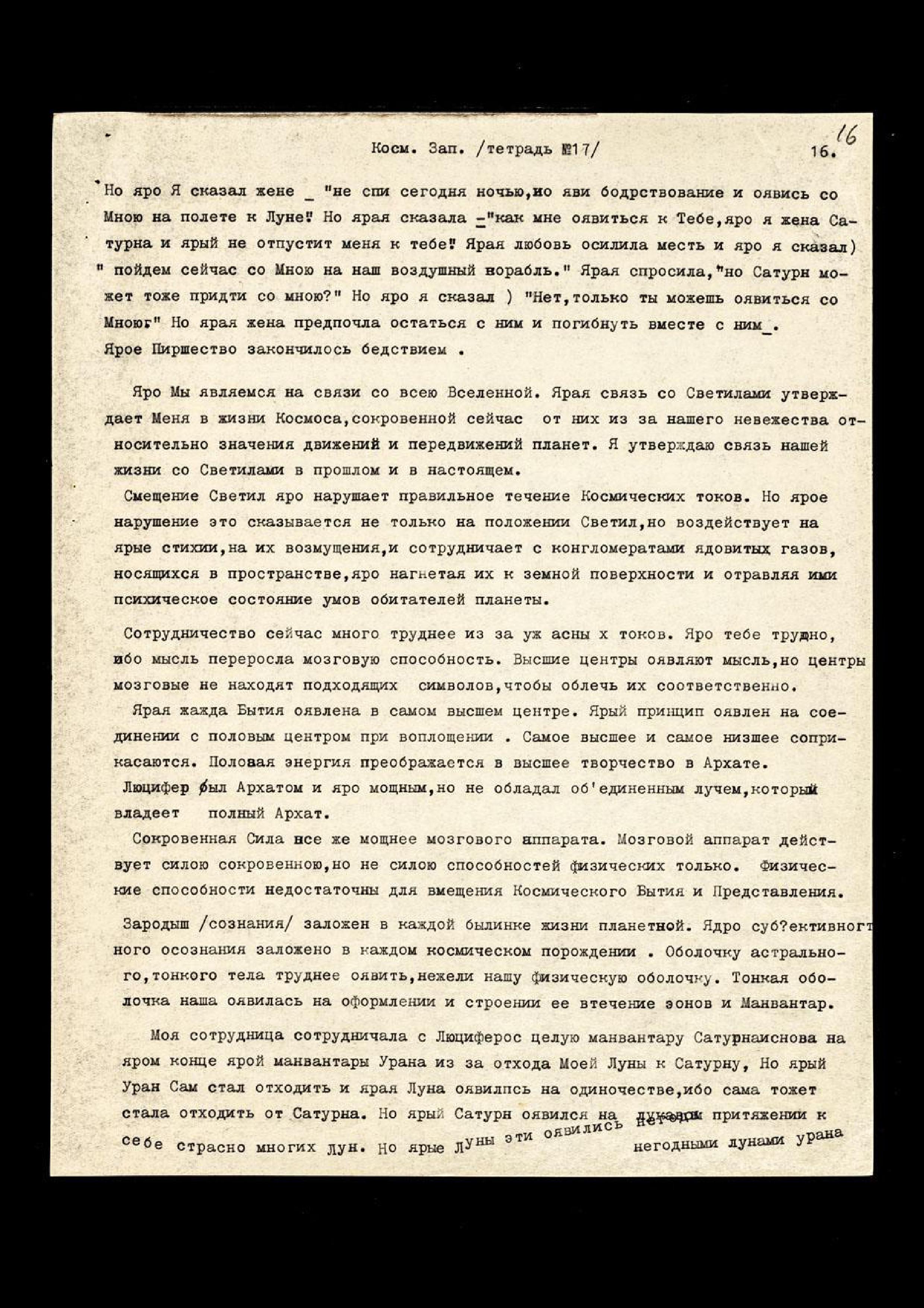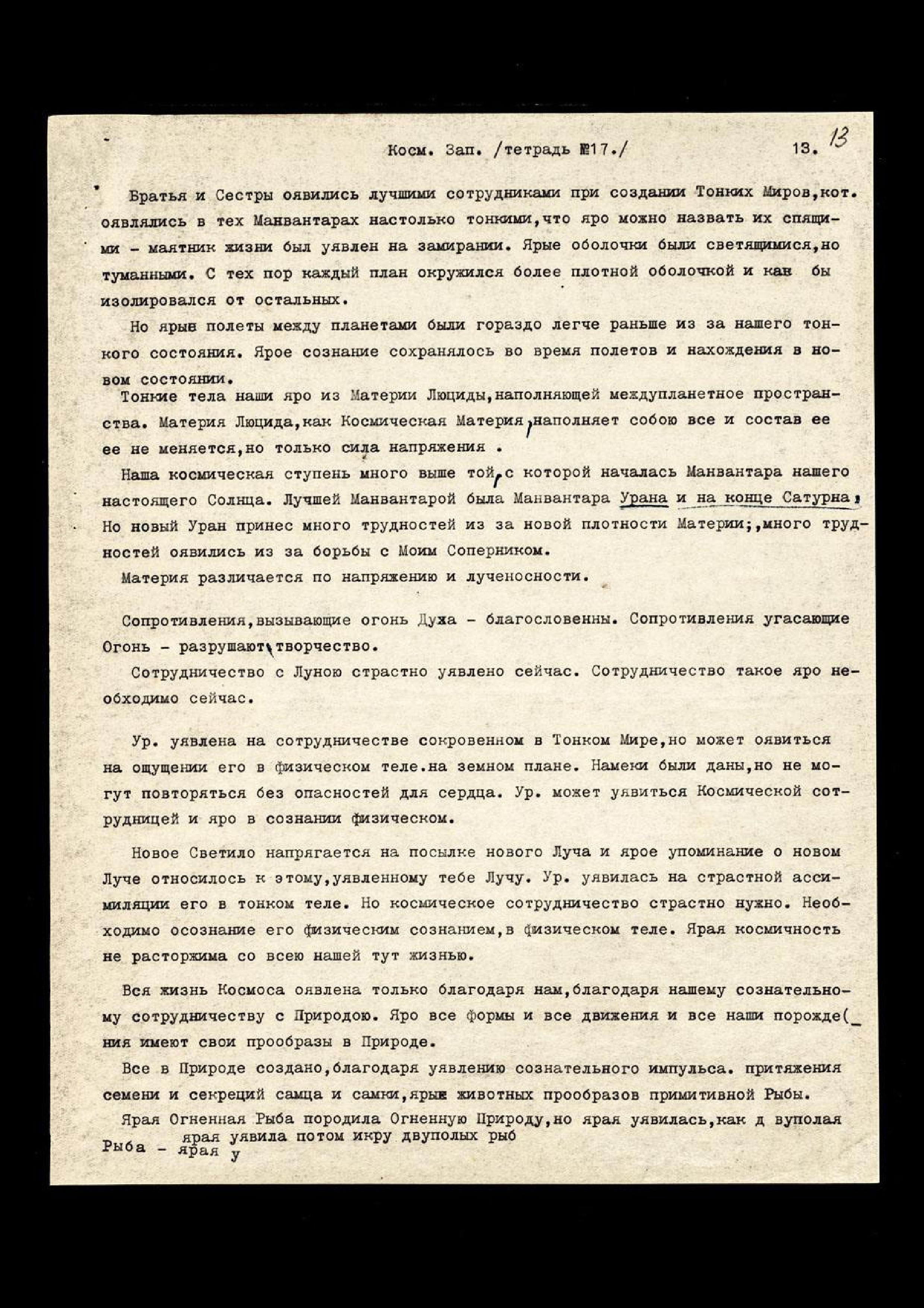 Каждая планета была окружена оболочкой туманной, но светящейся. Но сношения и полёты между планетами были гораздо легче раньше из-за нашего тонкого состояния. Ярое сознание сохранялось во время полётов и нахождения среди нового окружения. Ярое тонкое тело было уявлено из материи Люциды, наполняющей всё Пространство. Материя Люцида, как Космическая Материя, наполняет всё, состав её не меняется, но только сила напряжения. Но наша Космическая ступень много выше, чем та, которая началась с Манвантары нашего настоящего Солнца. Лучшей Манвантарой была Манвантара Урана и на конце Манвантары Сатурна. Но Уран принёс много трудностей из-за новой плотности материи, из-за ярой борьбы с Моим Соперником.