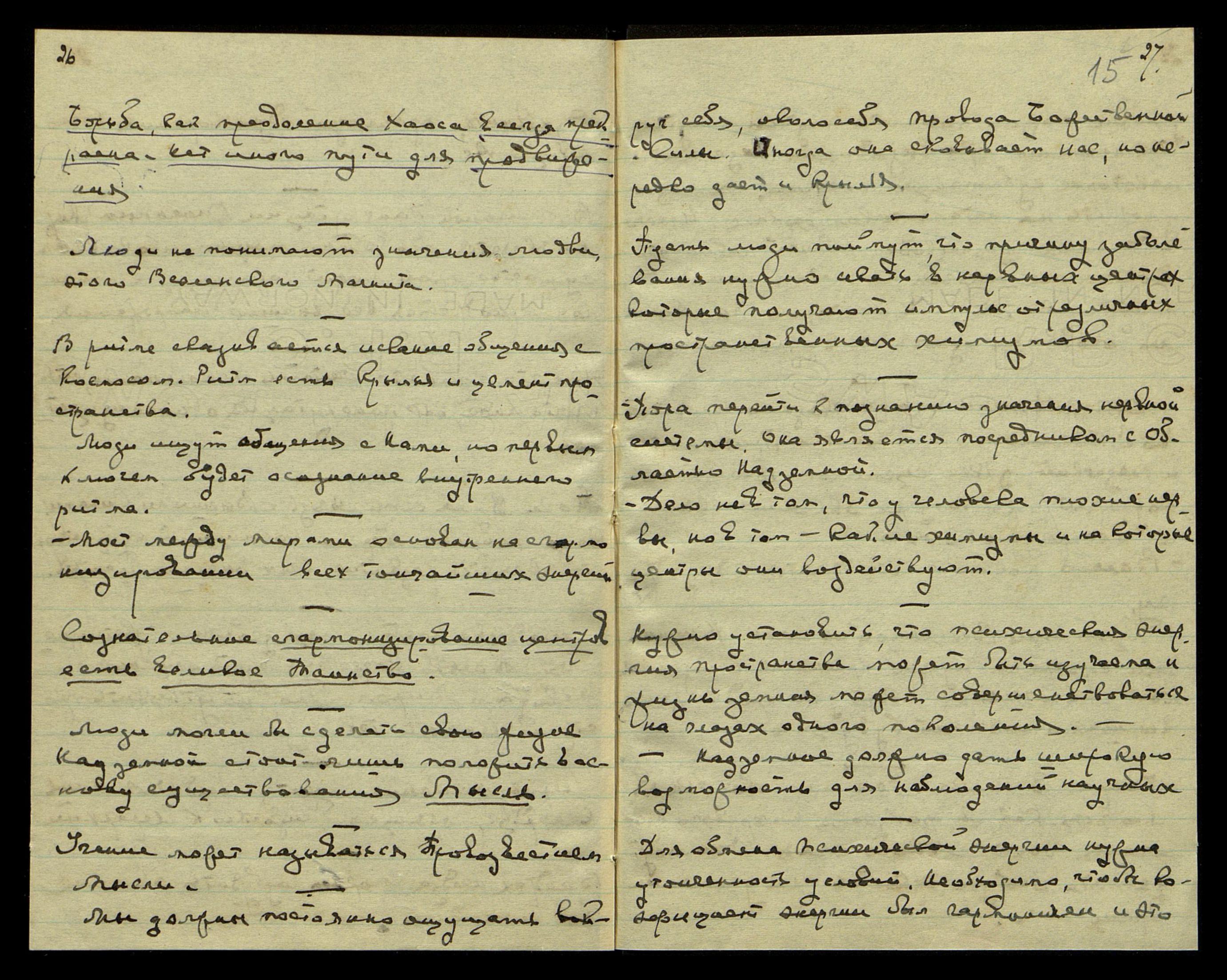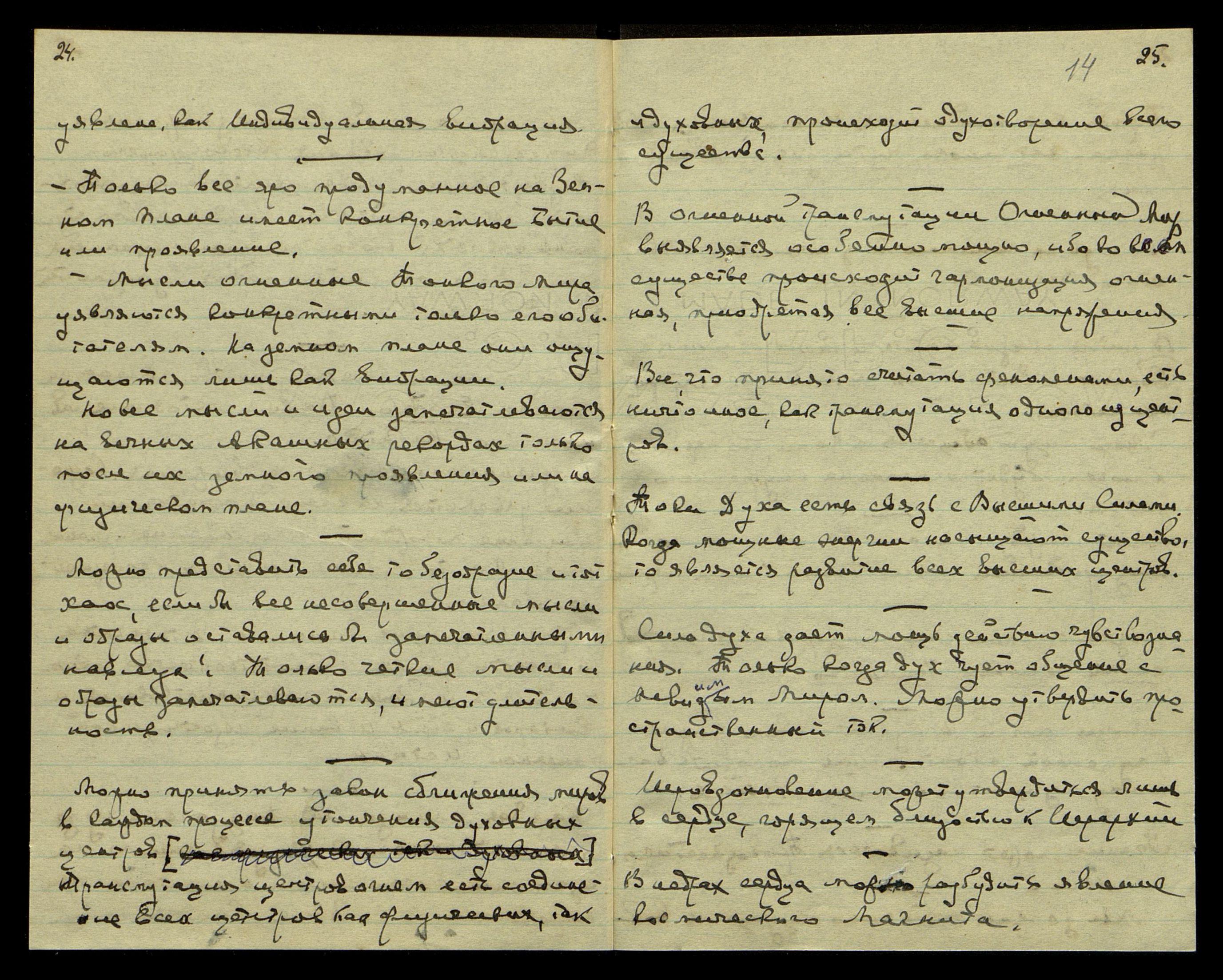 В Высших сферах свободная воля преображается в сотрудничество с Космической Мыслью... Многоразличны понимания, но весьма редко можно слышать понимание о Гармонии, в кот[орой] консолидируется мощь мысли.