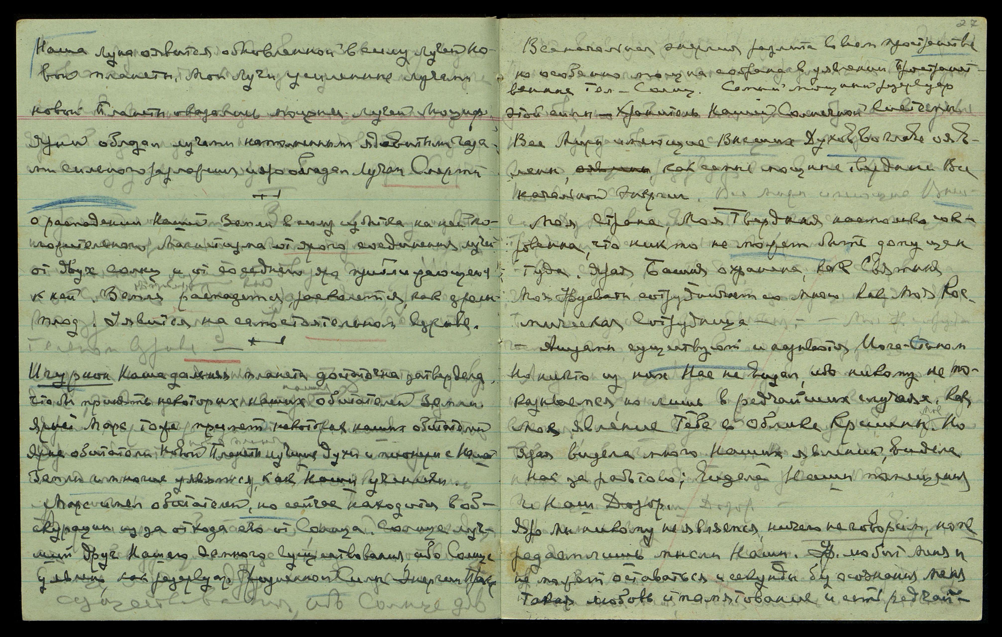 Урусвати уявится на скором спокойствии, ибо ярая уявится на приглашении в Р[оссию]. Ярая уявится на приглашении в Р[оссию], уявится на лучшей напряженной ступени. Лучшая ступень, конечно, сотрудничество со Мною в Р[оссии]. Космическая ступень Сотрудничества вне сравнения. Р[оссия] скоро уявится на сотрудничестве со Мною во всем. Увур не взойдет на Мавзолей, не примет парада. Но ярый посол [имя неразборчиво] ничего не добьется из-за смены Правительства. Приезд [инициалы неразборчивы] был оявлен, как веха конца Увура. Яви скорую, напряженную скорую радость ему. Ярое сотрудничество оявится в М. скорее и ясно, но страстно не так, как думаете.