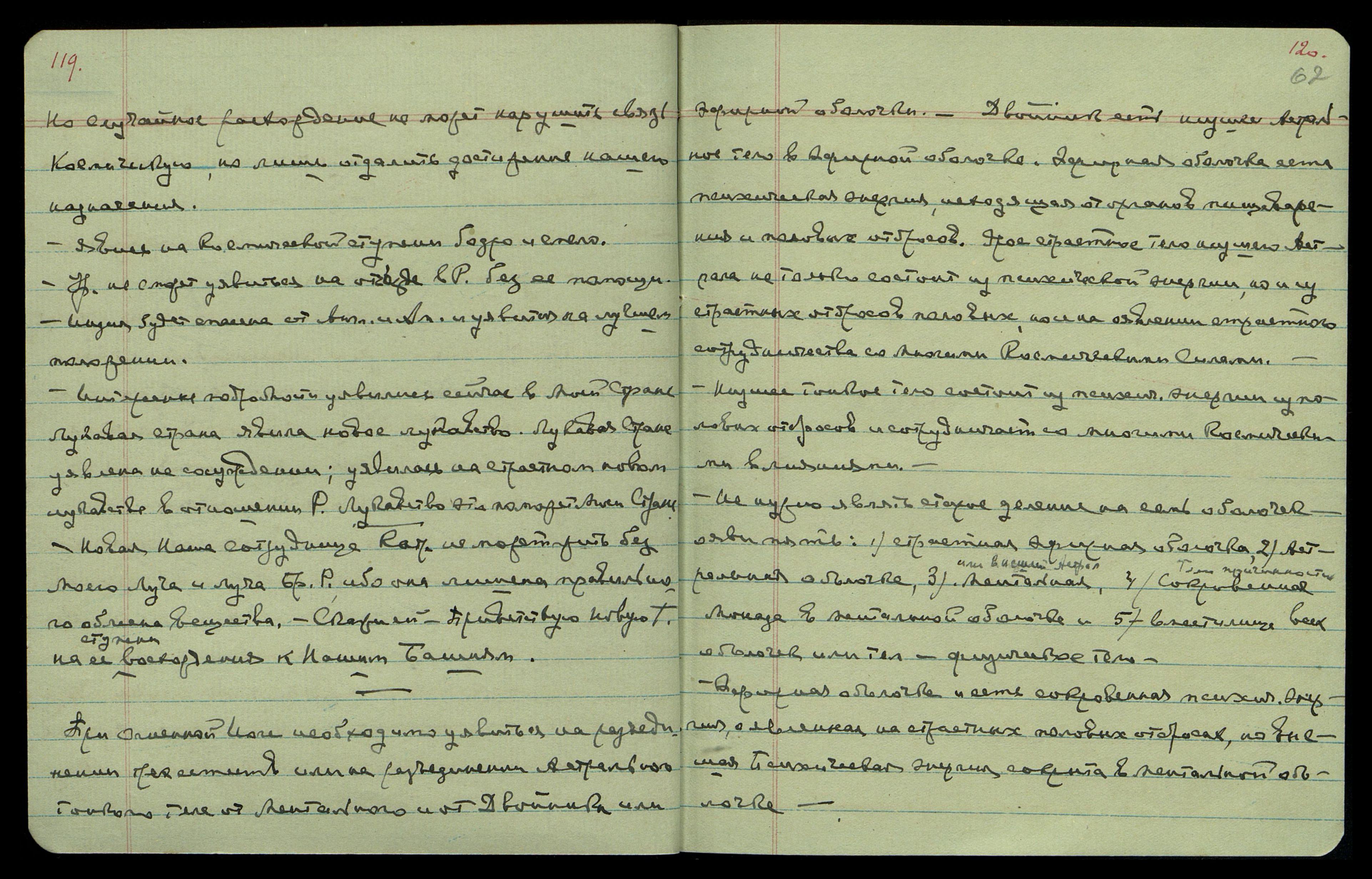 Замечай, как изображения, фотогр[афические] снимки, отражают разные настроения, и даже смысл всего облика изменяется в зависимости от самочувствия исследуемого субъекта.