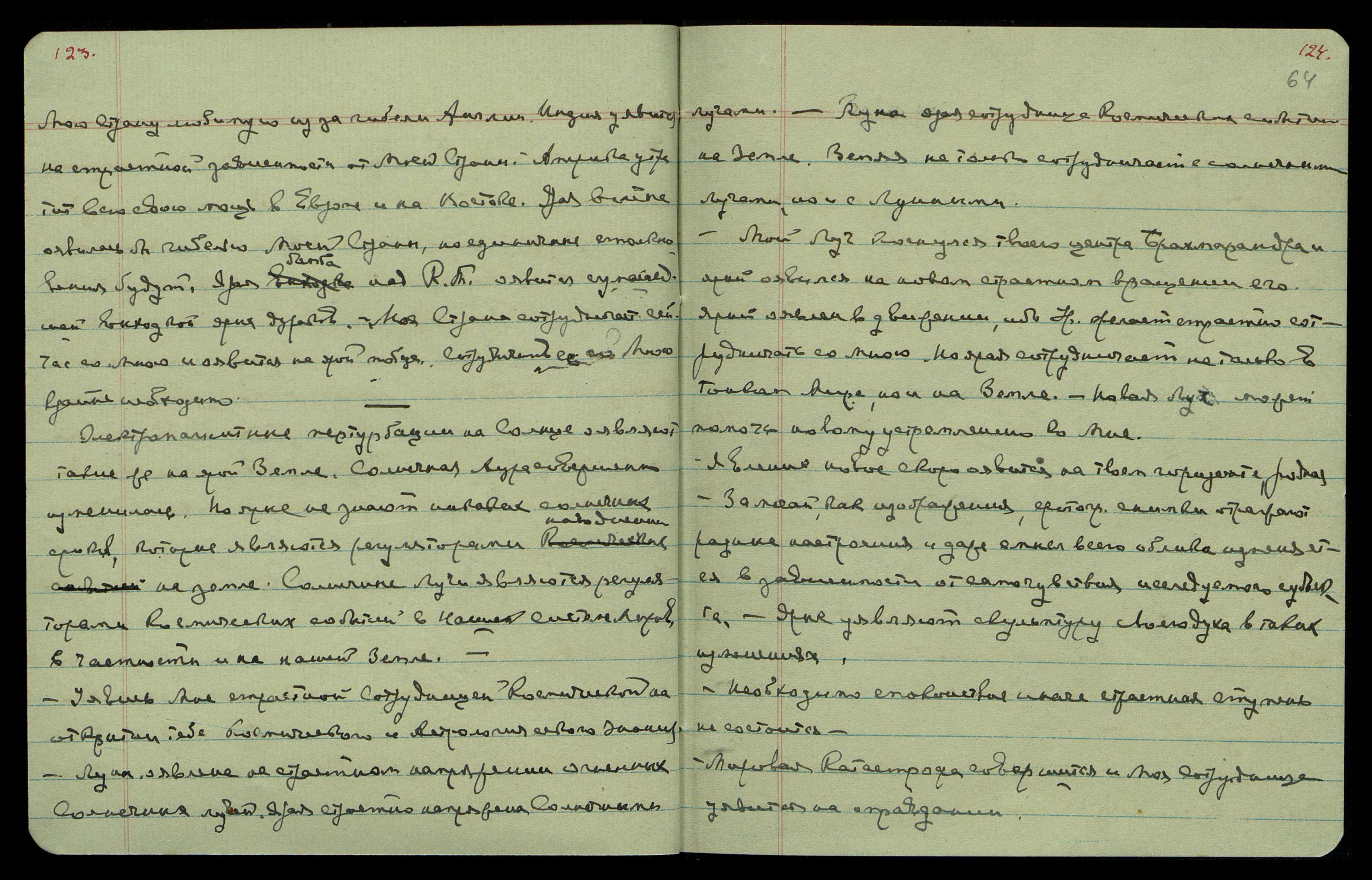 Извержение на Солнце оявит отражение его на нашей Земле, и ярая уявится на новом равновесии. Наклон оси земной оявит смены опасные. Наклон всколыхнёт всю Землю. Наклон совершится, но явно ещё не сейчас. Наклон Земной Оси − конец страстной жизни на Земле. Но наклон совершается страстно медленно и незаметно. Сила кратера оявит извержение подземного огня на Земле. Наклон Земной Оси оявится несколько позднее.