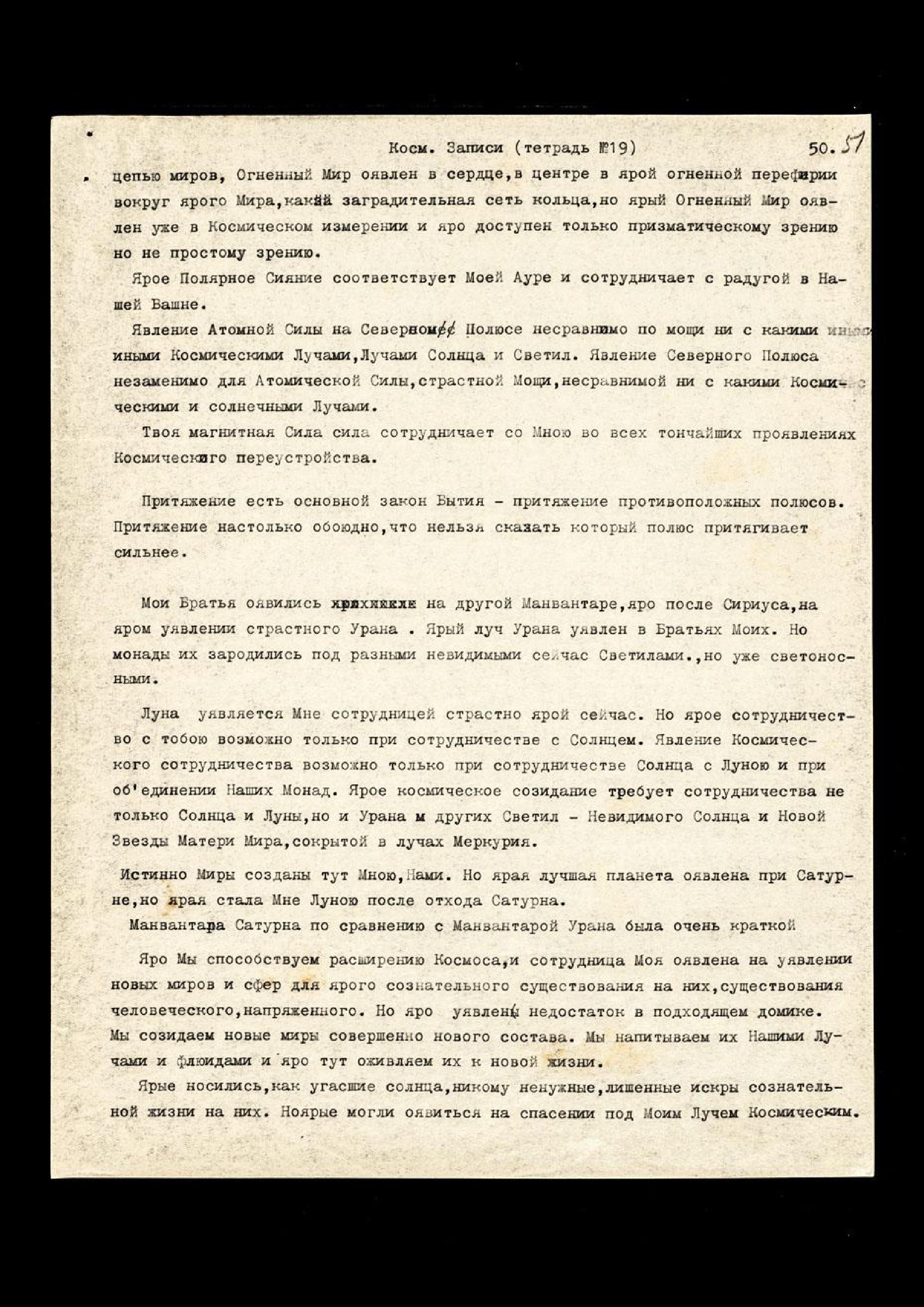 Космологические записи (тетрадь № 19).
