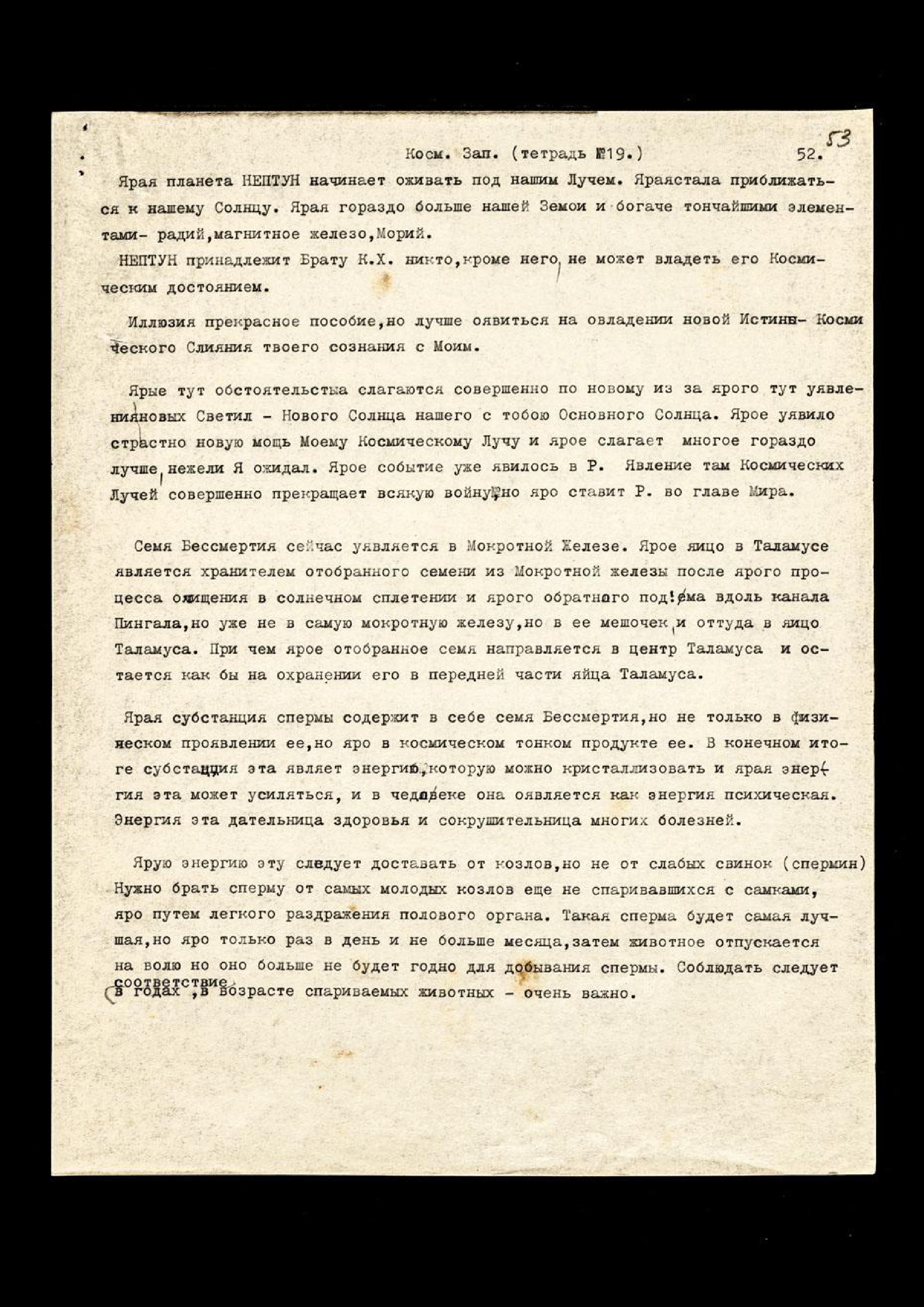 Ярая планета НЕПТУН начинает оживать под нашим Лучом. Ярая стала приближаться к нашему Солнцу. Ярая гораздо больше нашей Земли и богаче тончайшими элементами − радий, магнитное железо, Морий. НЕПТУН принадлежит Брату К[ут] Х[уми] − никто, кроме него, не может владеть его Космическим достоянием.