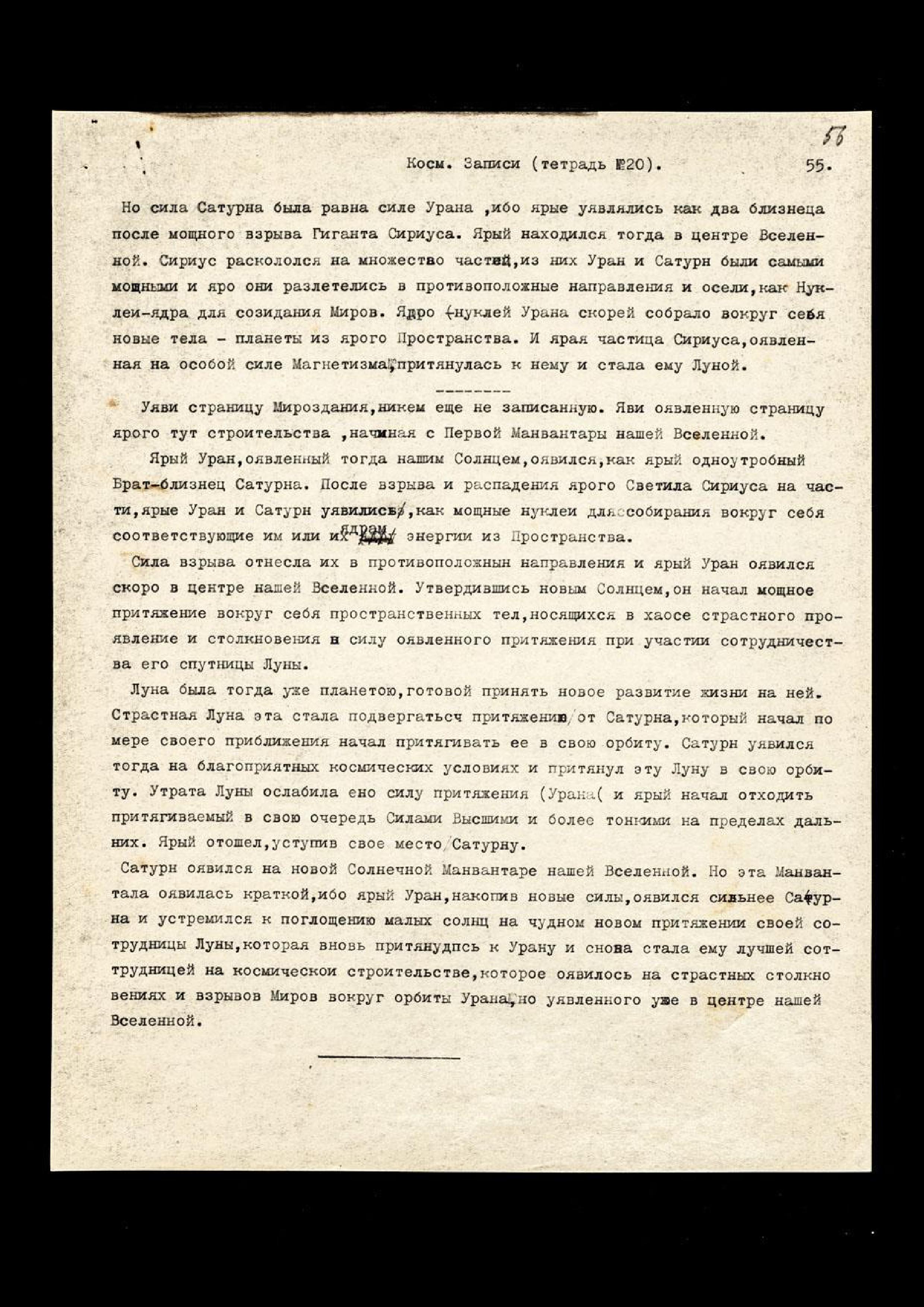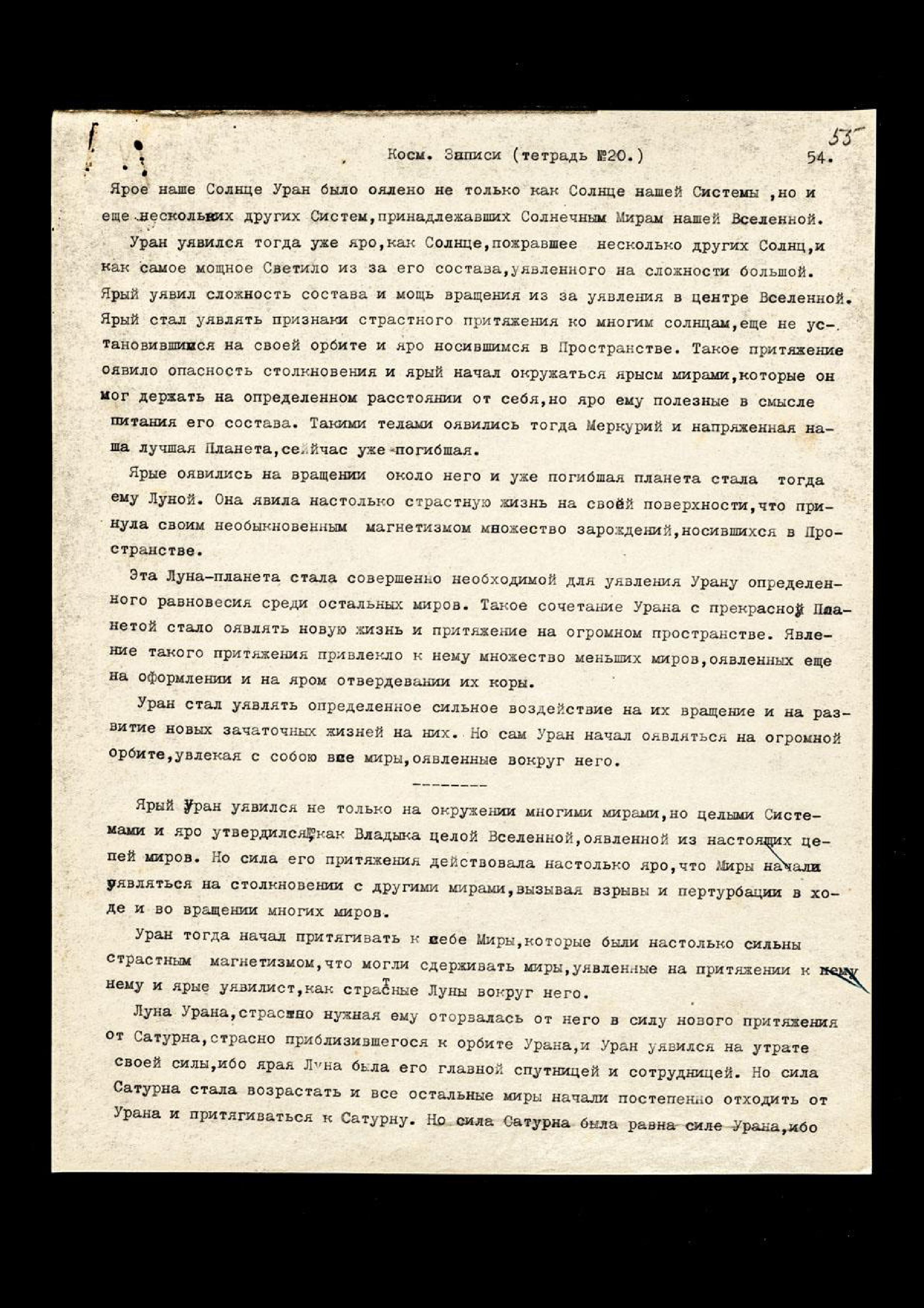 Космологические записи (тетрадь № 20).