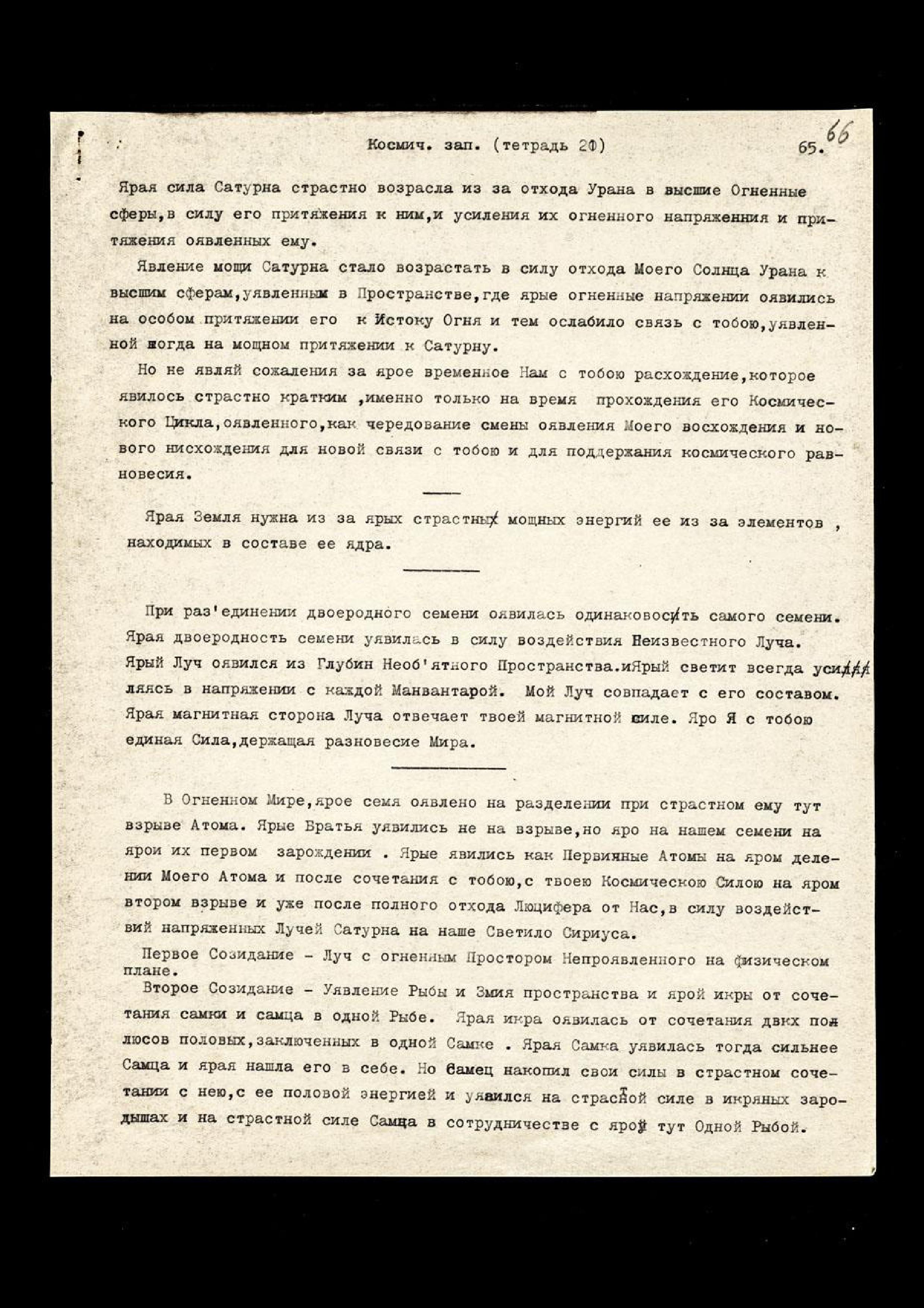 При разъединении двоеродного семени оявилась одинаковость самого семени. Ярая двоеродность семени уявилась в силу воздействия Неизвестного Луча. Ярый Луч оявился из Глубин Необъятного Пространства. И Ярый светит всегда, усиляясь в напряжении с каждой Манвантарой. Мой Луч совпадает с его составом. Ярая магнитная сторона Луча отвечает твоей магнитной силе. Яро Я с тобою — единая Сила, держащая разновесие* Мира.