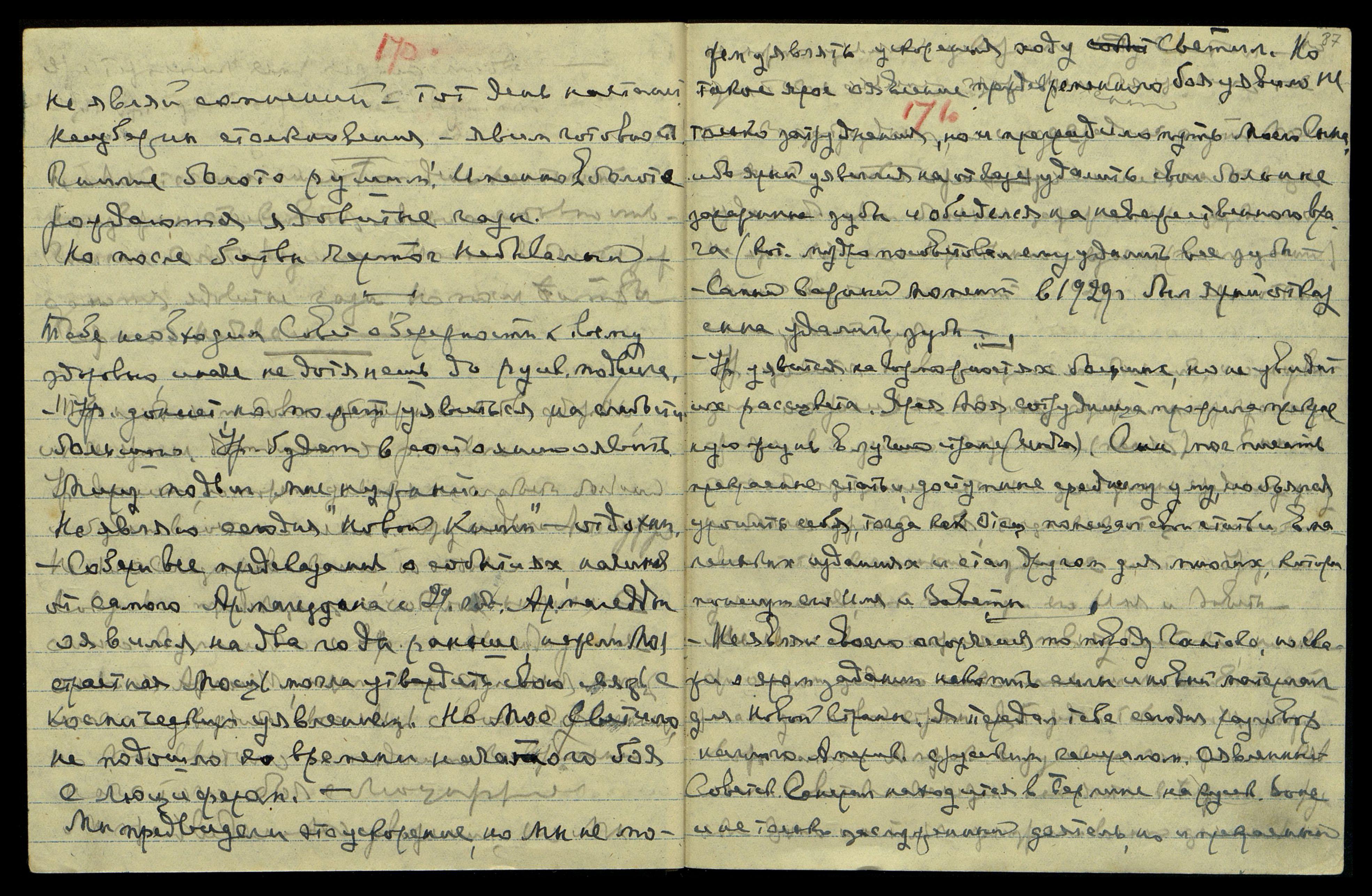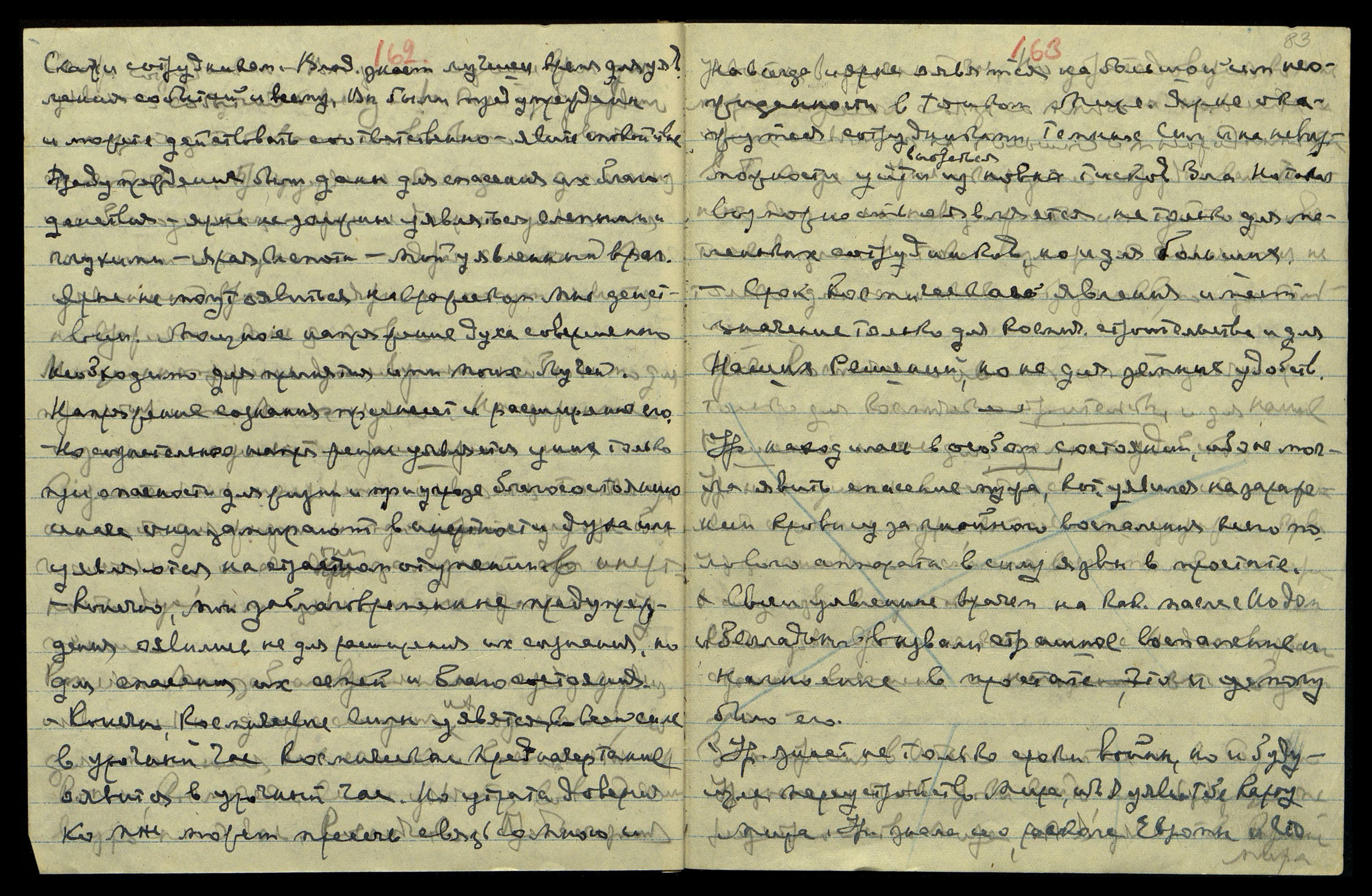 События Надземные в их земном оявлении напрягутся в страстной неожиданности для всего Мира. Ярая напряженная неожиданность оявится, как новое столкновение народов. Моя Страна уявилась на яром очищении для принятия ей новых тягостей и подвига на защиту страны. Страна Моя оявилась на более сознательном подвиге участия всех сил Страны на спасение России. Азия и [несколько слов неразборчиво] оявятся с Р[оссией] и ярая судьба ей предназначила Союз Азии. Союз Славянства тоже оявится за Р[оссию], но Сер[ия], Ит[алия], Гр[еция], Турция будут с Ам[ерикой] и Ан[глией]. Новая Страна оявится на Луче Нашем. Моя страна оявится страной оявленной на ярой победе. Страна оявится победительницей в яром столкновении с Ам[ерикой] и Ан[глией]. Новая Страна оявится, как страна самая сильная, как сокрушительная сила она явит отпор ярым армиям Ам[ерики] и Англии. Нападение оявится страстно неожиданным и провокационным.
