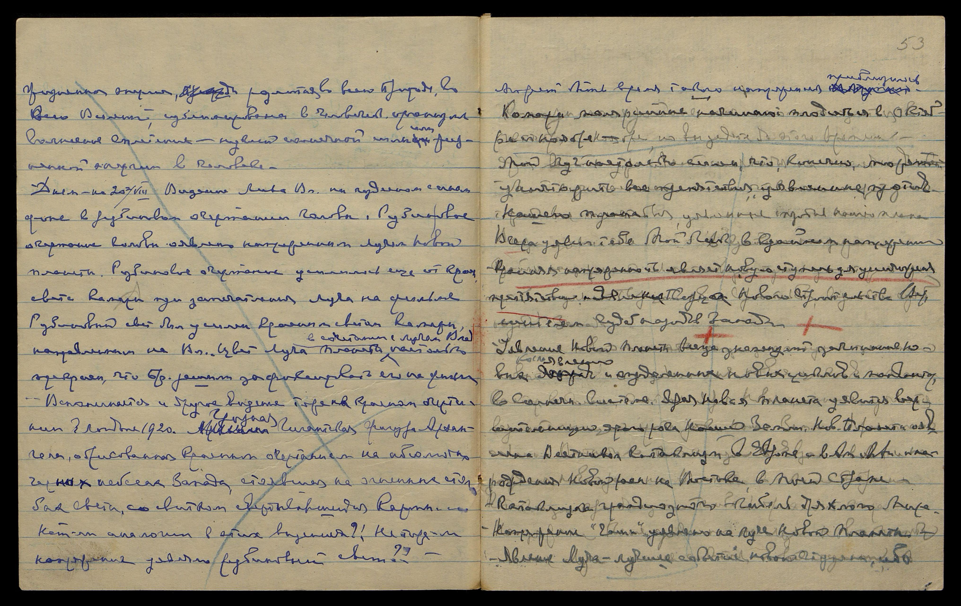 Днем на 20-е VIII. Видение Лика Вл[адыки] на чудесном синем фоне в рубиновом очертании Головы. Рубиновое очертание Головы оявлено напряженным Лучом новой планеты. Рубиновое очертание усилилось еще от красн[ого] света камеры при запечатлении Луча на фильме.