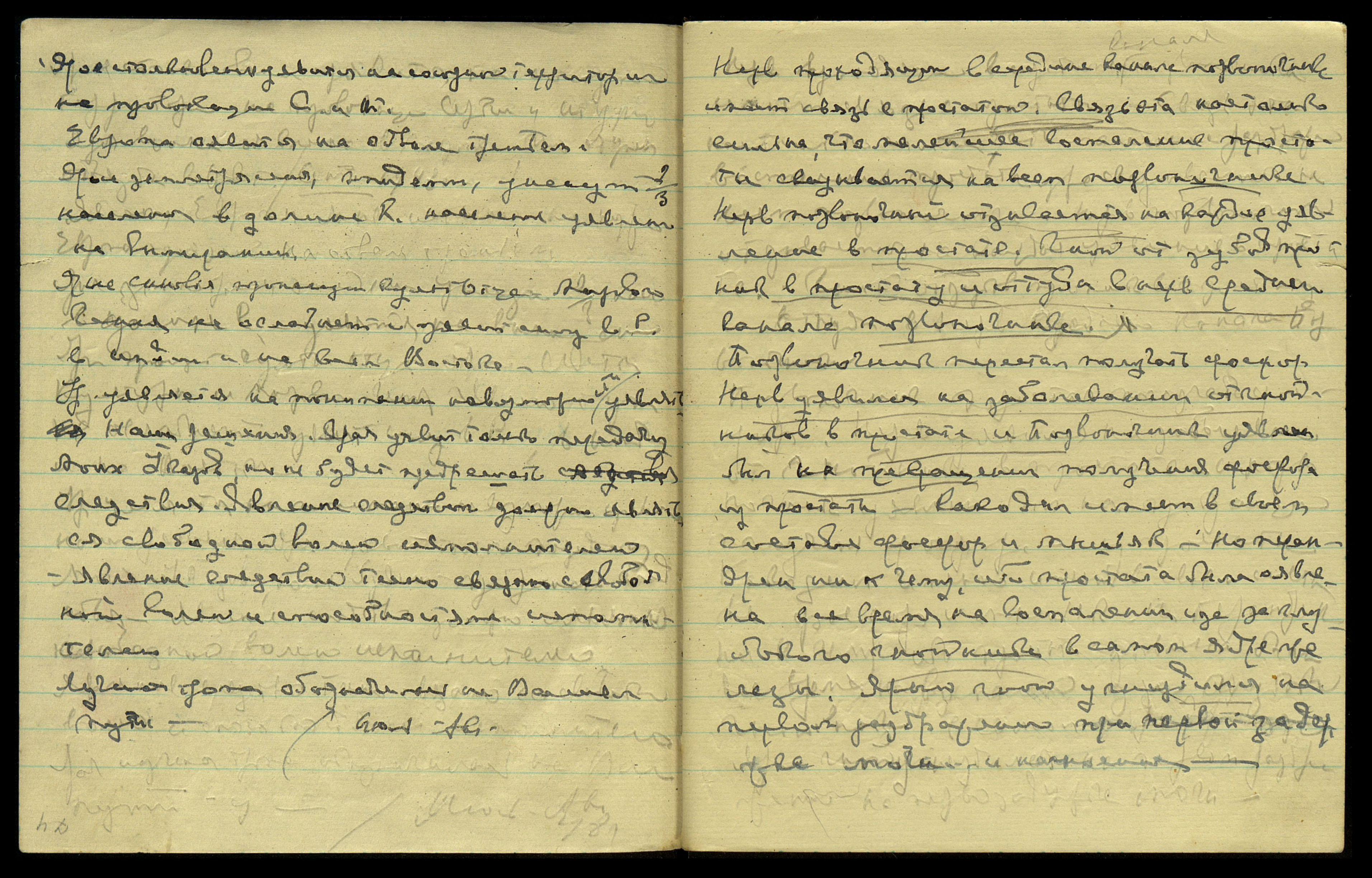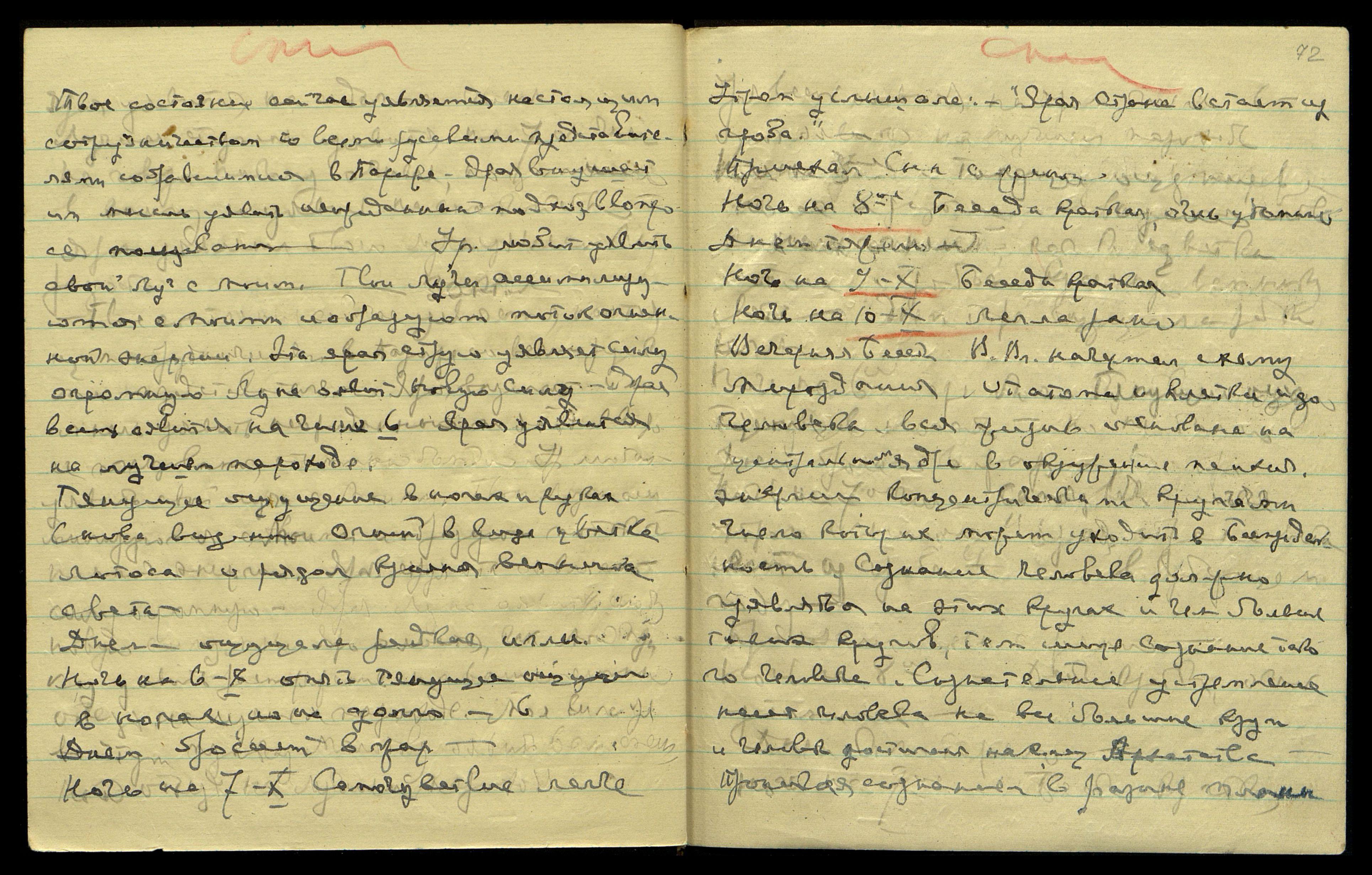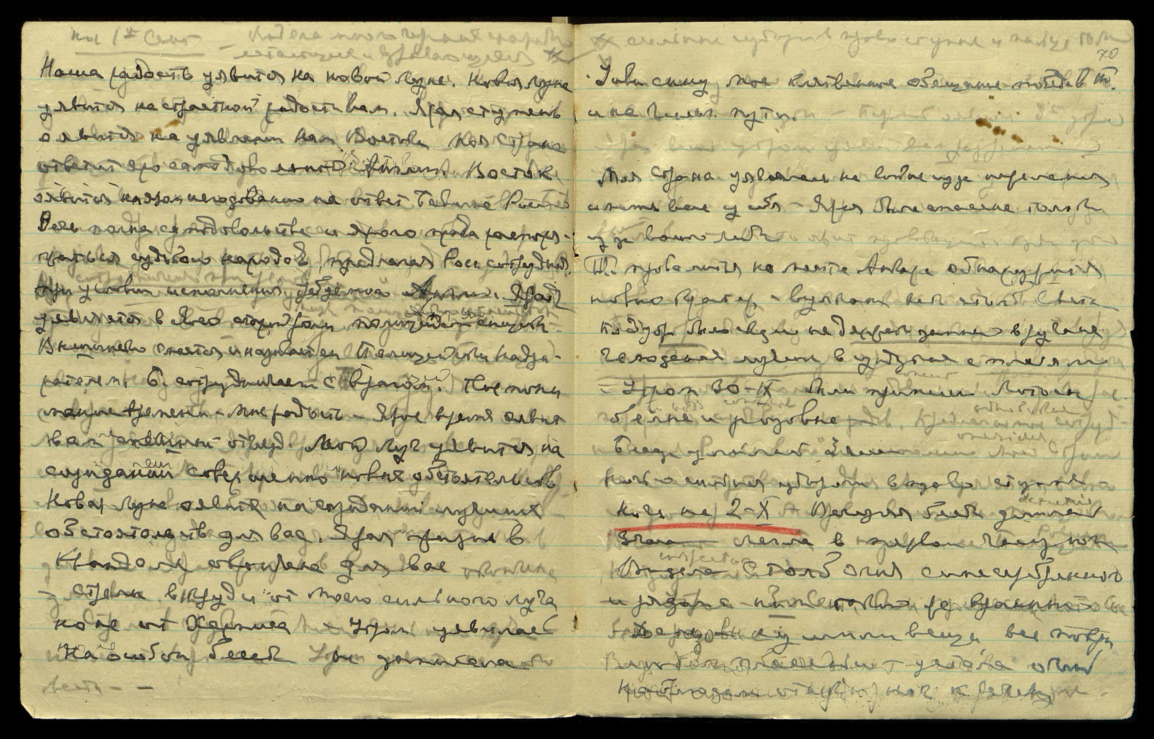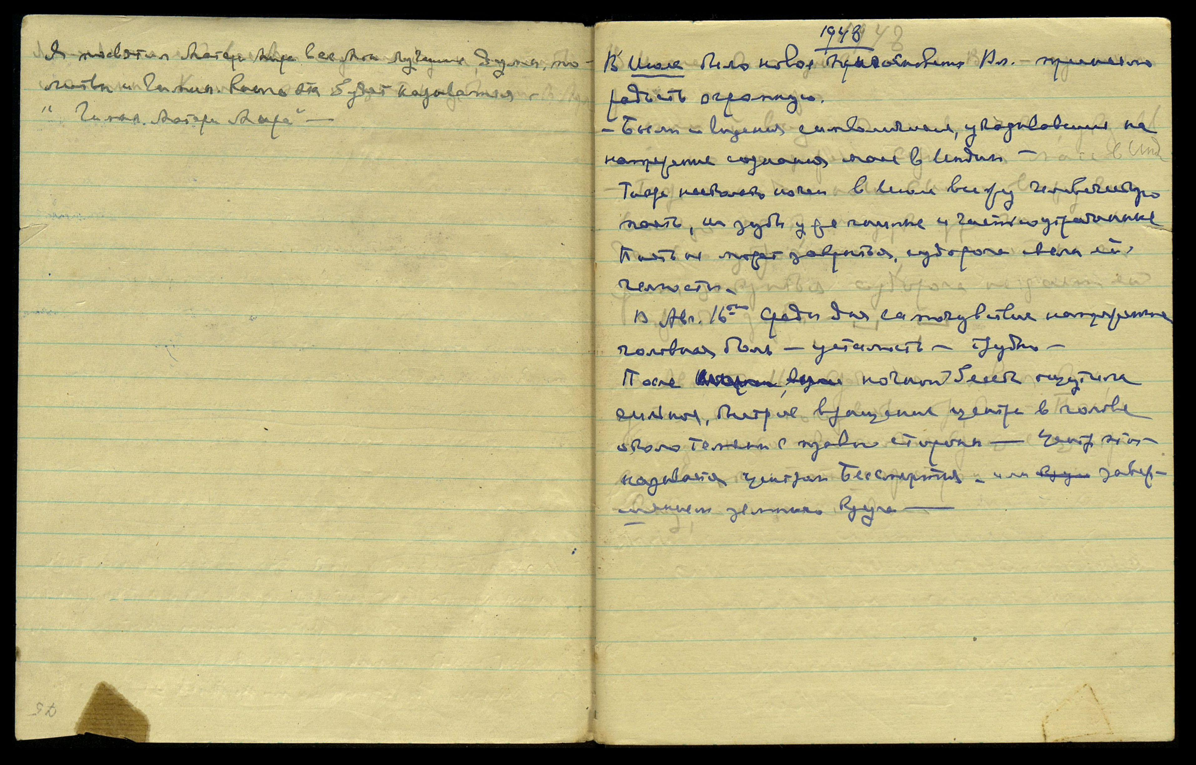 * Расшифровка скрытого текста сделана по полной записи на развороте 64 тетради № 34 (13.01.1947 - 17.10.1949) [99].