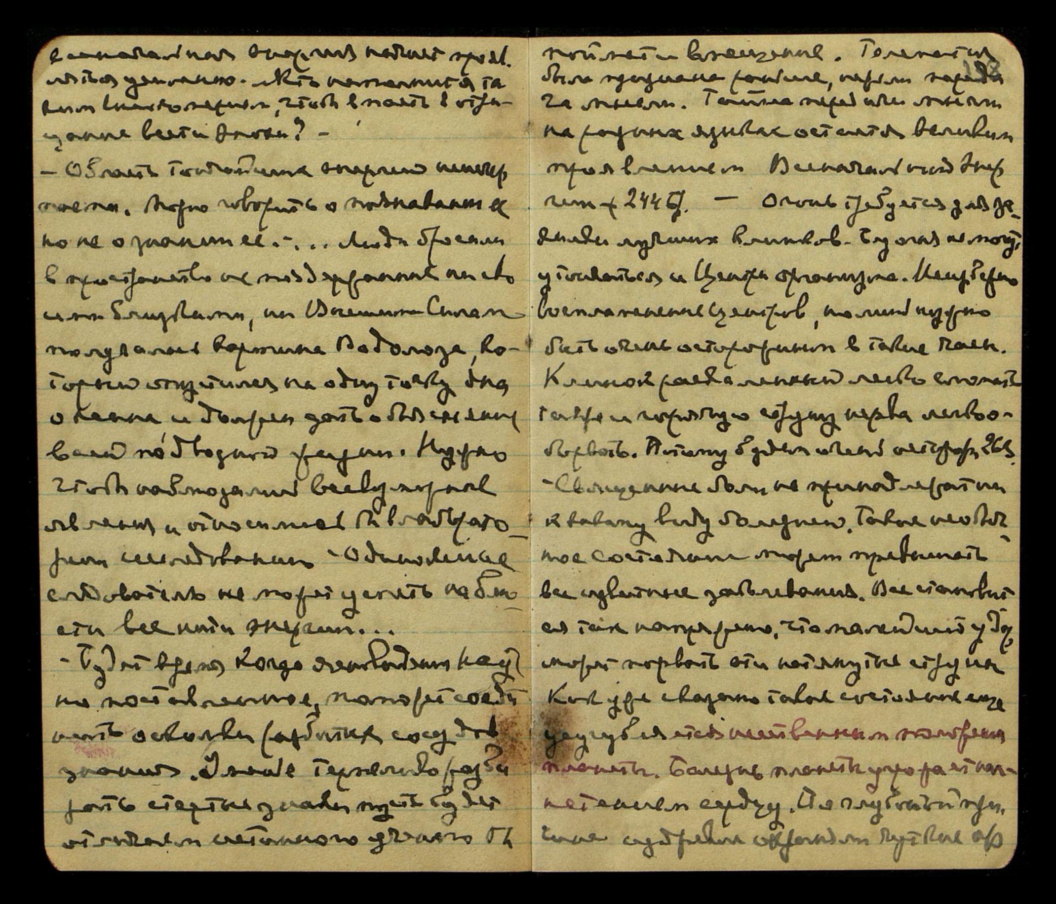 * На верхних полях разворота написано: "Нужно понять Атму как энергию пространства, очищенную непрестанным вращением. Дух и Атма содействуют, как электрон и протон. Конечно, секреции служат для самых сокровенных действий и не только само вещество, но эманации его участвуют в творчестве мира".