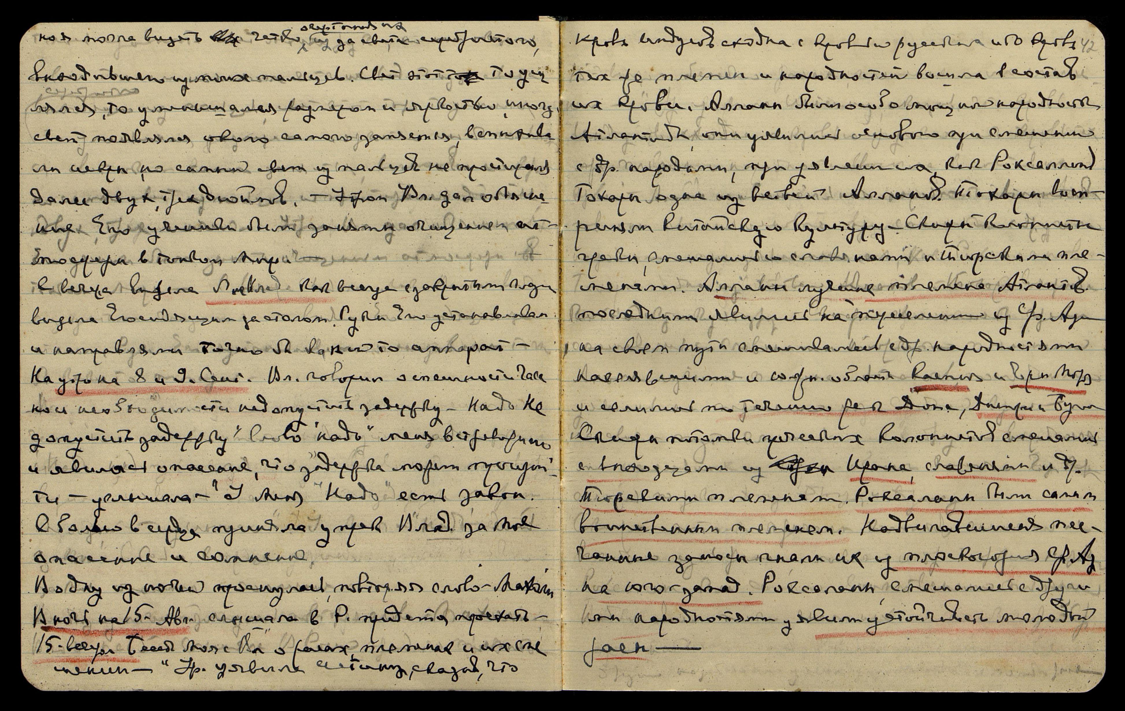 Воинственность Ам[ерики] инспирируется Англ[ией], но необходимо выявить Англ[ию] на чистую воду, ибо тогда она перепугается настолько, что вынуждена будет прекратить свою тайную поддержку Ам[ерики]. Моя Страна уявит ехидну, притаившуюся за спиной Америки. Но ярая Америка сама полна зависти и ненависти к Р[оссии] и легко пошла на ярое науськивание. Ярая Р[оссия] уявится на неслышимых и невидимых самолетах в невидимых лучах.