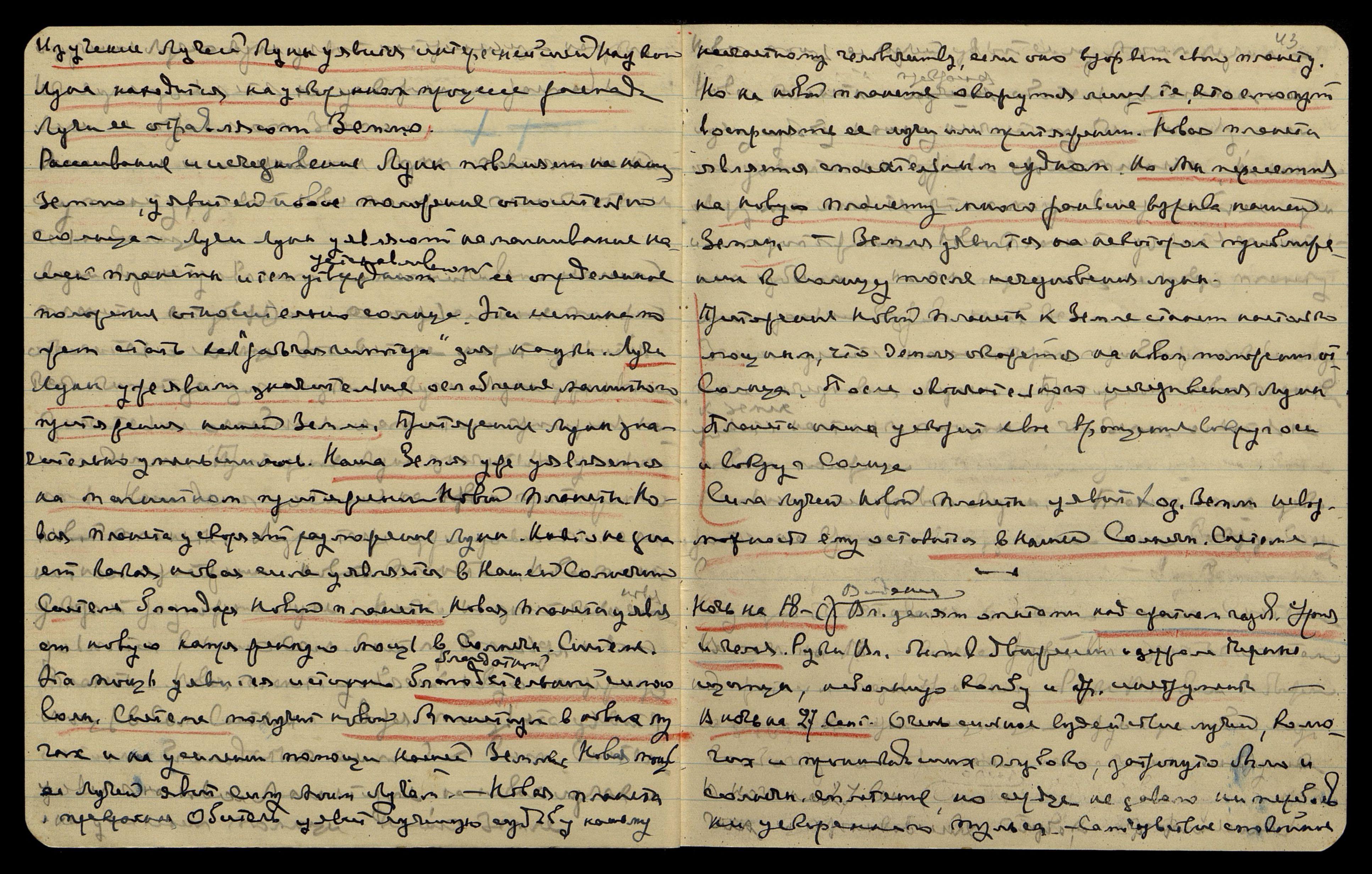 Планета, которая уявится с нашим возвращением на Р[одину], была указана в [19]24 г., с тех пор она уявилась на ускоренном приближении к Земле. Она осядет между Марсом и Венерой, и может близко подойти к нашей Земле и явиться спасательн[ым] судном в случае распада Земли. Новая Планета уявится на ускоренном вращении вокруг Солнца.