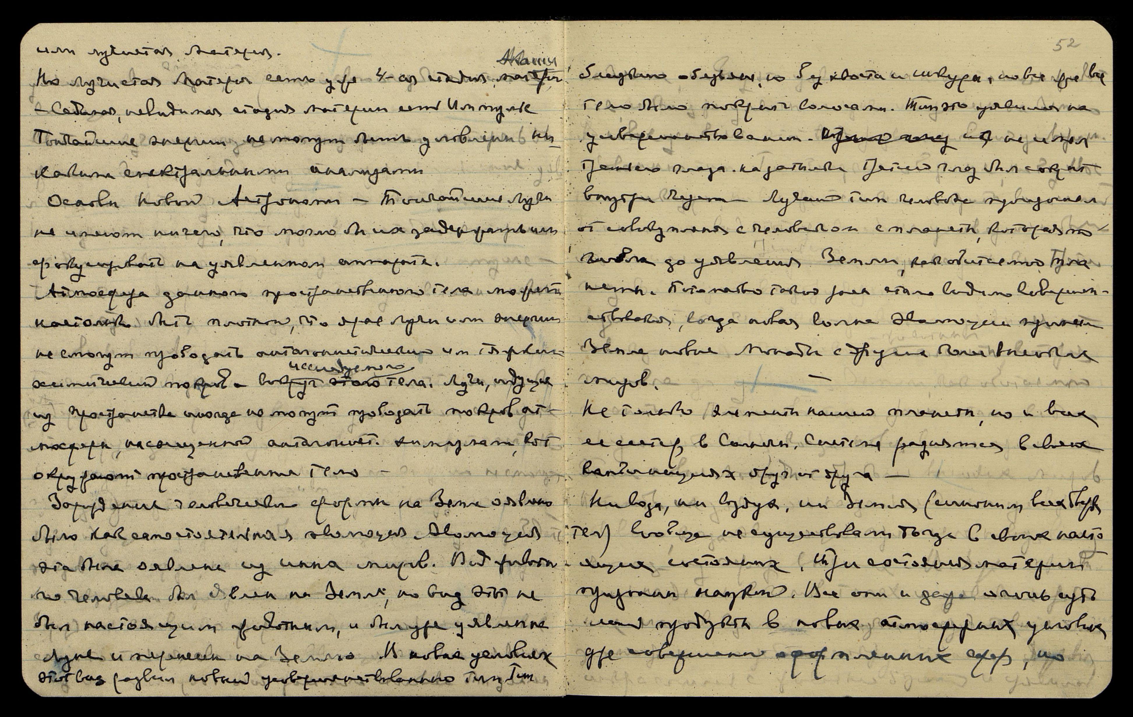 Атмосфера данного пространственного тела может настолько быть плотной, что ярые лучи или энергии не смогут прободать антагонистический им тяжкий химический покров вокруг исследуемого тела. Лучи, идущие из пространства иногда не могут прободать покров атмосферы, насыщенной антагонист[ическими] химизмами, кот[орые] окружают пространственное тело.