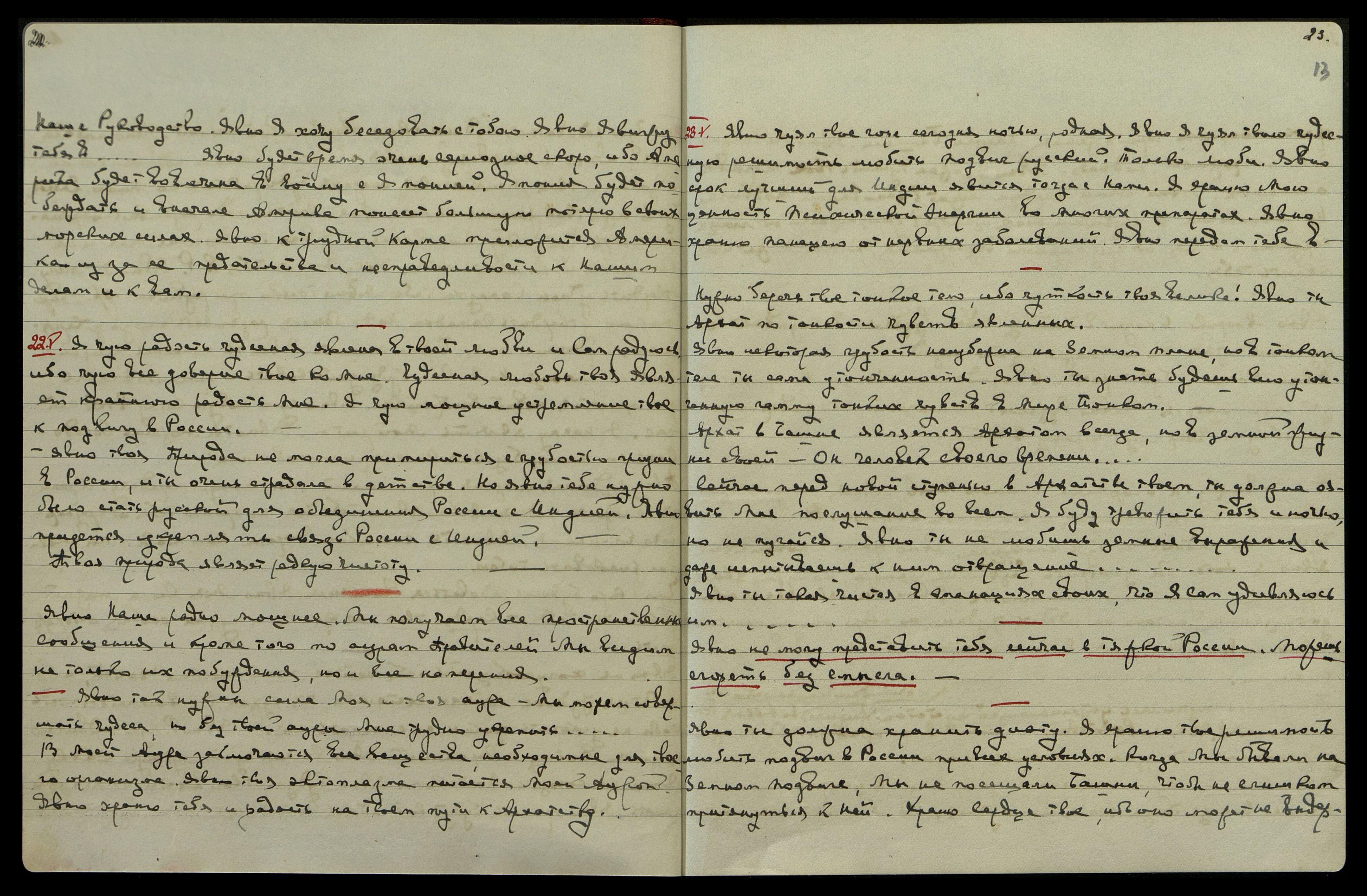 В России творится великая внутренняя революция. Россия выросла и стала требовать прав и свободу высказывать своё мнение. Без Братвы Ст[алин] не может держаться. Но русский народ скоро явит ему много трудности. Явно революция сдерживается трудным международным положением. В России будет скоро явная революция. Х[итлер] будет занят битвою с Англией и Америкой. Япония будет разбита на море и станет осторожнее и на суше.
