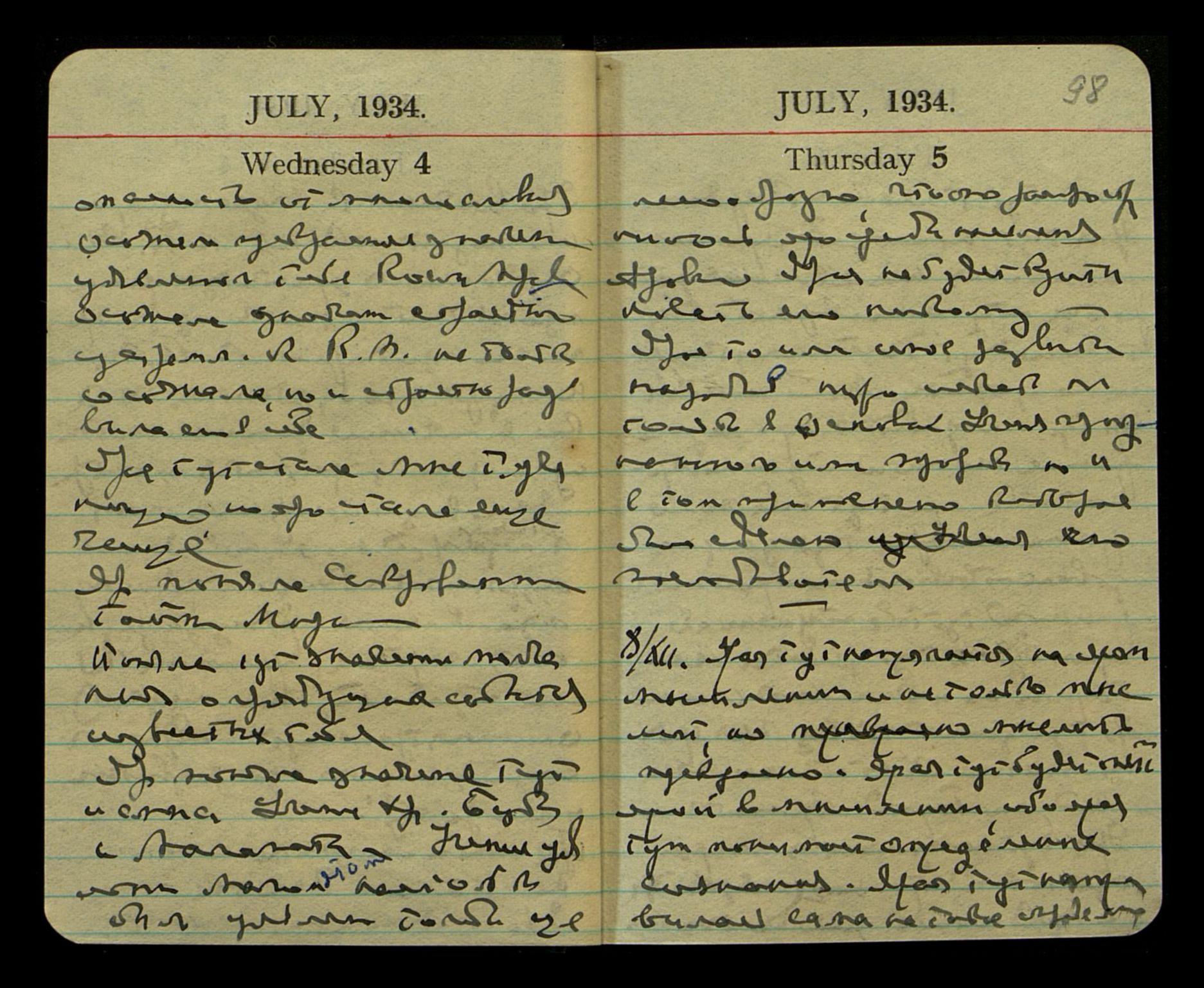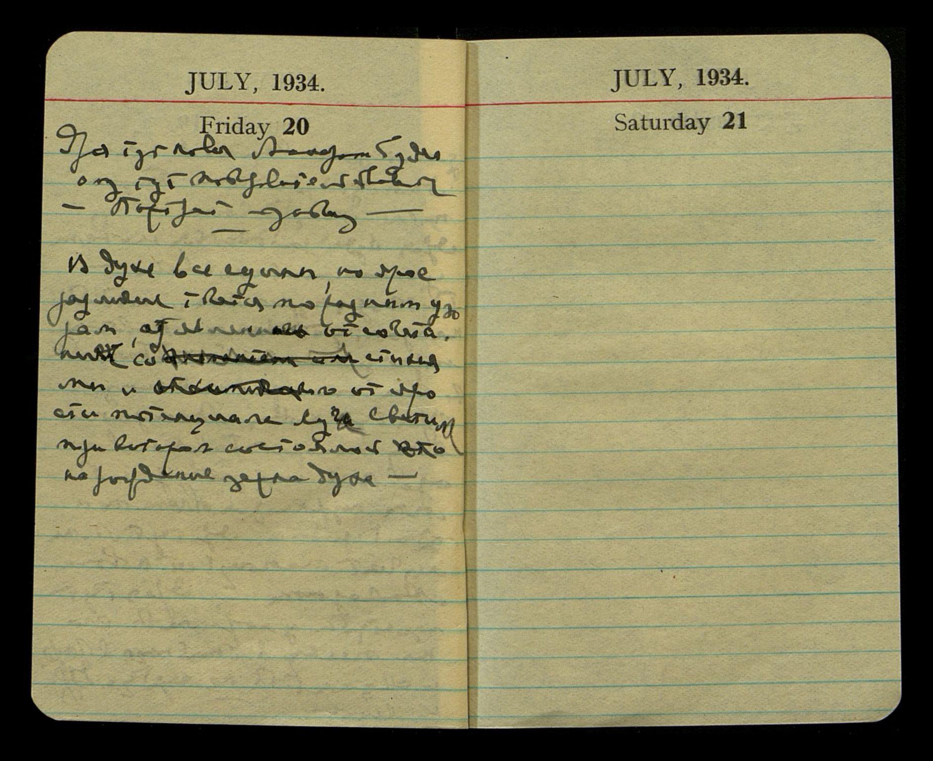 Ярая Р[оссия] напряглась на понимании тут новой ярой интриги Англ[ии] и Ам[ерики]. Р[оссия] направится теперь на новую политику с Монголией. Поможет об[ъ]единении[ю] М[онголии] Внеш[ней] с М[онголией] Внут[ренней] и [сверху строки − "[слово неразборчиво] против."] [слово неразборчиво] Единую Р. Монголию против Японии и Китая. Ярая тут определенно станет оплотом Р[оссии] на Востоке. Удр[ае] останется война с Япон[цами] и полное изгнание их из Азии.
