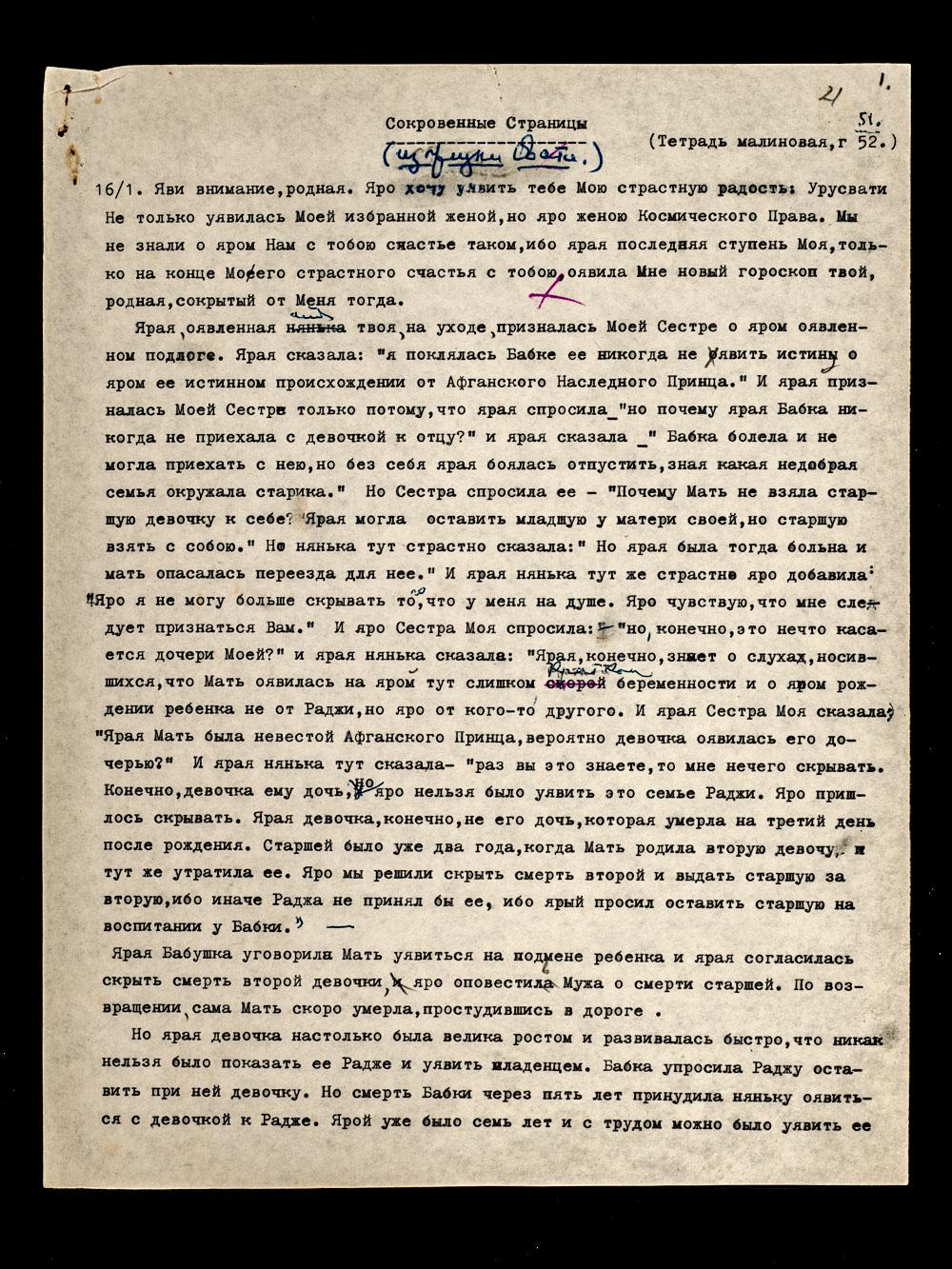 16/1. Яви внимание, родная. Яро хочу уявить тебе Мою страстную радость: Урусвати не только уявилась Моей избранной женой, но яро женою Космического Права. Мы не знали о яром Нам с тобою счастье таком, ибо ярая последняя ступень Моя, только на конце Моего страстного счастья с тобою, оявила Мне новый гороскоп твой, родная, сокрытый от Меня тогда.