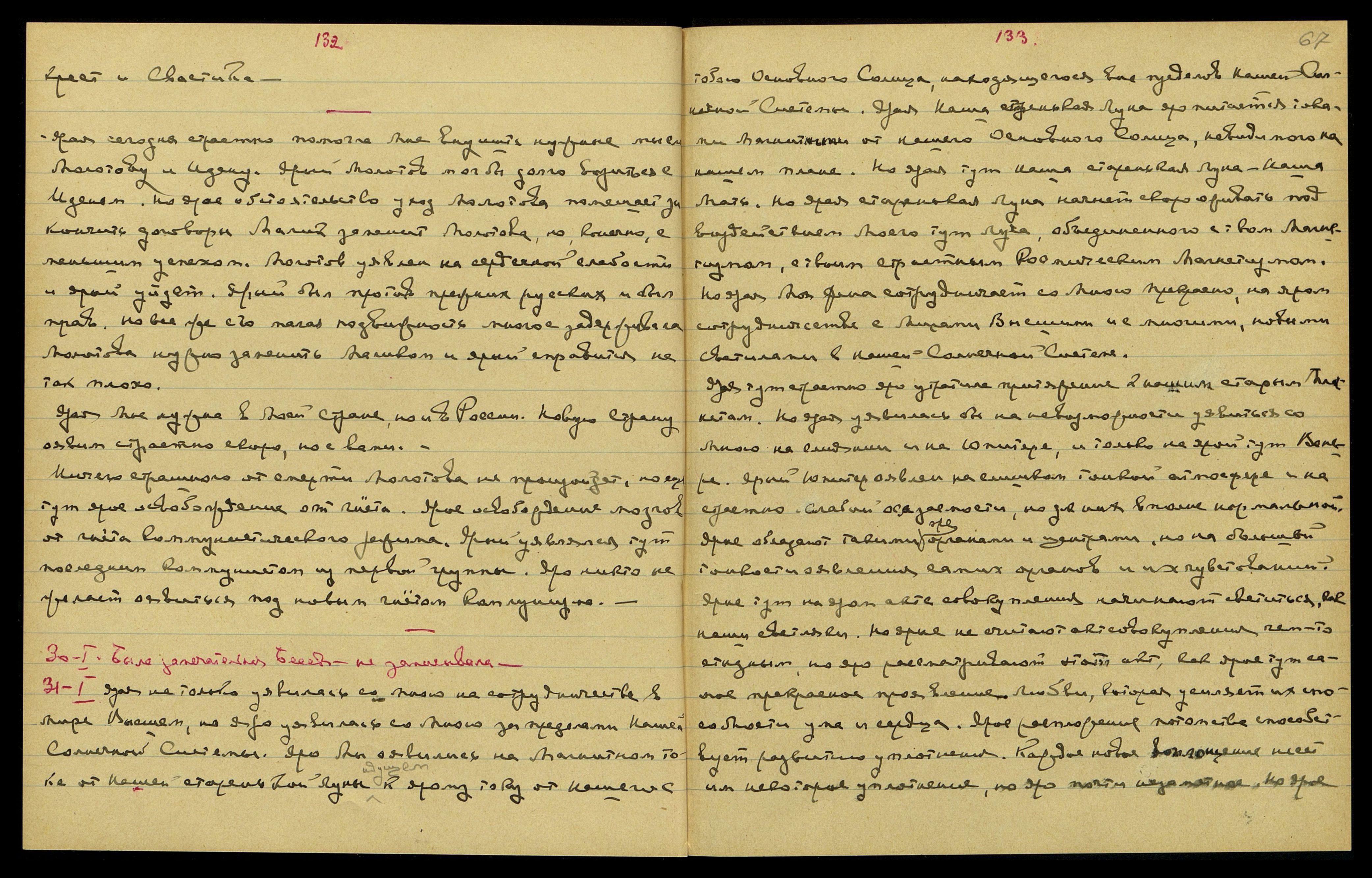 Катрин уявлена на сомнении относительно руды, но ярый П[анасенко]** откроет железную руду и скажет: земля полна железа. Ярый начнет исследовать свое место и откроет небольшую жилу. Ярая страна Америка не имеет такого необходимого металла, как железо и яро начнет исследовать почву в саду и нащупает сильную жилу около дома. Катрин скажет: «Пока молчите», − и потом мы начнем разрабатывать эту руду. Но ярые инженеры начнут ярые исследования по соседству и яро найдут