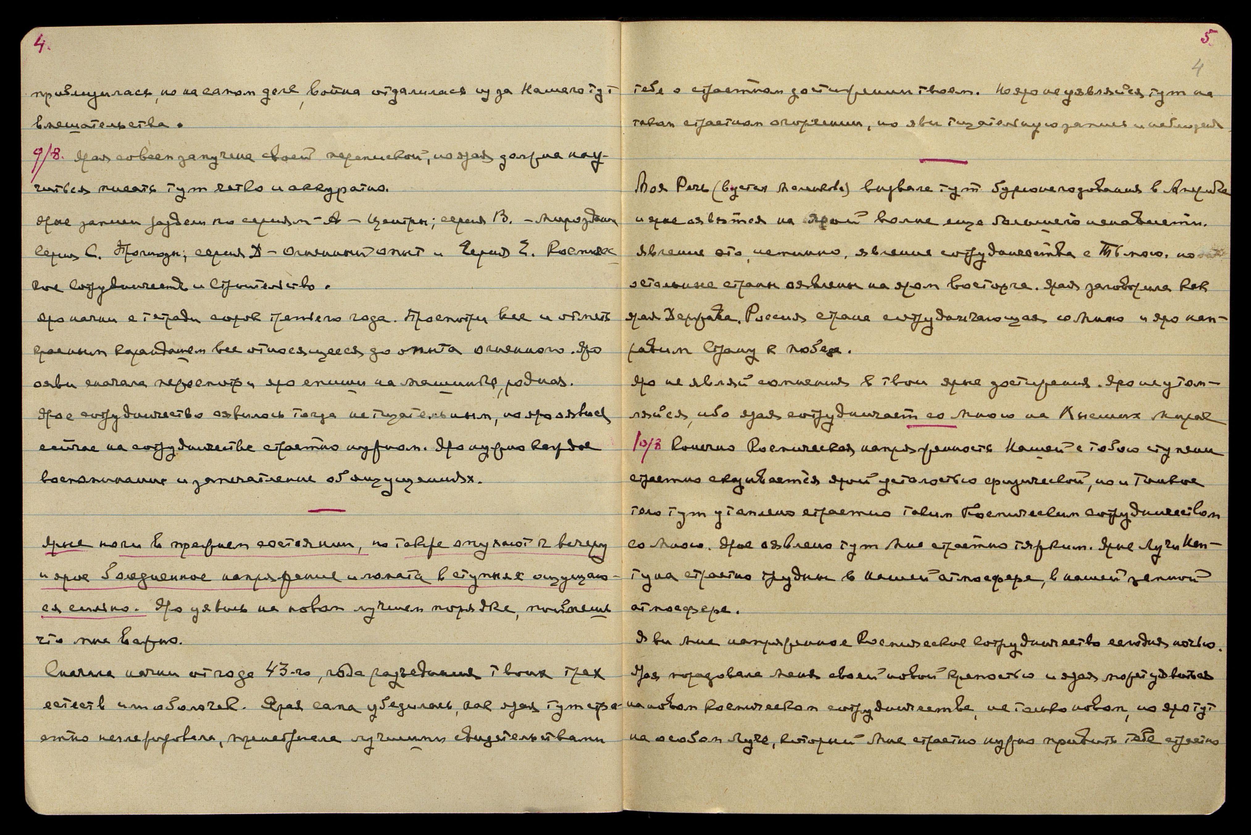 Яро начни с тетради сорок третьего года. Просмотри все и отметь красным карандашом все относящееся до опыта огненного. Яро ояви сначала пересмотр и яро спиши на машинке, родная.