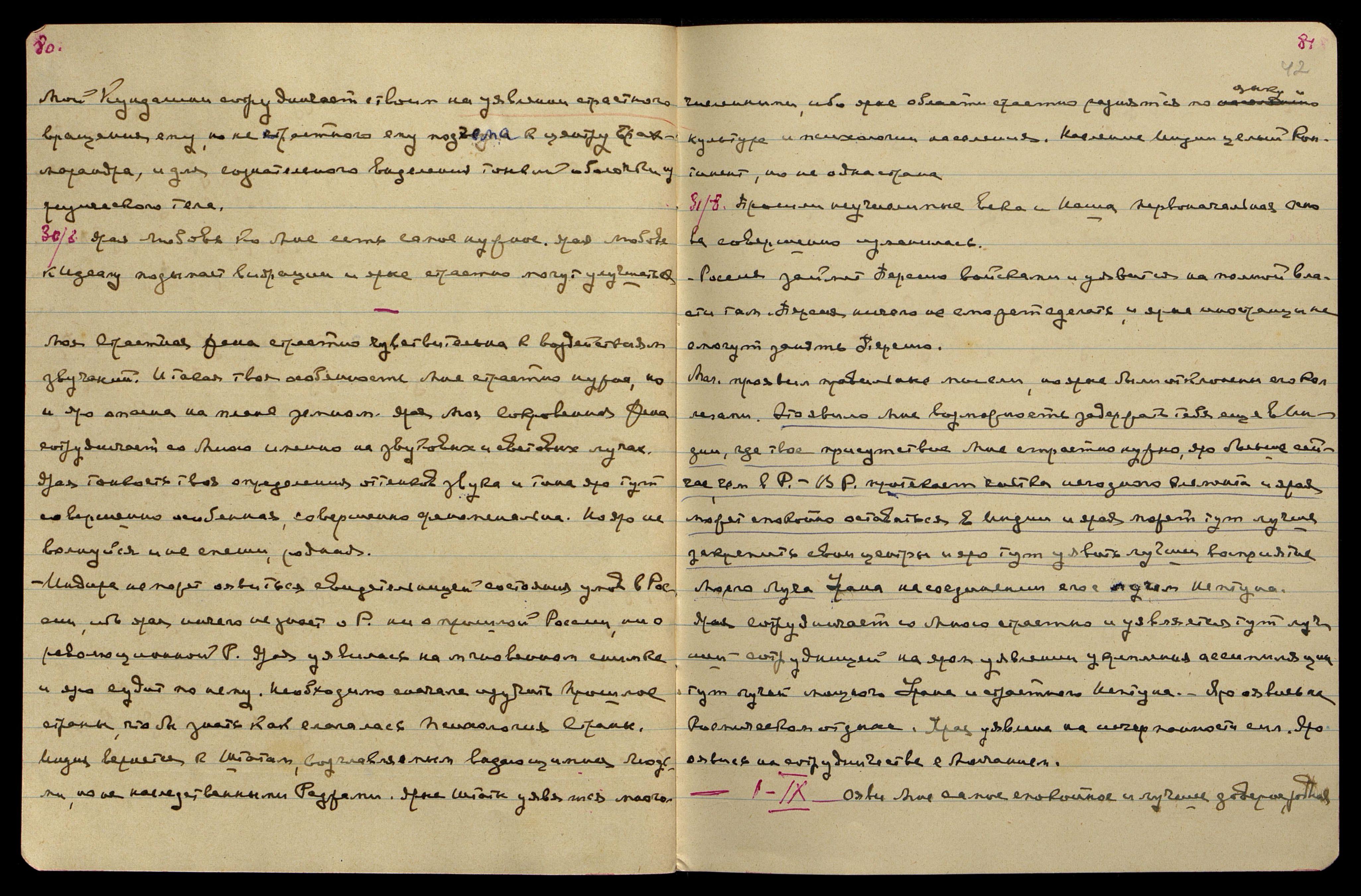 Индира не может оявиться свидетельницей состояния умов в России, ибо ярая ничего не знает о Р[оссии], ни о прошлой России, ни о революционной Р[оссии]. Ярая уявилась на мгновенном снимке и яро судит по нему. Необходимо сначала изучить прошлое страны, чтобы знать, как слагалась Психология Страны.