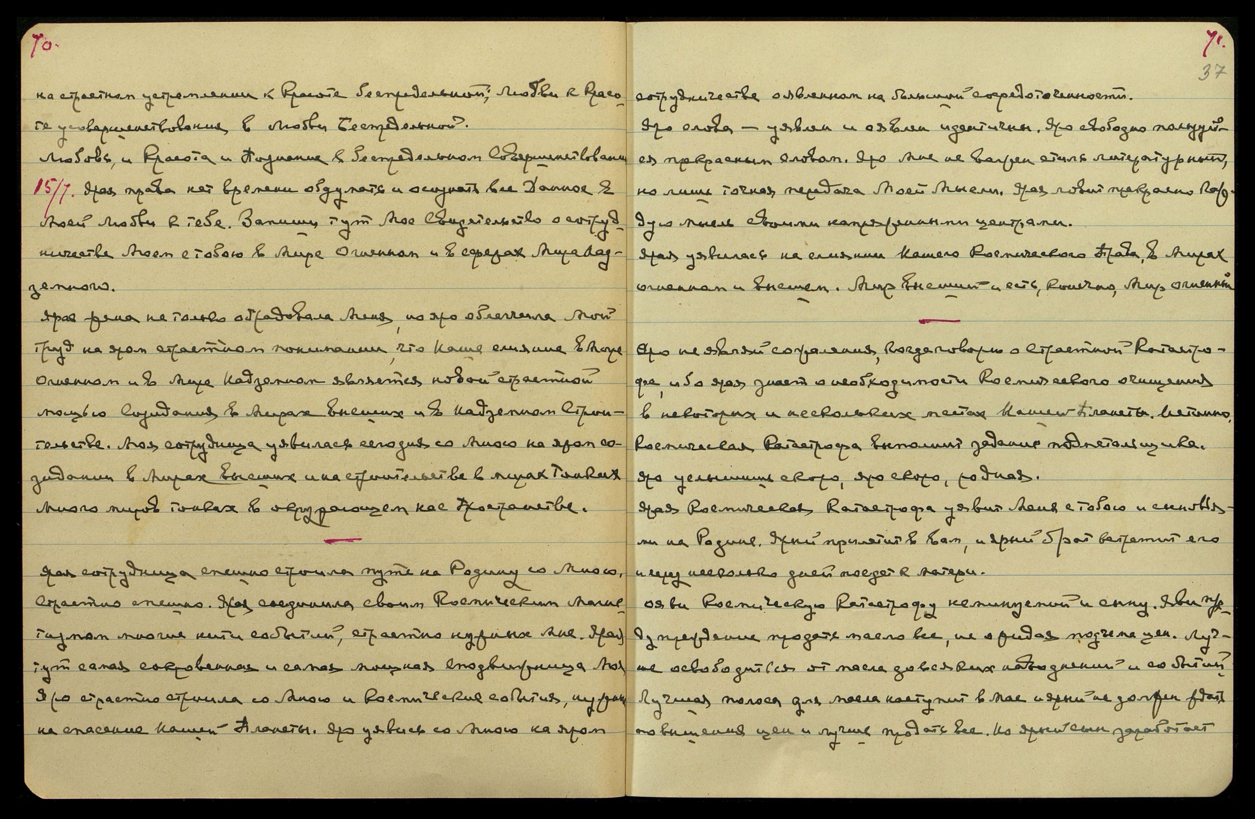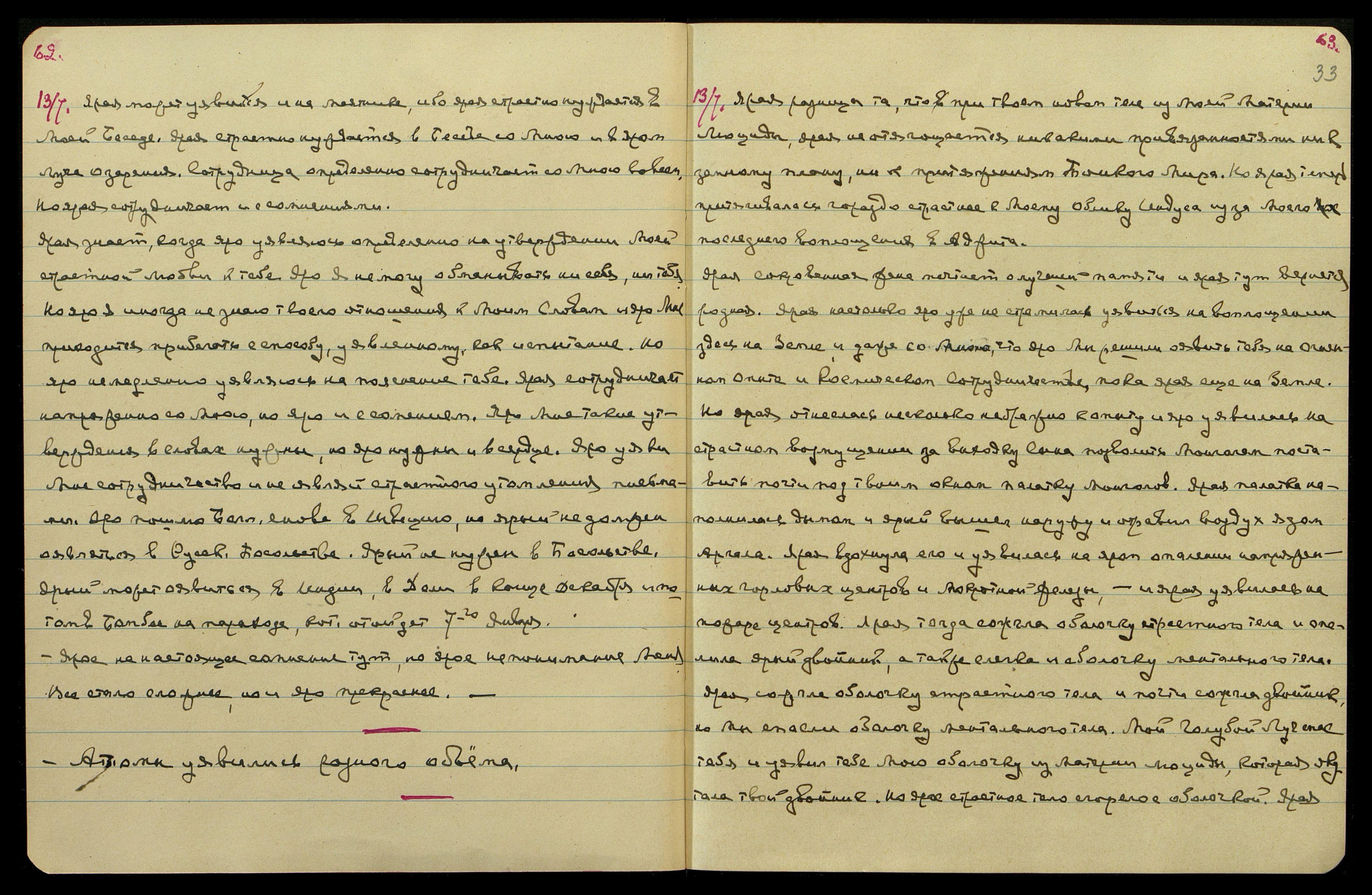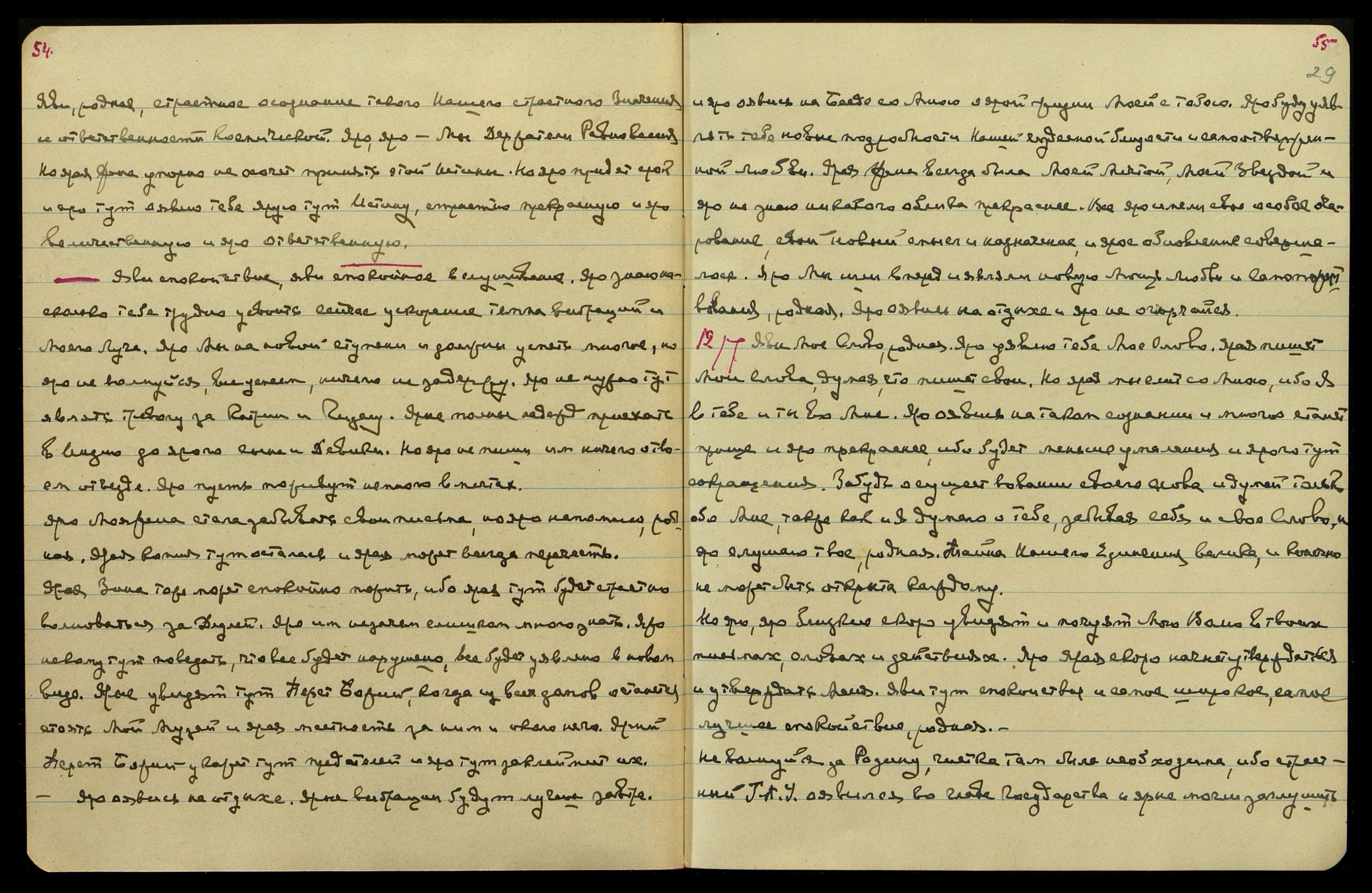 Ярая знает, когда яро уявляюсь определенно на утверждении Моей страстной любви к тебе. Яро Я не могу обманывать ни себя, ни тебя. Но яро Я иногда не знаю твоего отношения к Моим Словам и яро Мне приходится прибегать к способу, уявленному как испытание. Но яро немедленно уявлюсь на пояснение тебе. Ярая сотрудничает напряженно со Мною, но яро и с сомнением. Яро Мне такие утверждения в словах нужны, но яро нужны и в сердце. Яро уяви Мне сотрудничество и не являй страстного утомления письмами. Яро пошлю Болл[инга] снова в Швецию, но ярый не должен оявляться в Русск[ом] Посольстве. Ярый не нужен в Посольстве. Ярый может оявиться в Индии, в Дели в конце декабря и потом в Бомбее на пароходе, который отойдет 7-го января.