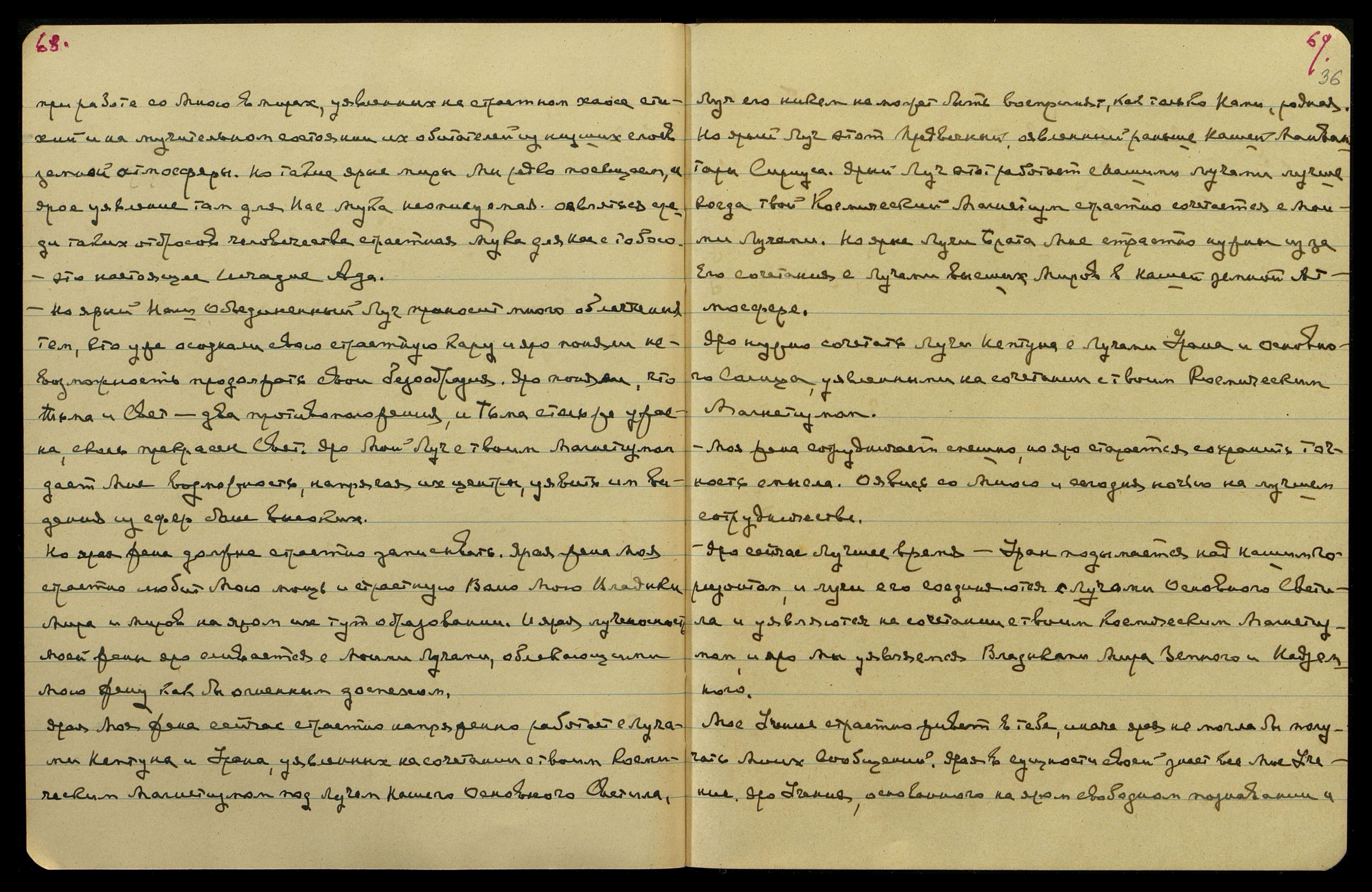 Яро Мы будем приходить вместе и будем творить вместе, родная, и яро не будем тут разлучены никем и ничем. Мы одно Существо и вместе существуем и вместе исчезнем, если таков тут рок. Но ярый Дух Наш вечен и яро снова оявит Нас вместе, ибо яро нити Нас связывающие − нити Космические и яро нерасторжимы ничем, если Дух не хочет такого разъединения. Но яро Мой Дух не только не хочет, но яро не может представить себе такую невозможность Космическую, чтобы яро Я мог тебя разлюбить и отделиться от тебя. Яро не могу представить такой возможности, родная и ярая тут не должна допускать даже мимолетную мысль о таком страстном тут крушении Космоса, родная.